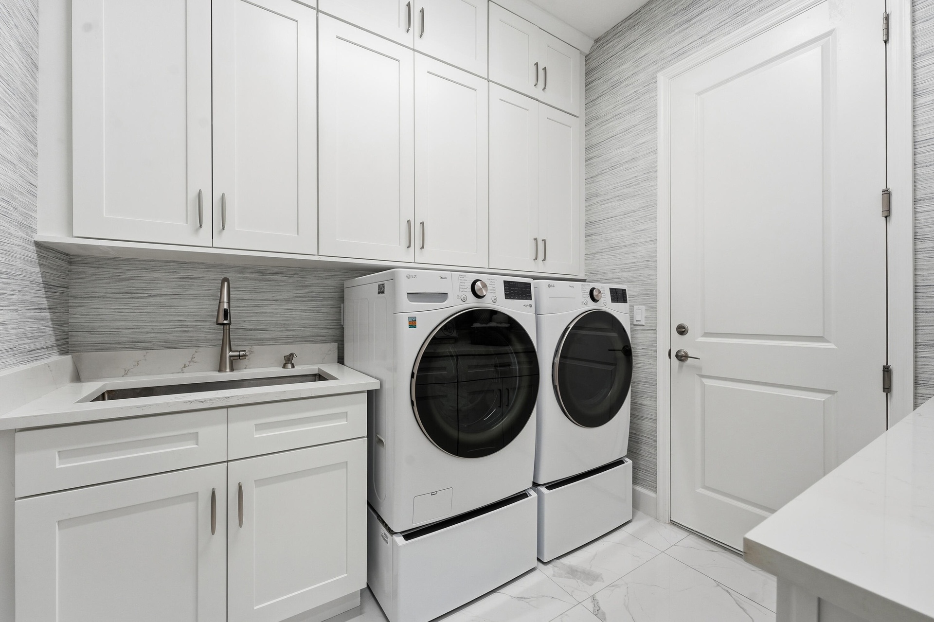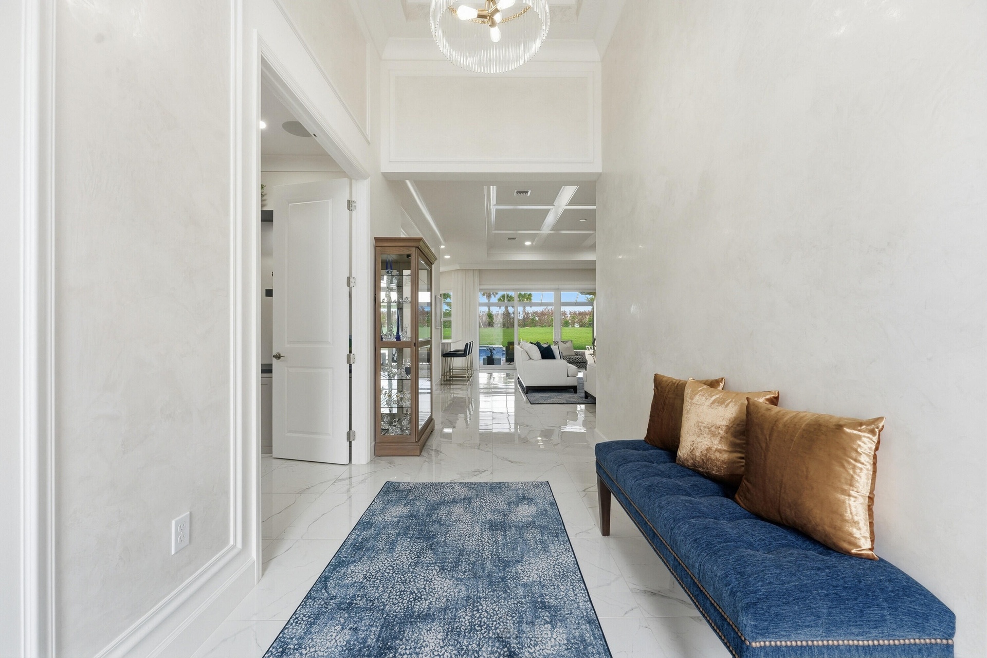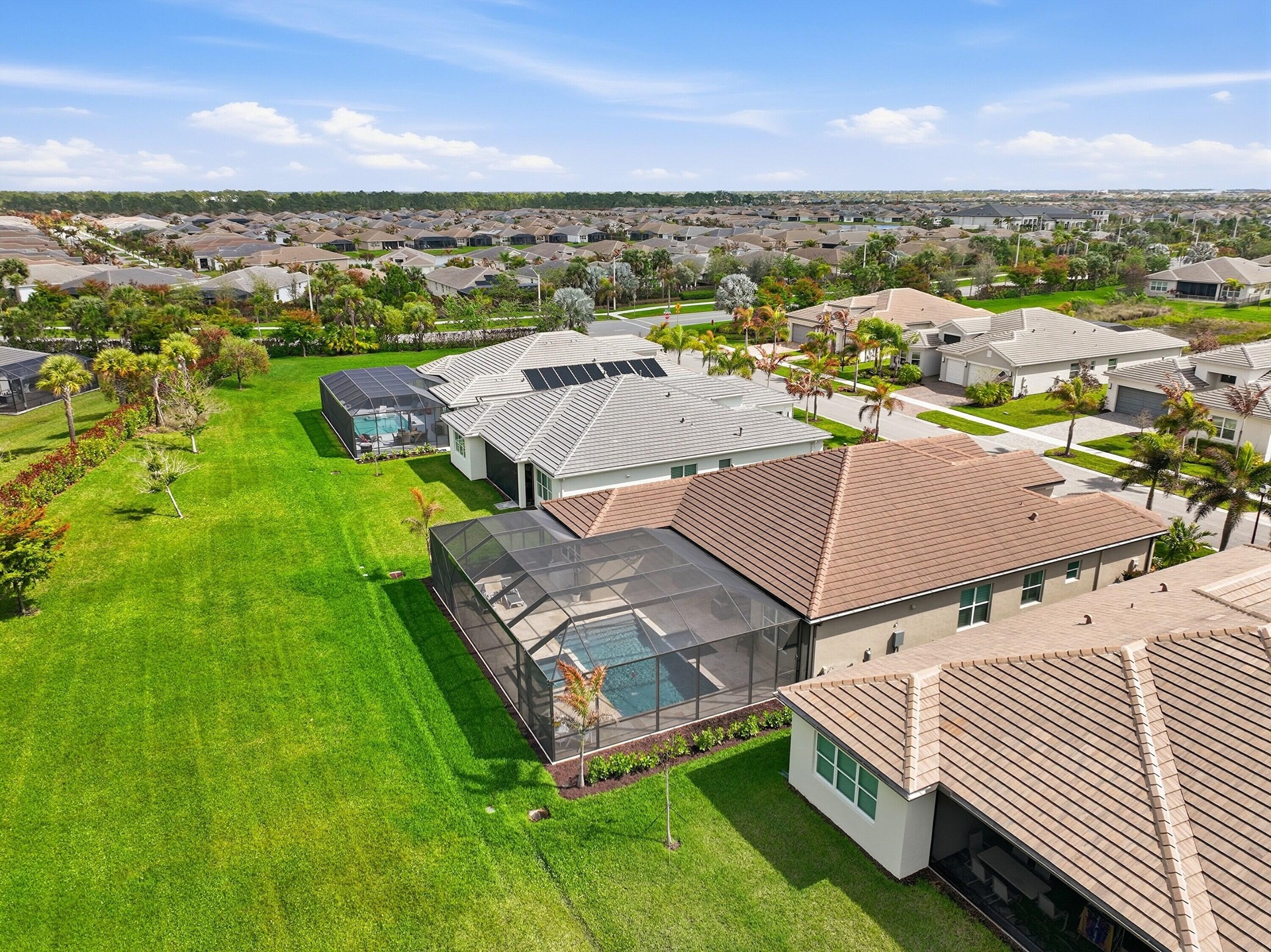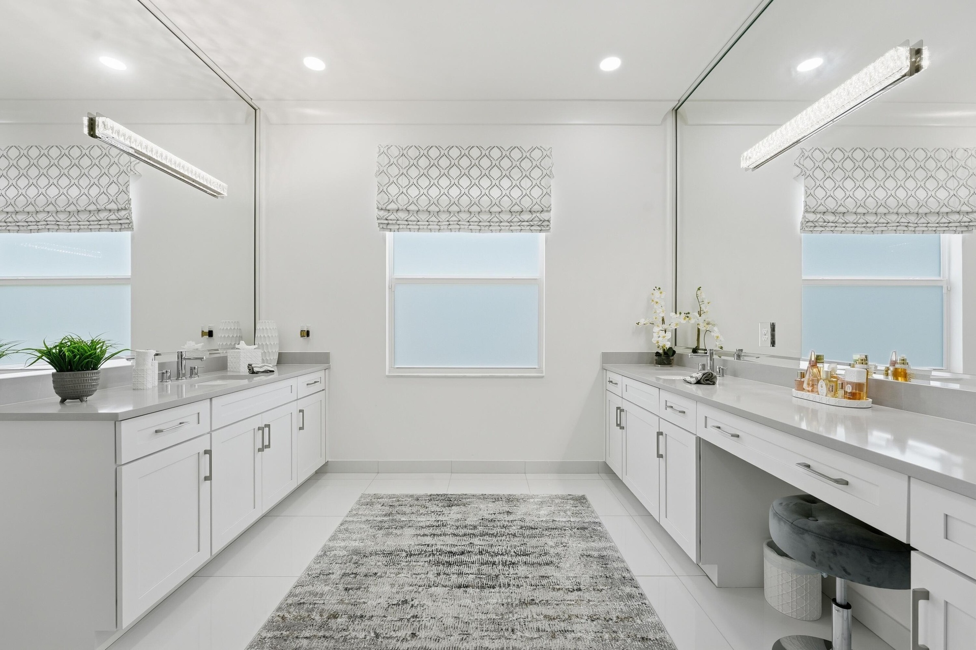 Discover a beautifully designed & professionally landscaped home that shows like a model. Enter into a grand foyer with luxurious faux-painted walls, soaring ceilings, continuous crown molding & sophisticated wallpaper with a polished modern tile flooring. This exquisite 3-bedroom, 3.5-bathroom home also features a versatile office & a full 3-car garage. Every detail has been thoughtfully considered, including a whole-house water filtration system. The open-concept floor plan flows seamlessly into a sleek white kitchen, boasting Level V cabinetry with pull-outs, under-cabinet lighting, a custom pantry, quartz countertops, a full-height marble backsplash & a center island perfect for both casual meals & formal entertaining. The primary bedroom offers elegance & views of a stunning heated pool and 6 person spa. Enjoy double walk in custom closets and a large en-suite bathroom. Two additional bedrooms are also en-suite. Open up those electric blinds to a seamless indoor-outdoor lifestyle, complete with a summer kitchen, gas heated pool & 6 person spa, under an expansive patio lanai with travertine tiles. Living in Valencia Grove means enjoying the full Riverland experience: world class amenities, vibrant social clubs, miles of pathways, and access to the 55+ lifestyle that makes this community so desireable. Easy access to major highways, beaches, fine dining, airports and medical facilities.