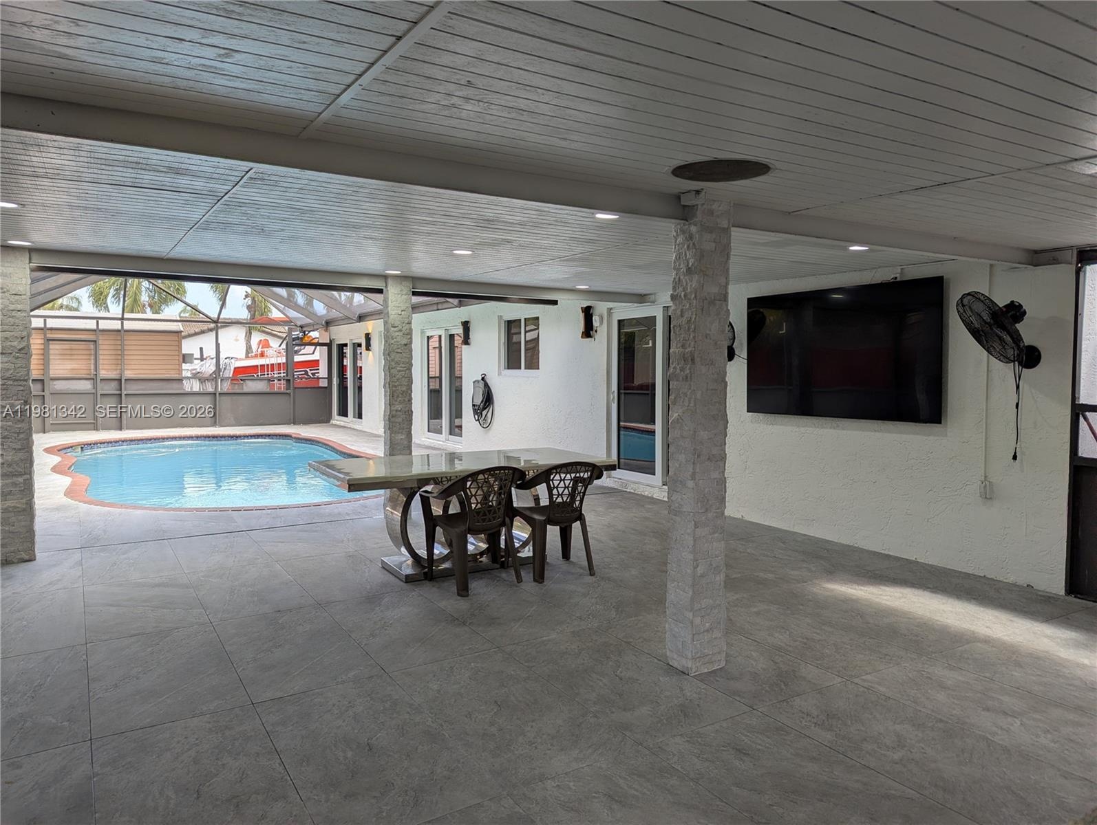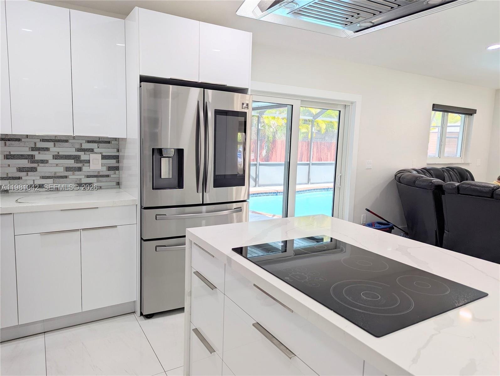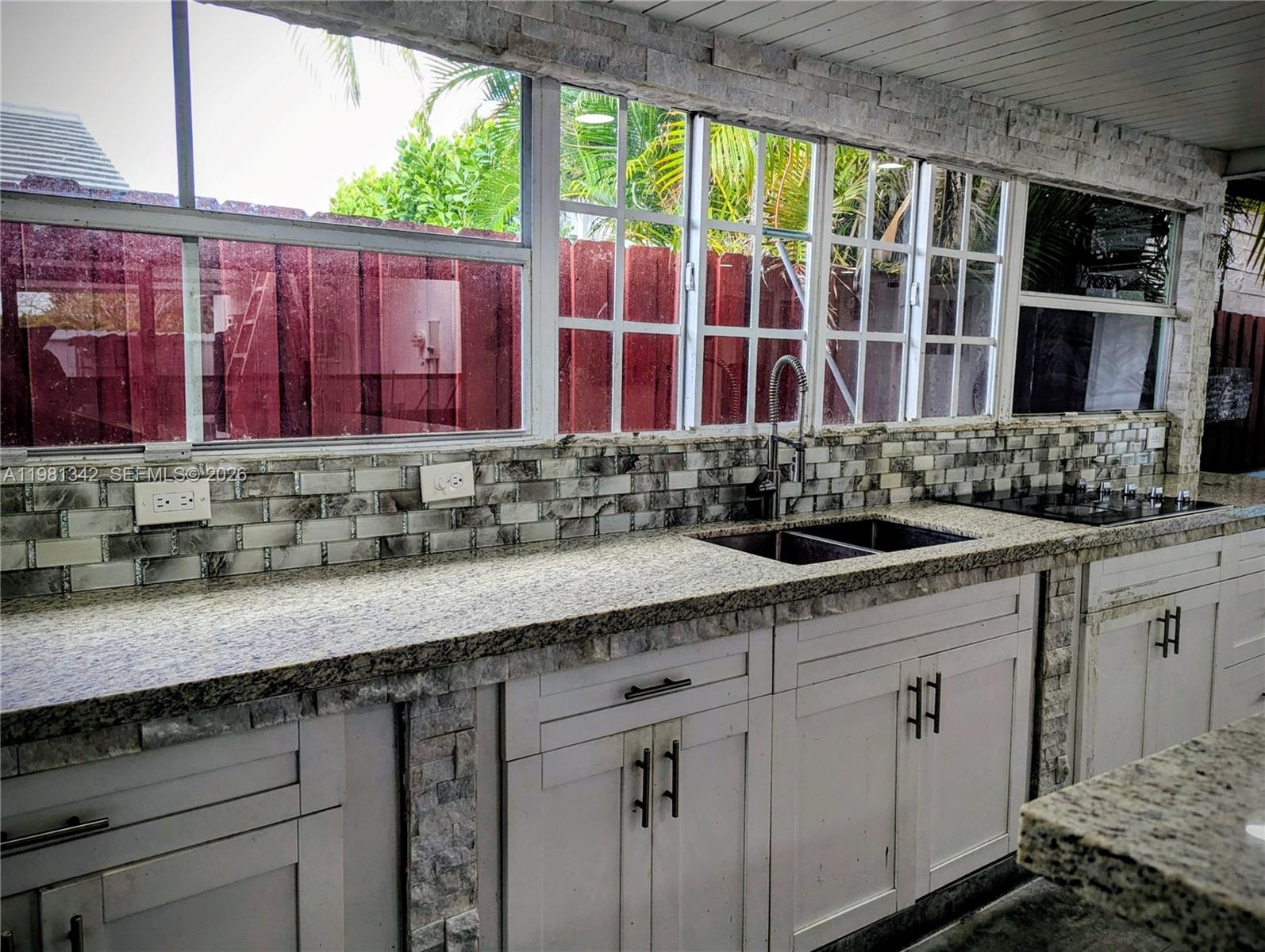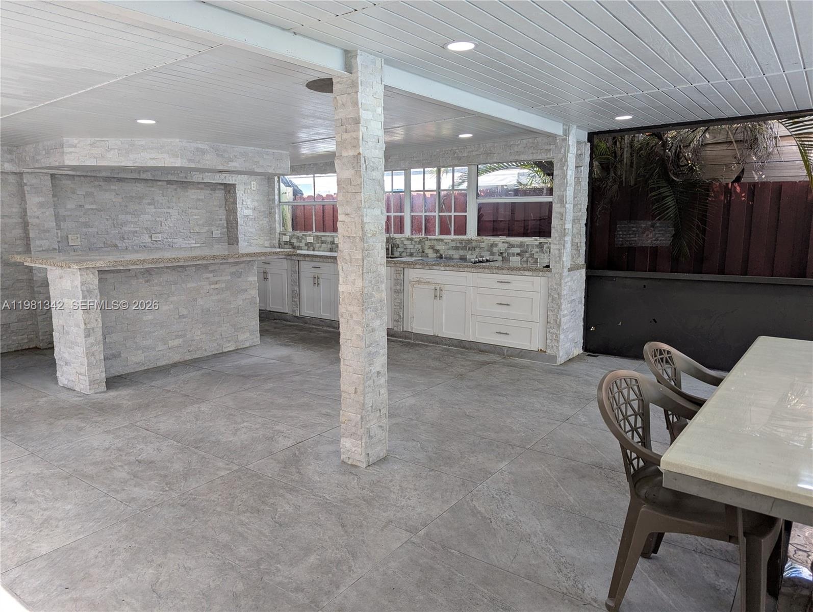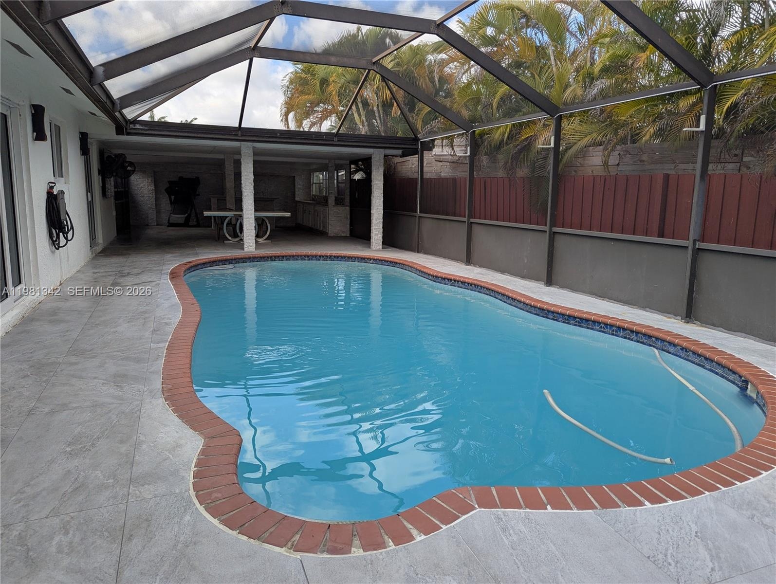 Beautiful 4-bedroom, 2-bathroom home situated on a highly coveted corner lot. This stunning property has been completely renovated, offering modern style, comfort, and total tranquility. The home features a new, durable metal roof, as well as high-impact windows and doors. Inside, you will enjoy a bright, open-concept layout with high-quality finishes throughout. The kitchen has been fully renovated and is equipped with high-end stainless steel appliances. Stepping outside, you will discover a sparkling pool—ideal for both relaxation and entertaining family and friends. The property boasts a complete outdoor kitchen with a bar—perfect for entertaining—and features floor drains throughout the entire pool and kitchen/bar area.