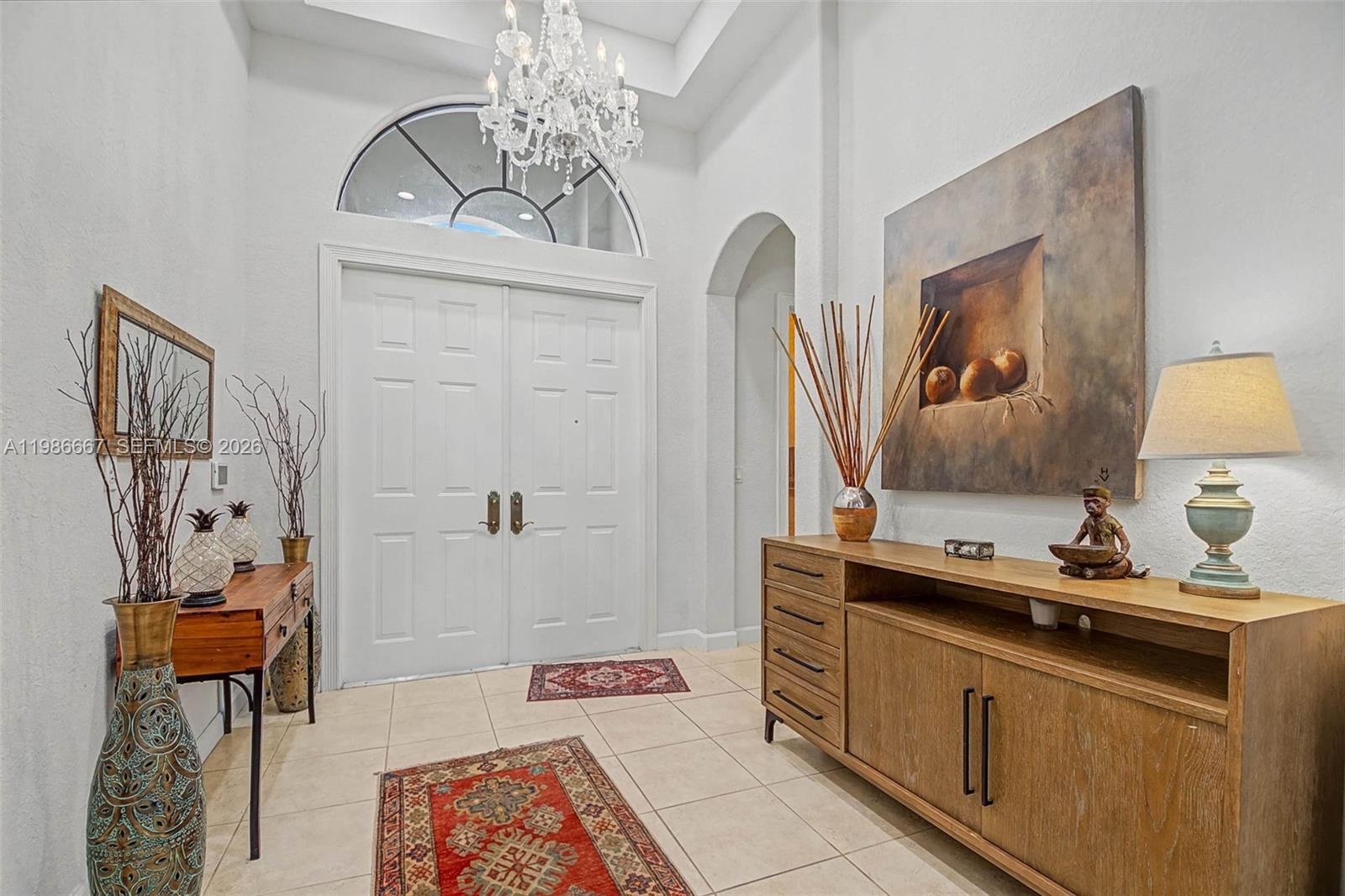 Wonderful, lakefront 5 bdrm, 3.5 bath (Pisa model) home in the gated community of Cutler Cay. Welcoming formal living area w/ soaring ceilings. Private formal dining rm. Kitchen opens to family rm w/ eat in snack bar. 3-way split floorplan great for multigenerational families where everyone can enjoy privacy & space. Lovely primary suite w/ peaceful water view, sitting area & double walk-in closets. Spacious primary bath w/ jetted tub, glass enclosed shower & dual sinks. Indoor laundry rm. Fantastic screened lanai where you can enjoy outdoor dining w/ a water view. Plus outdoor terrace. 3 car garage. Resort like amenities include pool, splash pad, playground, clubhouse, 24 hour guard gate, fitness rm, basketball, tennis, dog park, endless walking paths & beautiful lakes throughout.