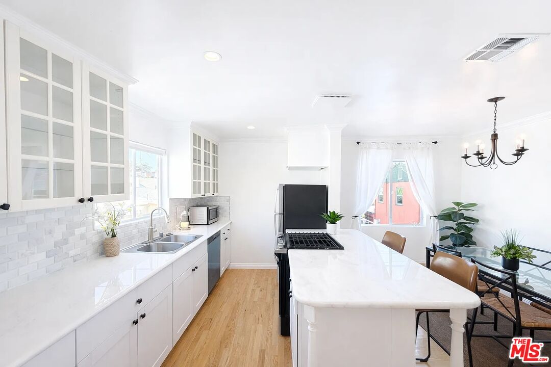 Gorgeous & bright upstairs 2 Bed/1 Bath at 20th & California Corner unit (best unit on property)Newly renovated kitchen with Calacatta marble countertops & glass front cabinetry Excellent cabinet storage All stainless steel appliances with gas range, dishwasher, and double sink Breakfast bar seating Upstairs corner apartment with no one above Central air and heat Pool Tumbled marble bathroom with shower tub combo West facing with lots of natural light and amazing closet space Washer/Dryer in unit Recessed lighting in every room Hardwood floors throughout Gated property Street parking (permit required to park, very easy on this street)Pet friendly Just four blocks to both Whole Foods and Trader Joe's