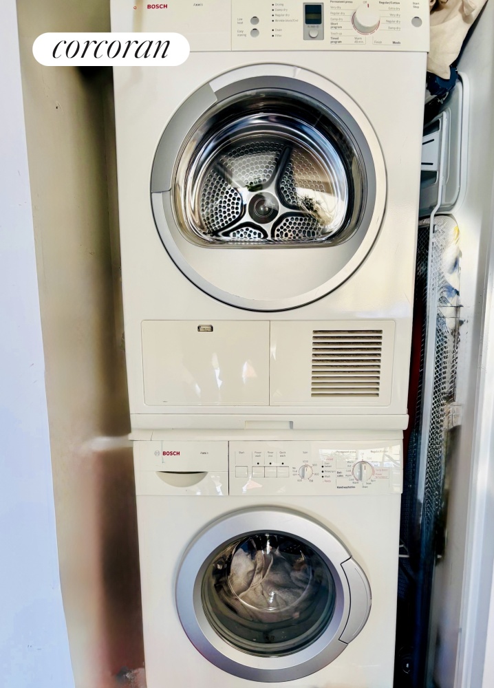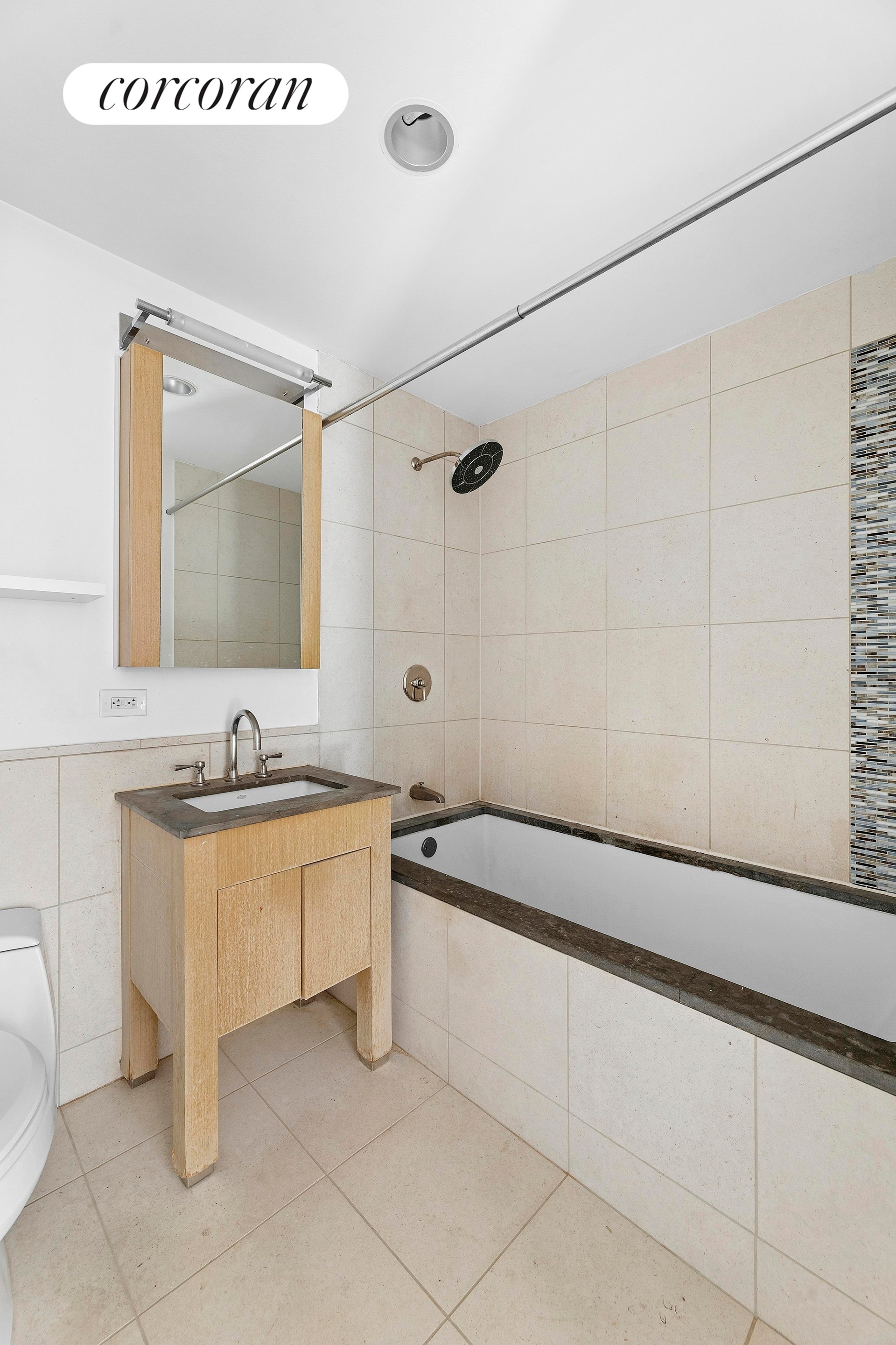 The apartment boasts an excellent layout with a generous living area and an open kitchen with window. Ceiling height is over 9' feet. The kitchen is equipped with stainless steel appliances by Samsung and Bosch, granite countertops, and plenty of storage space. The bedroom faces south and easily accommodates a king-size bed. Additional highlights include recently refinished floors, motorized remote-control window shades, two-zone central air, and an in-unit washer/dryer.