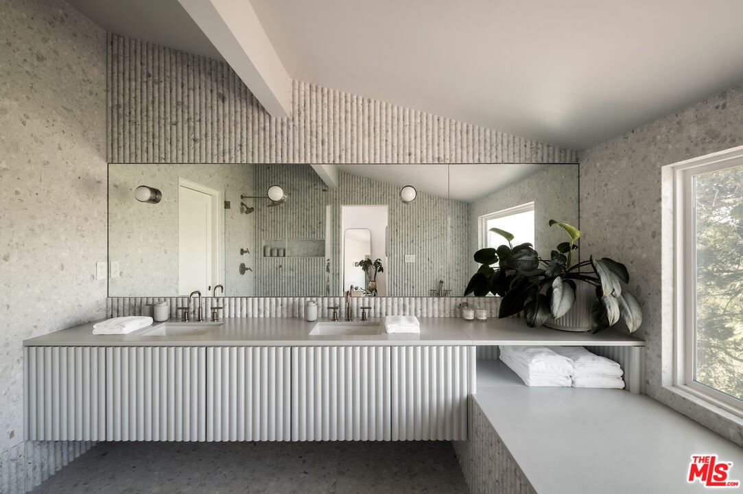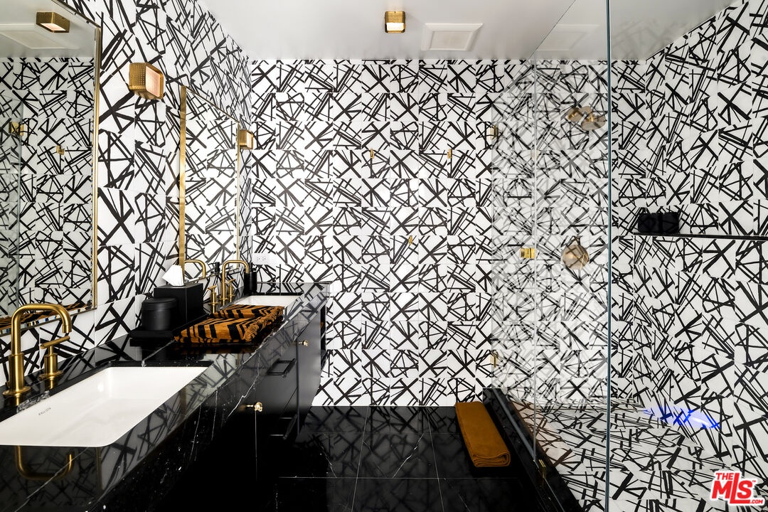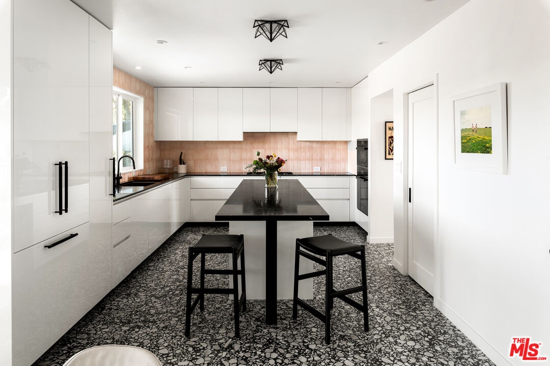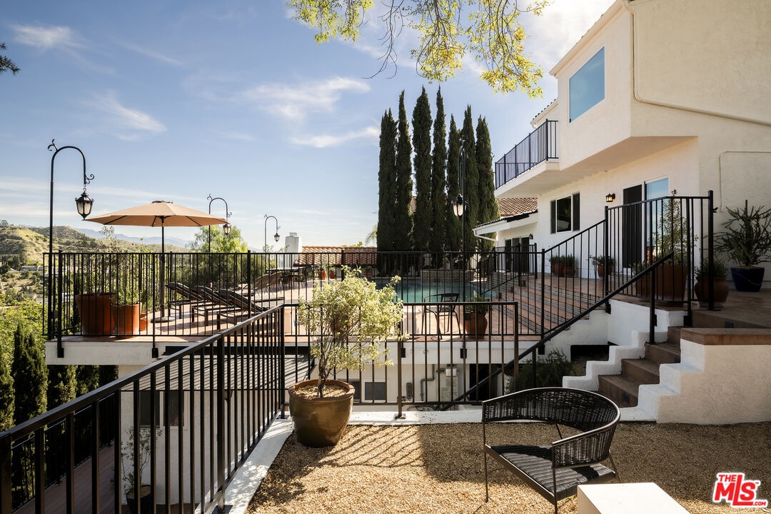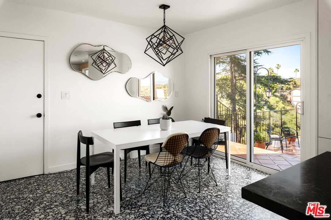 This nearly 4,000-square-foot Hollywood Hills retreat sits just above the Chateau Marmont with sweeping downtown skyline views from the front and expansive canyon views from the back. Tucked away on a quiet cul-de-sac just a three-minute drive to the Sunset Strip, the home offers rare privacy, all-day sunlight, a large pool, and an expansive entertaining deck - highly unusual at this price point. Completely redone through a multi-million-dollar designer renovation, the interiors feature Italian terrazzo, Kelly Wearstler tile and lighting, a lacquered Aran Cucine kitchen crafted in Italy with Miele appliances, Ann Sacks tile, and Nero Marquina marble countertops from Spain. Additional upgrades include custom cabinetry throughout, multi-function smart toilets with bidets, solid wood interior doors, and a custom walk-in closet in the primary suite. The light-filled main house features soaring ceilings, three huge bedrooms and two and a half baths, a grand eat-in kitchen with island, a spacious den/TV room, and a striking living room - both with fireplaces and commanding views - along with a formal dining room overlooking city lights. A completely private ADU, currently configured as an office and gym, includes a remodeled kitchenette, bath with steam shower, hardwood floors, and a wraparound deck with canyon views. It has previously generated rental income. Beautifully landscaped and professionally lit, the property also features an upgraded electrical panel supporting two EV fast chargers in the two-car garage. Located in an area experiencing significant investment - with several recent sales over $20M and multiple large-scale projects underway - this is a rare opportunity to own a fully renovated home on one of the Hills' quietest streets, known for some of the most spectacular views in the city. A turnkey offering with huge views, chic interiors, and significant upside potential.