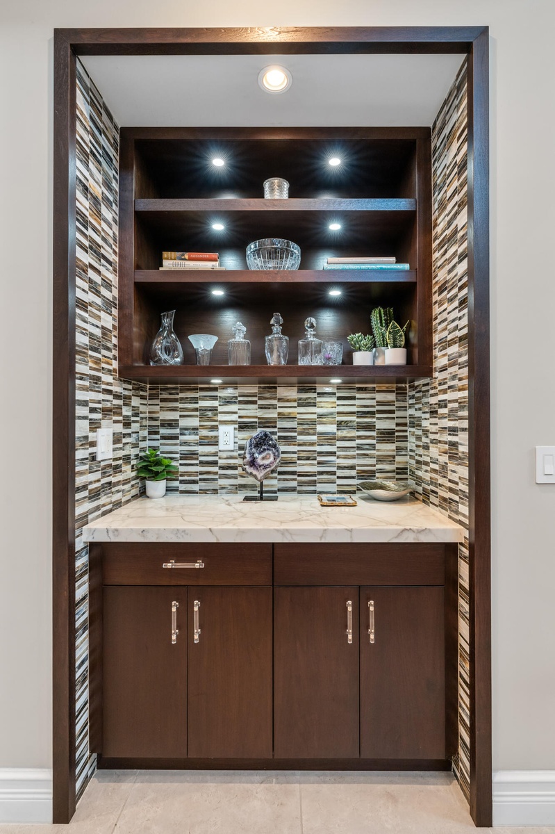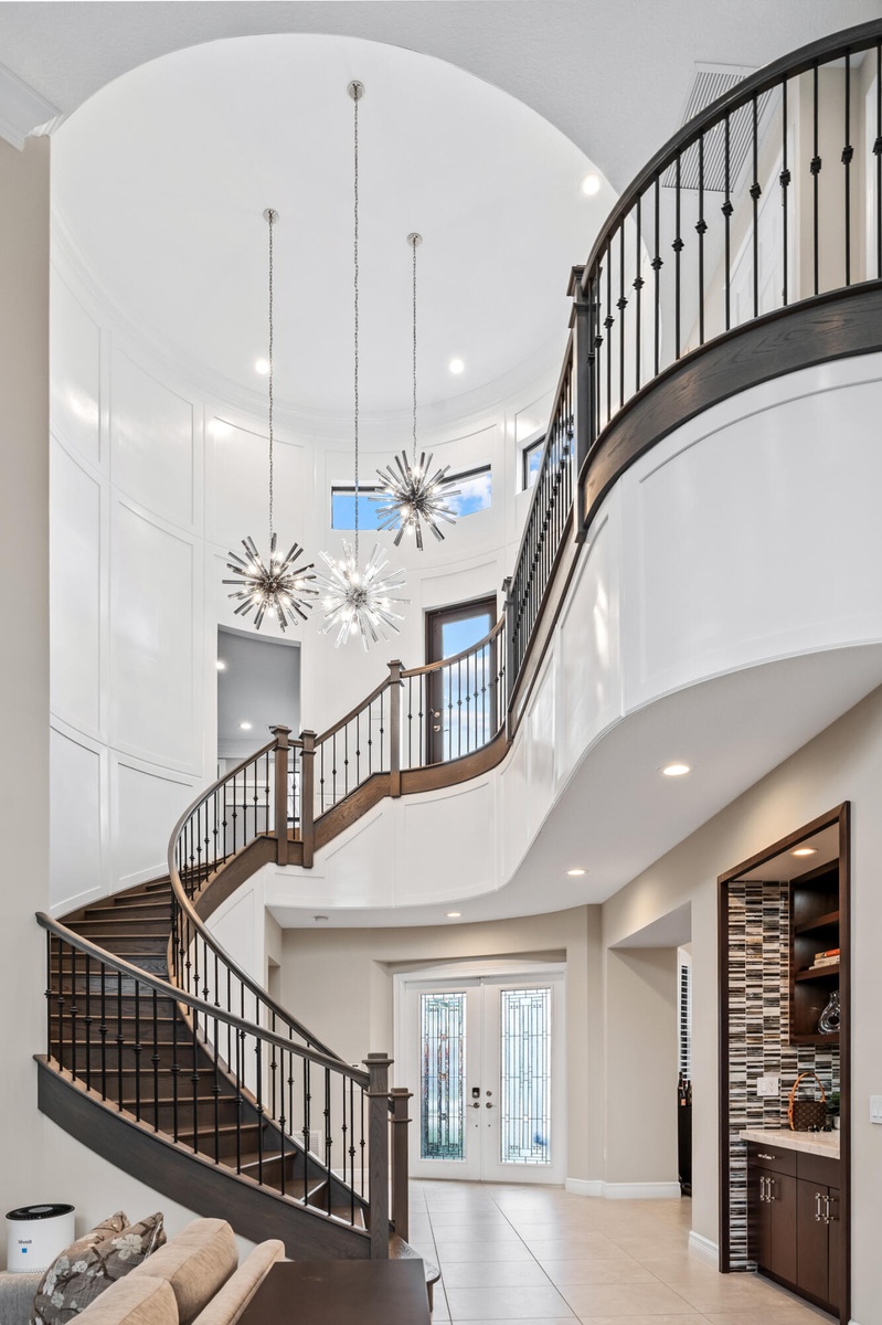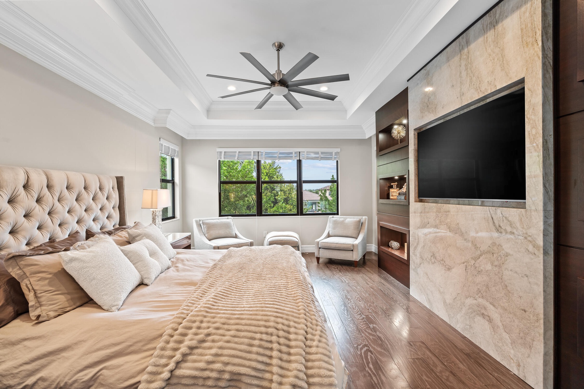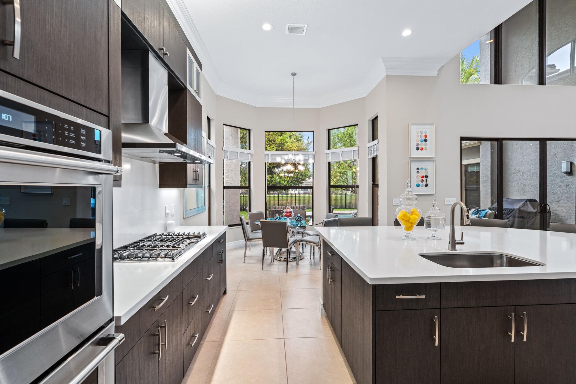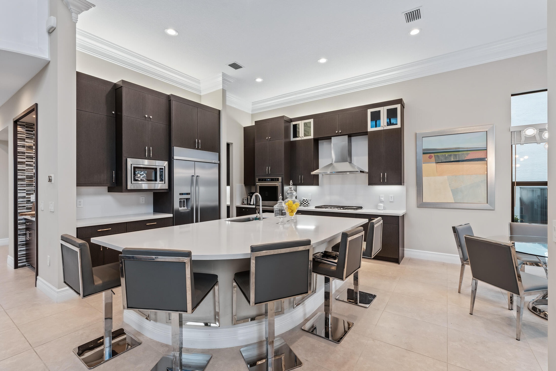 Coming soon in Seven Bridges. Fully furnished lakefront Sydney model with private pool, bespoke millwork, custom built-ins, and numerous upgrades throughout. This pristinely maintained home features impact glass, designer finishes, porcelain tile flooring in the main living areas, engineered wood flooring upstairs, and a grand staircase with bespoke millwork detailing. The kitchen includes stacked custom cabinetry, quartz countertops, full quartz backsplash, and premium stainless steel appliances including built-in refrigerator, double oven, gas cooktop, and exterior-vented hood. Wet bar with glass cabinetry and quartz surfaces opens to the main living space. Primary suite with upgraded bath, quartz finishes, oversized mirrors, and ceiling-height tile. All secondary bathrooms upgraded with quartz vanities and under-mount sinks. The backyard offers a private pool with peaceful lake views and direct sightlines to the community fountain, creating a serene outdoor setting ideal for relaxing or entertaining. Available June 30th, 2026 for annual furnished rental