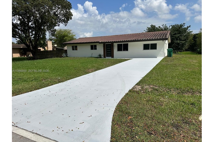 Exquisitely remodeled estate located in Southwest Ranches and set on nearly one acre of private, lush grounds. This elegant residence features four spacious bedrooms and three beautifully appointed bathrooms, complemented by sophisticated porcelain flooring throughout. The home showcases a stunning open-concept design with a gourmet kitchen, quartz countertops, and brand-new stainless-steel appliances—perfect for both everyday living and upscale entertaining. Step outside to a beautifully designed pool area, creating a serene retreat ideal for relaxation and outdoor gatherings. The expansive grounds provide ample space for horses, boat and recreational toys, offering the perfect blend of luxury living and countryside freedom.
