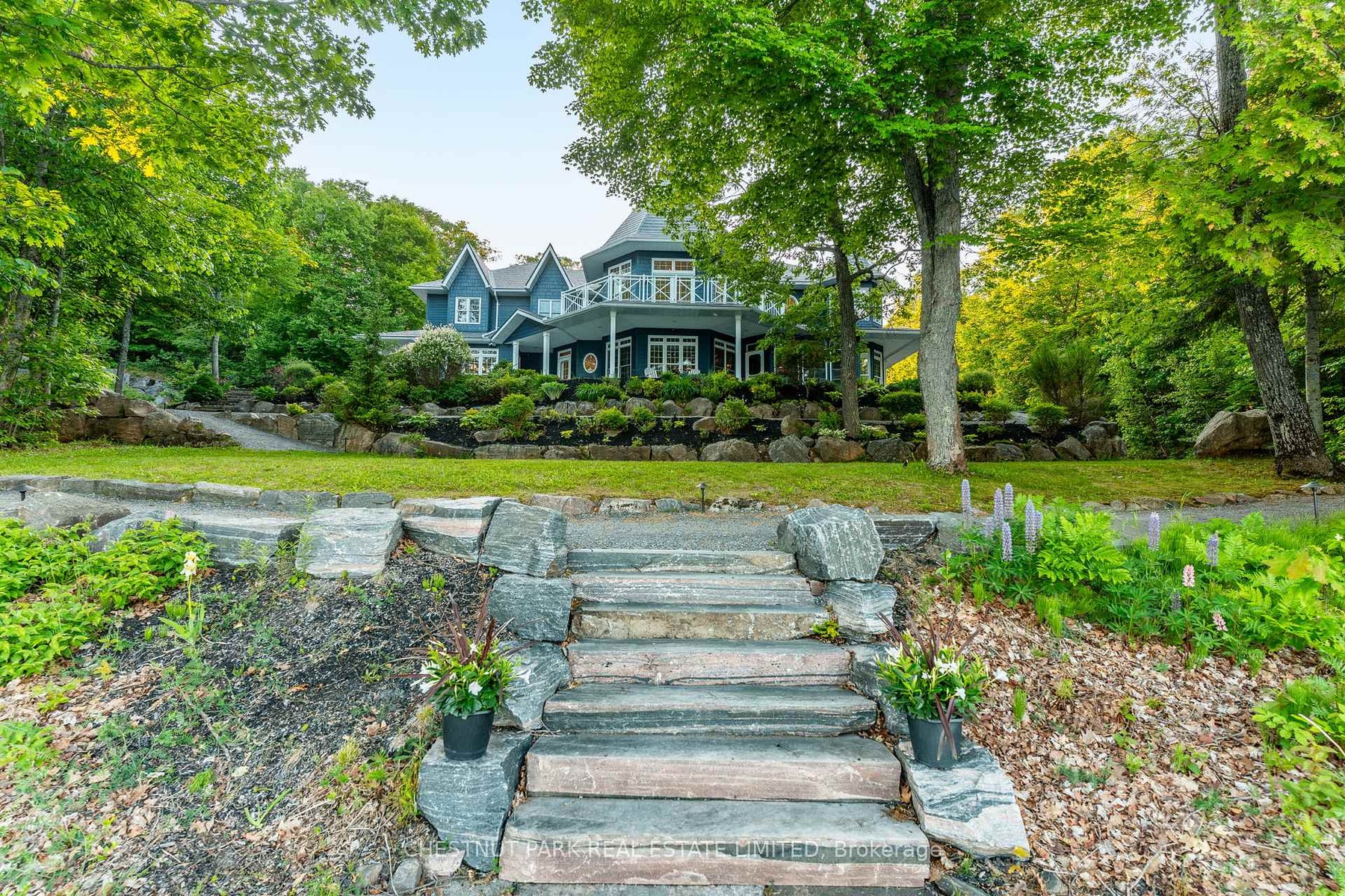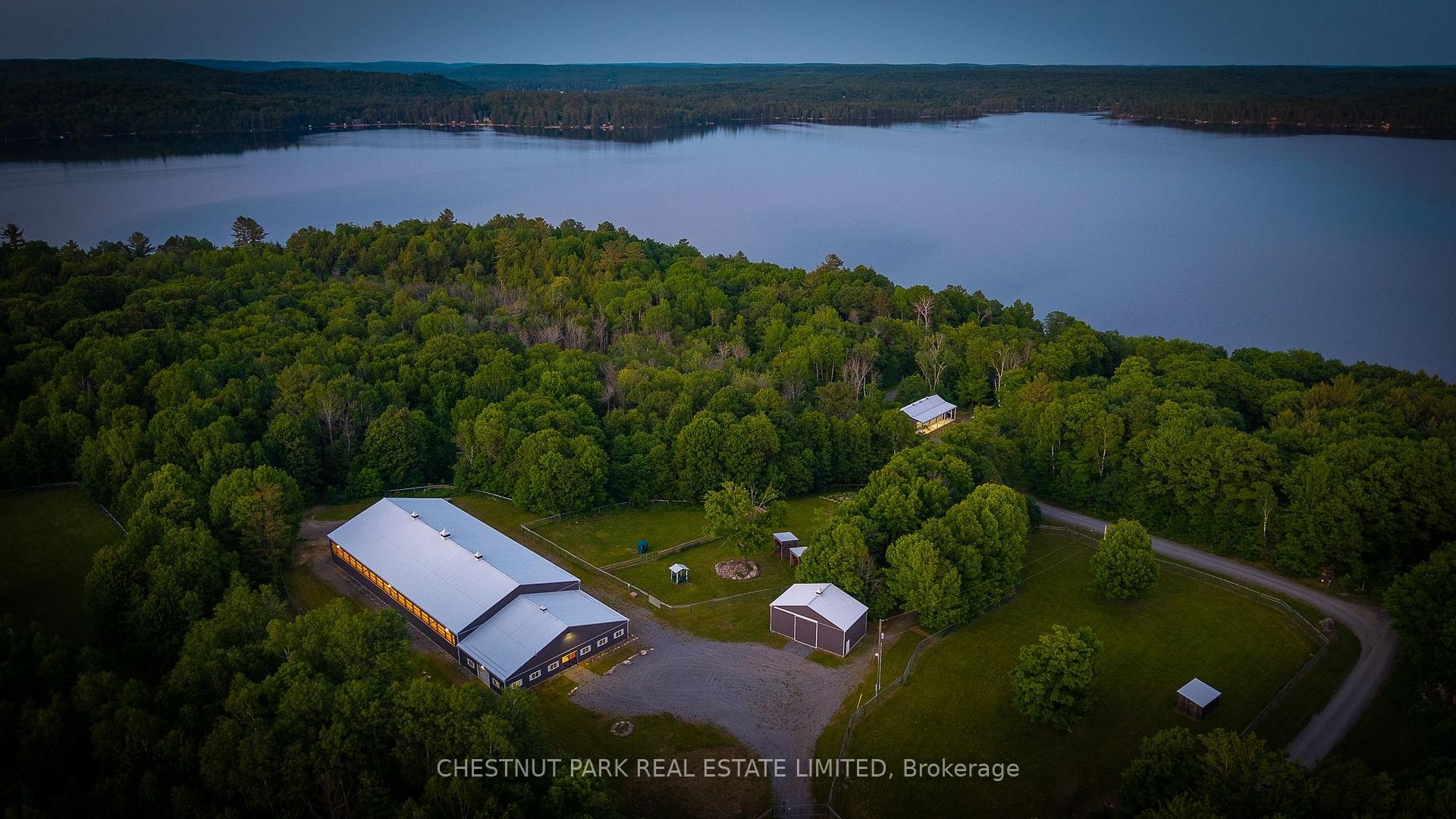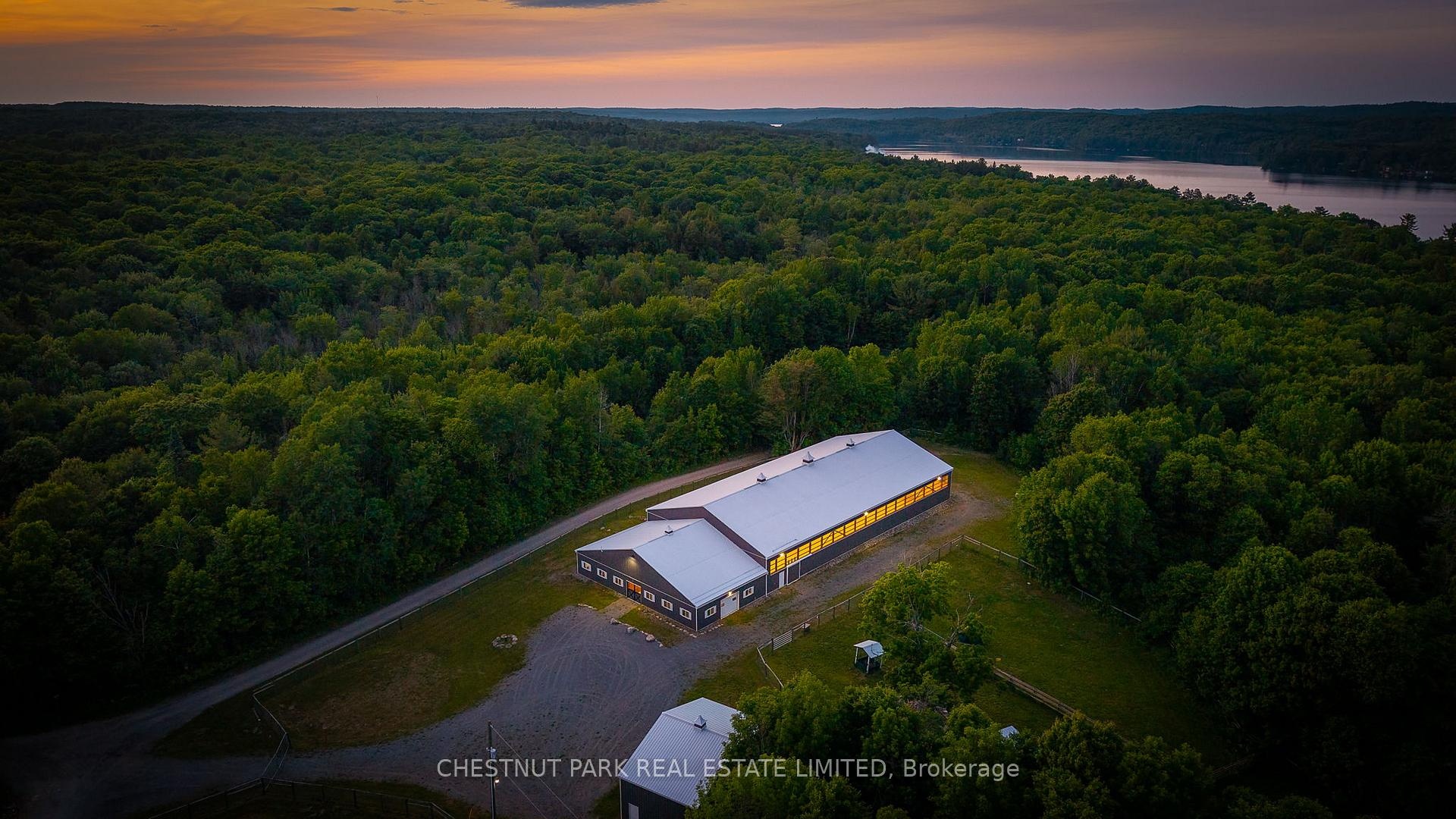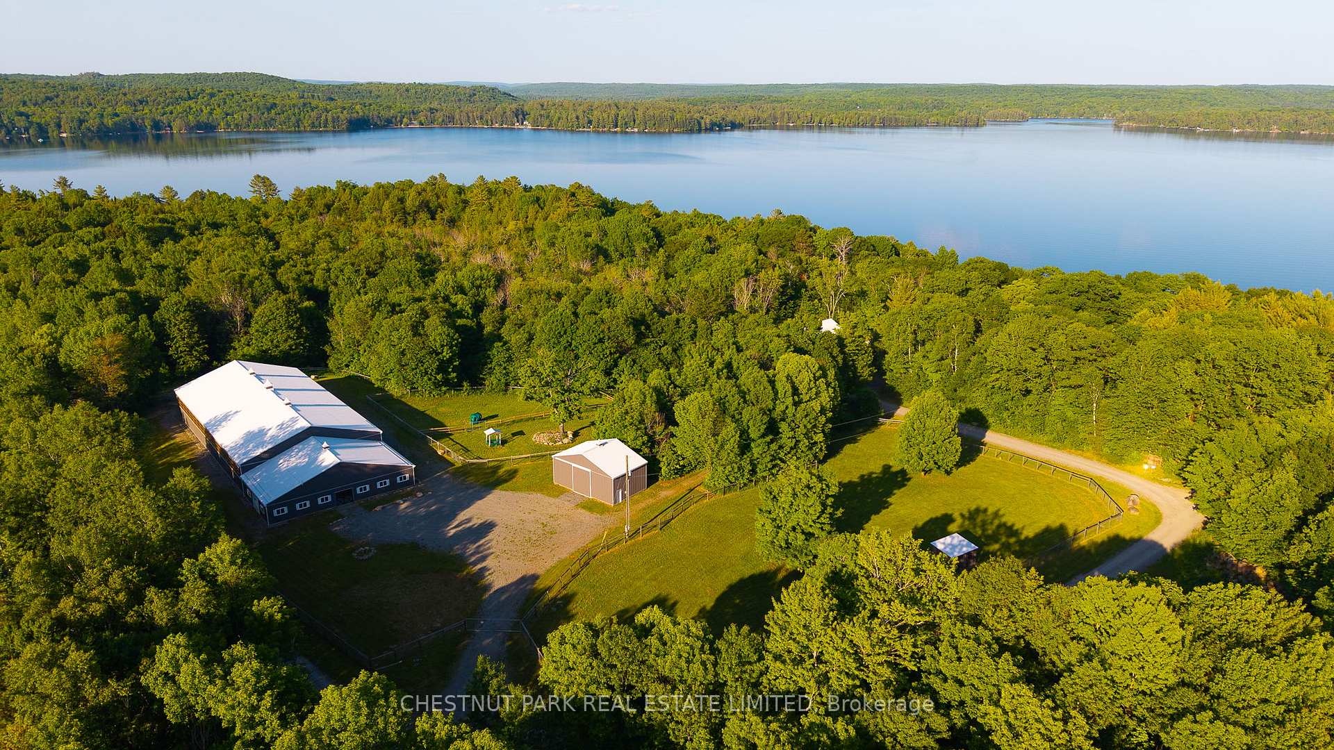 A rare offering where luxury waterfront living and premier equestrian infrastructure converge on prestigious Boshkung Lake. Encompassing over 100 acres and 440 ft of pristine shoreline, this private estate delivers an exceptional four-season lifestyle in the heart of the Haliburton Highlands. The custom-built residence offers over 7,000 sq ft of finished living space, designed for elevated entertaining and relaxed lakeside living. The primary suite is a true retreat, featuring a fireplace, spa-inspired ensuite with soaker tub overlooking the lake, expansive walk-in closet, and private lakeside deck. The gourmet kitchen is a showpiece with premium appliances, custom cabinetry, generous prep surfaces, and a sunlit breakfast area, supported by a butler's pantry. Principal living and dining spaces are anchored by fireplaces and sweeping lake views, with seamless walkouts to maintenance-free decking. Additional features include a media and games room with wet bar, home gym, and flexible spaces for family and guests. For the equestrian buyer, this property is exceptionally well-appointed. A professionally designed 70 x 140 indoor riding arena, multi-stall barn, and multiple paddocks provide turnkey infrastructure for year-round riding, training, and care. Private groomed trails wind throughout the acreage, offering an outstanding setting for riding and recreation.The grounds evoke a private resort, with curated outdoor spaces for entertaining and relaxation, all positioned to capture the serenity of the lake. A 4-car garage completes this exceptional offering. A rare opportunity to own a luxury waterfront estate with true equestrian capability in one of Ontario's most desirable cottage country settings.
