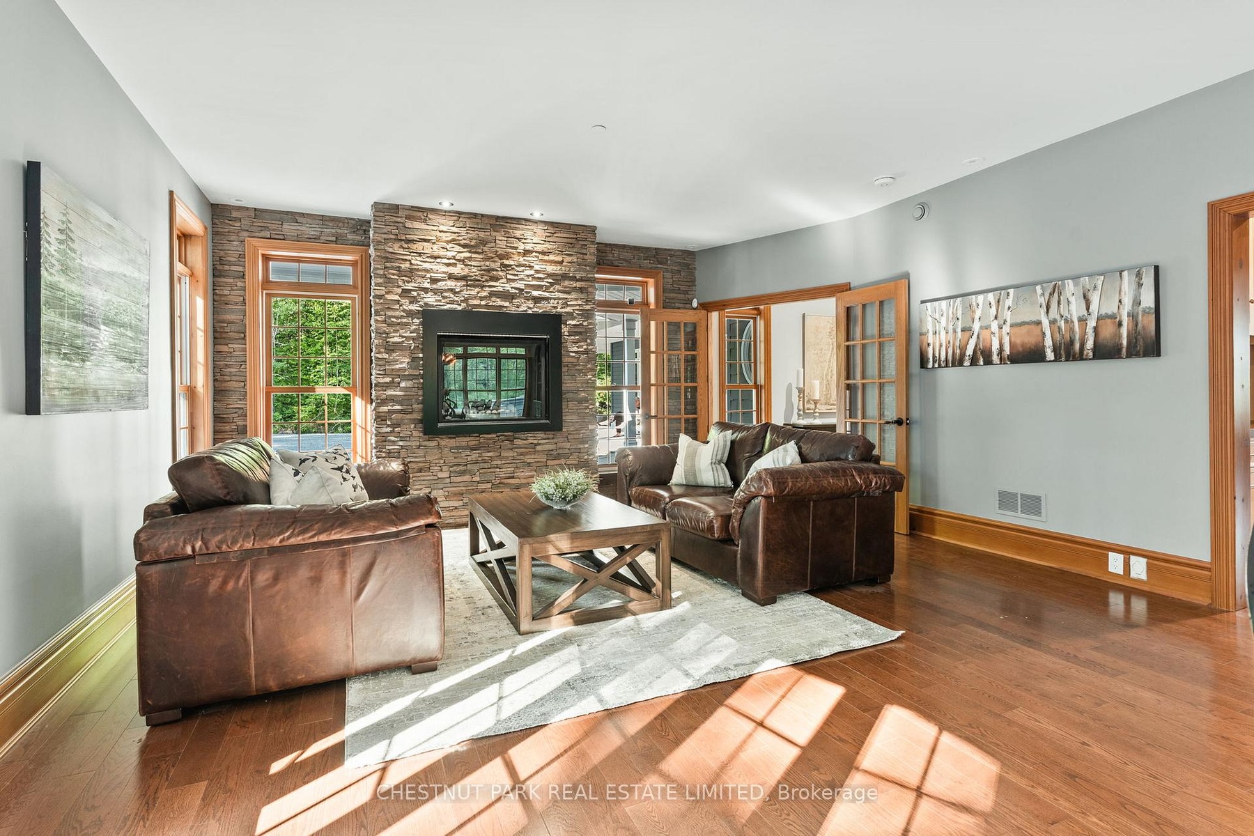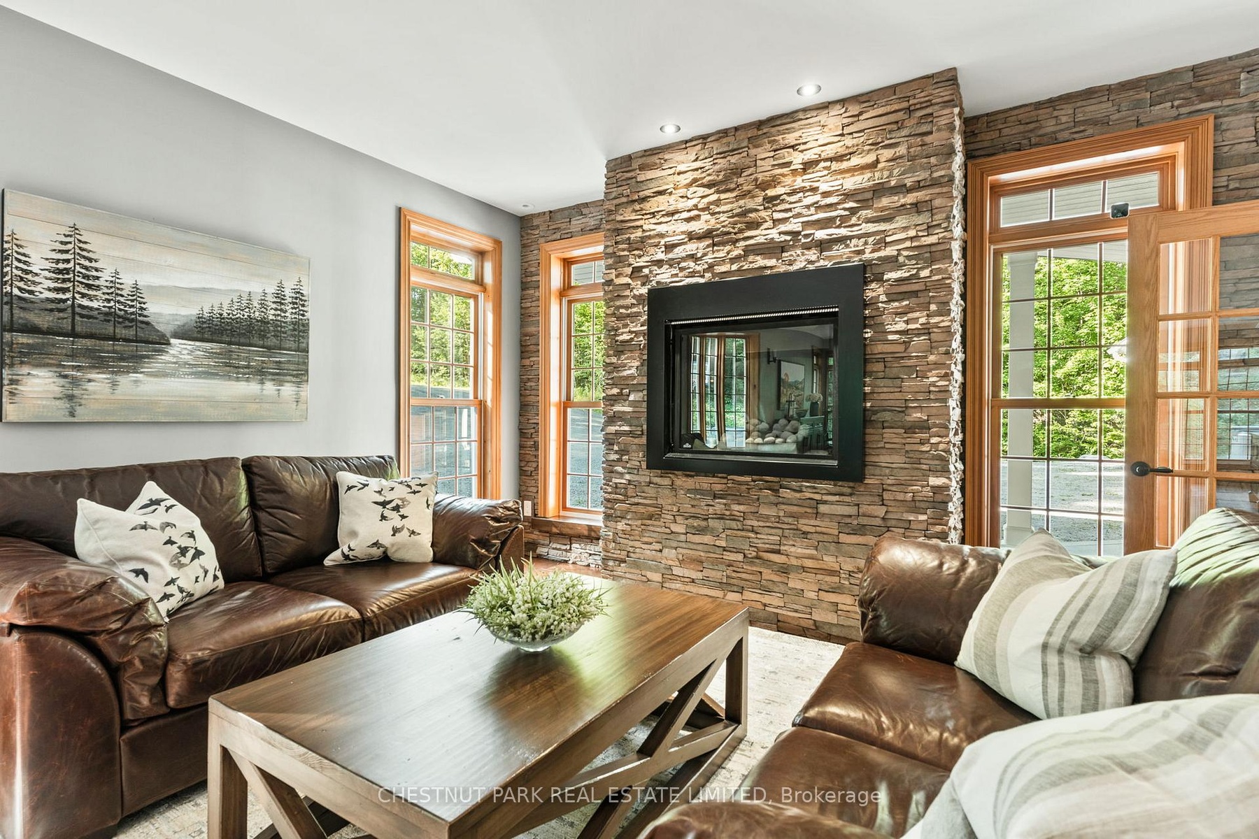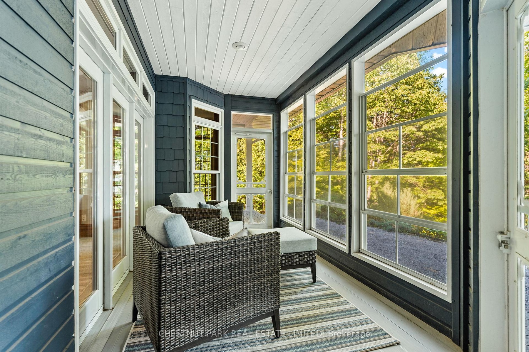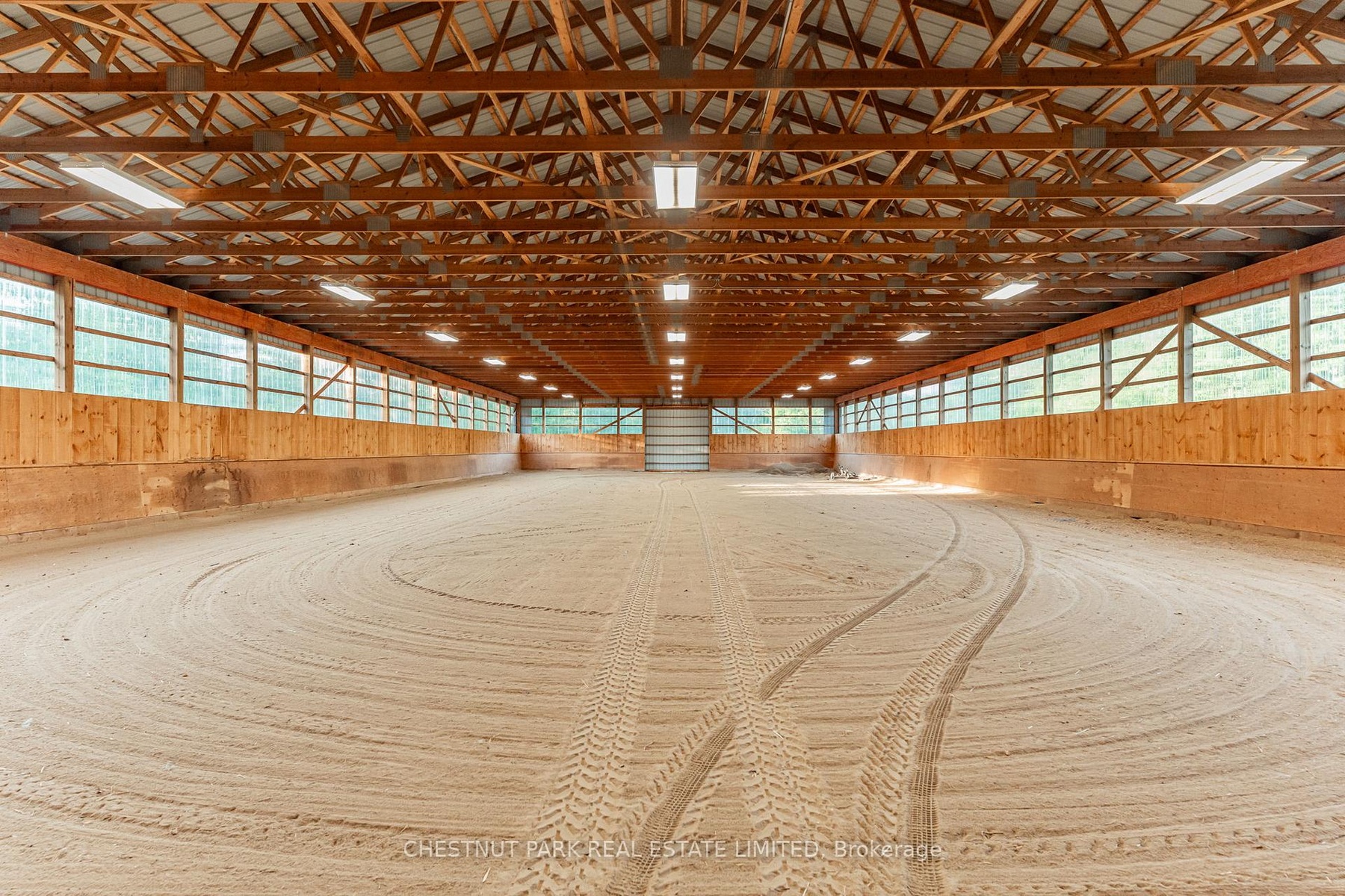 A rare offering where luxury waterfront living and premier equestrian infrastructure converge on prestigious Boshkung Lake. Encompassing over 100 acres and 440 ft of pristine shoreline, this private estate delivers an exceptional four-season lifestyle in the heart of the Haliburton Highlands. The custom-built residence offers over 7,000 sq ft of finished living space, designed for elevated entertaining and relaxed lakeside living. The primary suite is a true retreat, featuring a fireplace, spa-inspired ensuite with soaker tub overlooking the lake, expansive walk-in closet, and private lakeside deck. The gourmet kitchen is a showpiece with premium appliances, custom cabinetry, generous prep surfaces, and a sunlit breakfast area, supported by a butler's pantry. Principal living and dining spaces are anchored by fireplaces and sweeping lake views, with seamless walkouts to maintenance-free decking. Additional features include a media and games room with wet bar, home gym, and flexible spaces for family and guests. For the equestrian buyer, this property is exceptionally well-appointed. A professionally designed 70 x 140 indoor riding arena, multi-stall barn, and multiple paddocks provide turnkey infrastructure for year-round riding, training, and care. Private groomed trails wind throughout the acreage, offering an outstanding setting for riding and recreation.The grounds evoke a private resort, with curated outdoor spaces for entertaining and relaxation, all positioned to capture the serenity of the lake. A 4-car garage completes this exceptional offering. A rare opportunity to own a luxury waterfront estate with true equestrian capability in one of Ontario's most desirable cottage country settings.