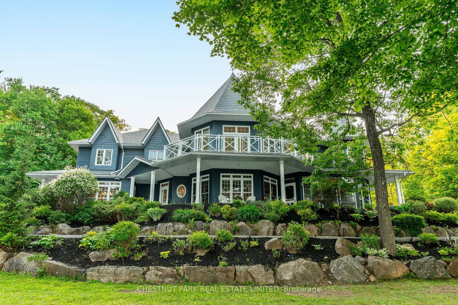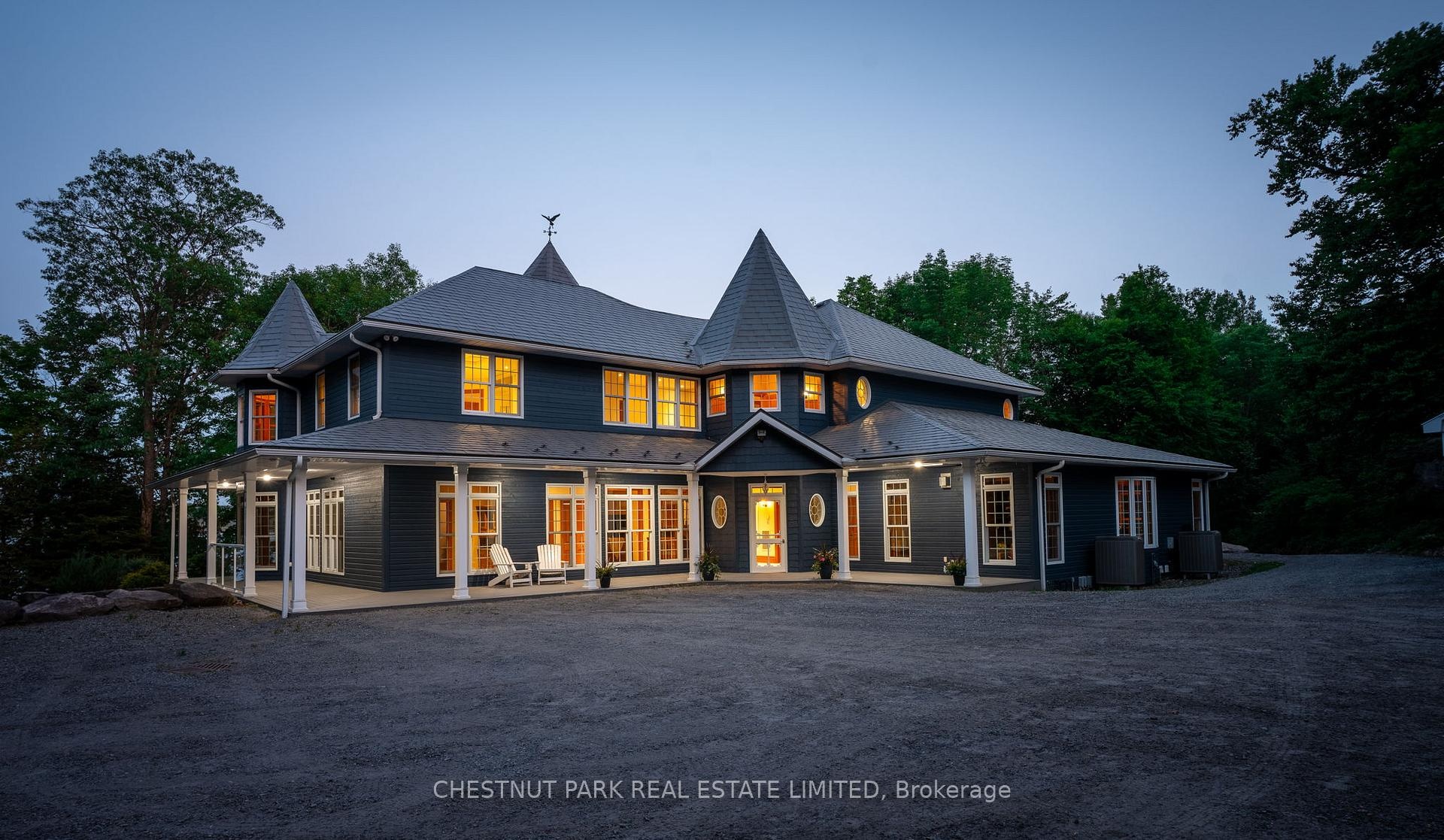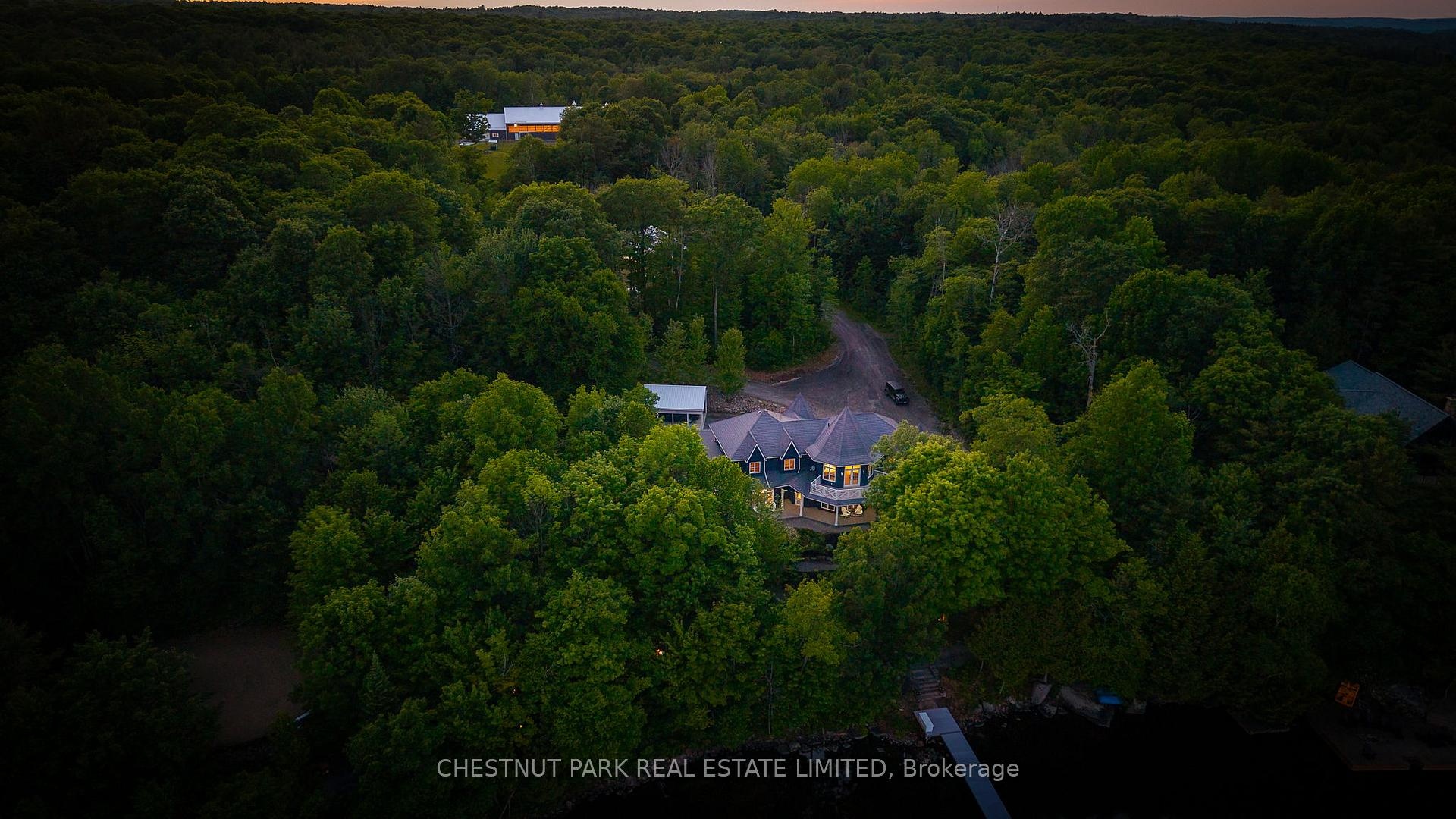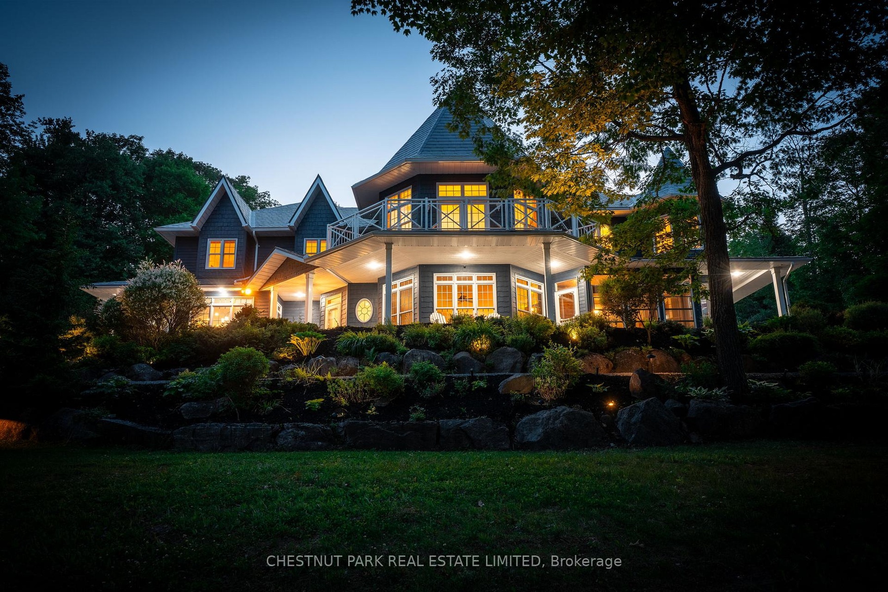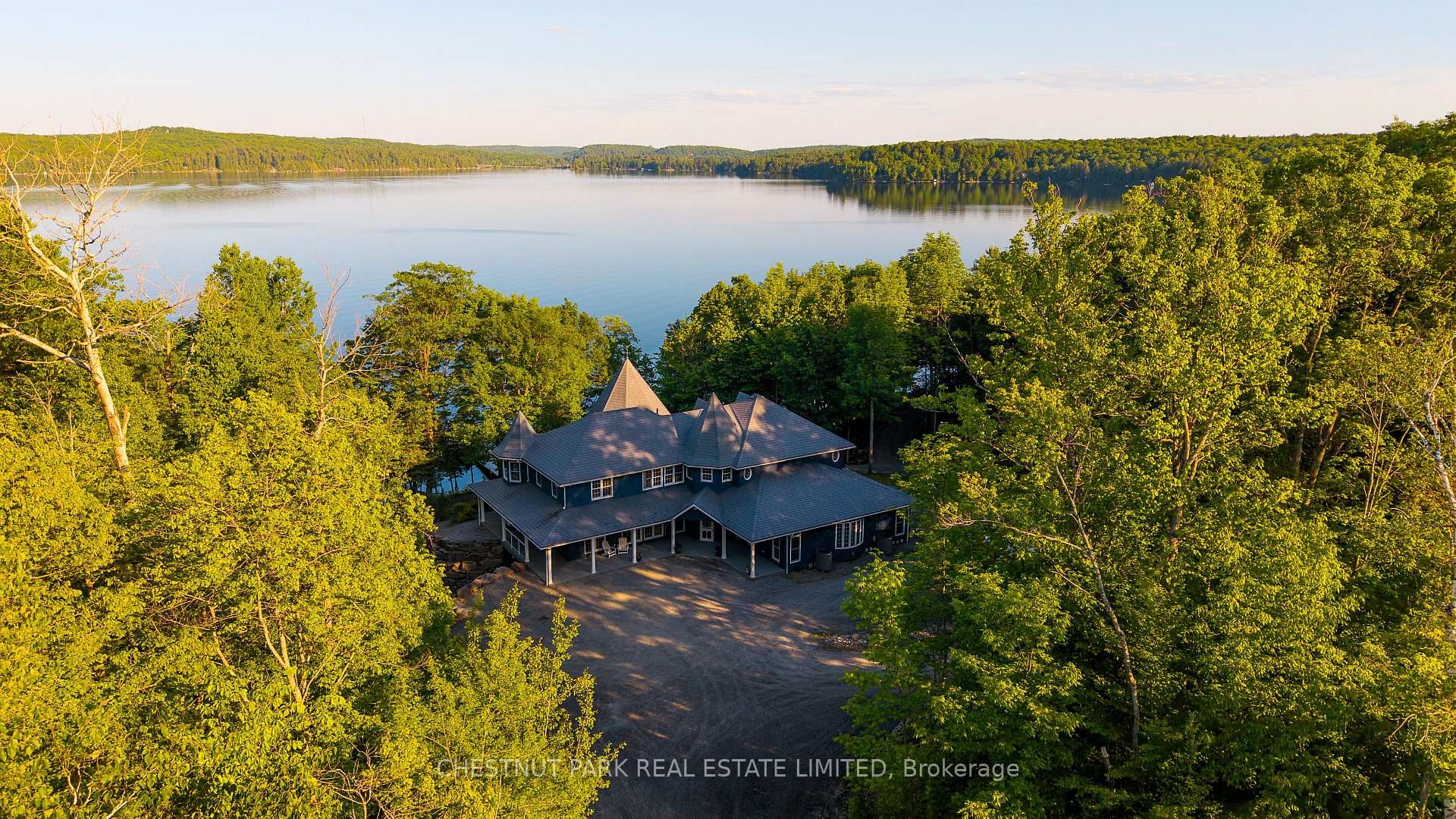 Landmark estate on Boshkung Lake with 440 ft of pristine shoreline and just under five acres of unmatched privacy. Located in the heart of the Haliburton Highlands, this luxury waterfront property offers over 7,000 sq ft of finished living space and an exceptional four-season lifestyle. The custom-built home features 4 bedrooms, including a breathtaking primary suite with fireplace, spa-inspired ensuite with soaker tub overlooking the lake, walk-in closet, and private lakeside deck with panoramic views. The gourmet eat-in kitchen is designed for both everyday living and entertaining, with premium appliances, custom cabinetry, expansive prep space, and a sunlit breakfast area, complemented by a butler's pantry. A grand dining room with fireplace creates a perfect setting for hosting, while multiple living areas capture uninterrupted lake views and provide seamless indoor-outdoor flow. The fully finished walkout lower level offers a home theatre and games area, fitness room, additional flex space, and a spa-like bath for year-round enjoyment. Outdoor living is elevated with maintenance-free Trex decking, hot tub, and professionally landscaped grounds featuring tiered gardens, lakeside pathways, irrigation system, and ambient lighting, creating a private resort-style setting. A secondary driveway, carport, and 4-car insulated garage add convenience and functionality. Two composite docking systems provide excellent access for boating, swimming, and watersports on one of Haliburton's most sought-after lakes. A rare opportunity to own a generational waterfront estate in one of Ontario's premier cottage country destinations.