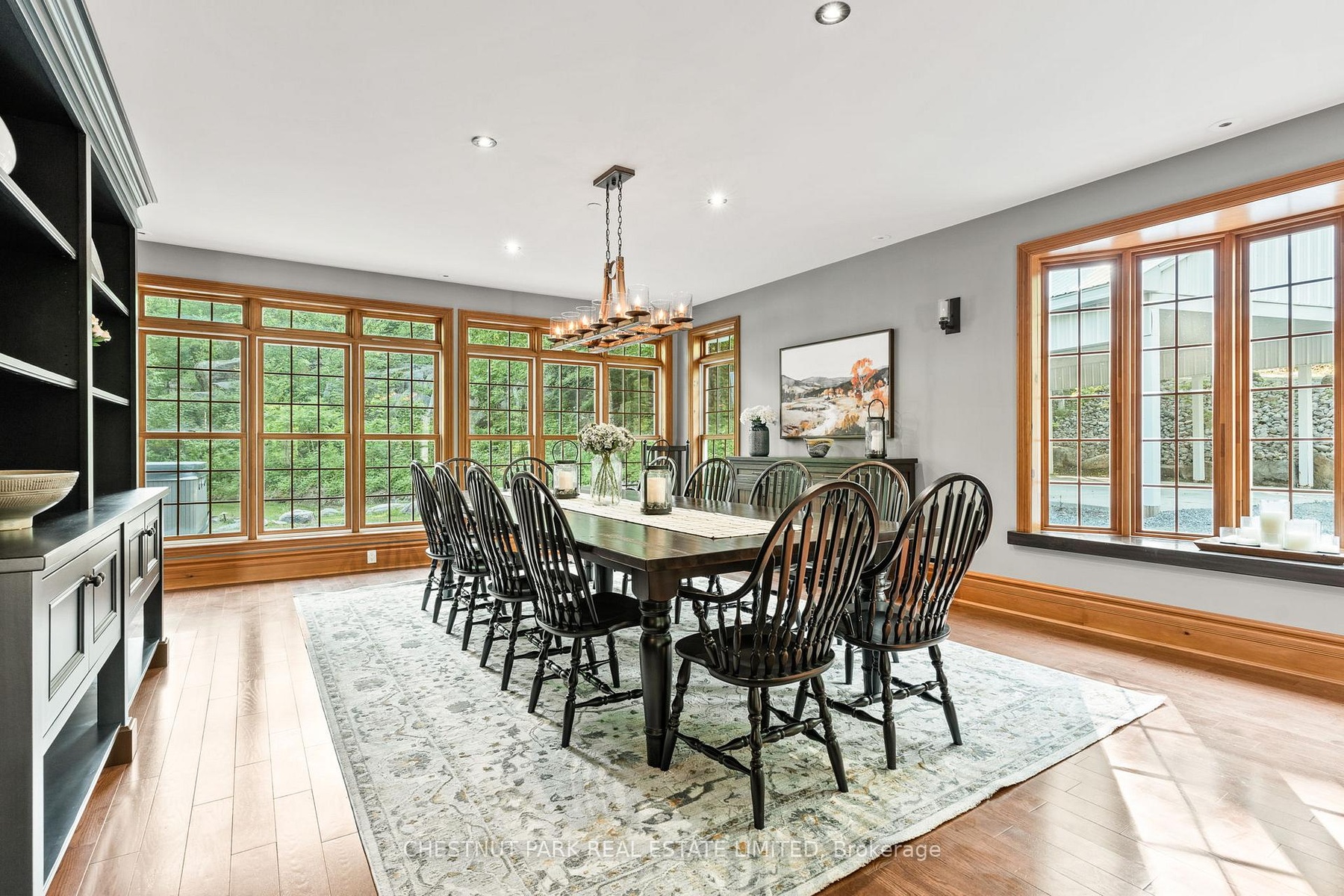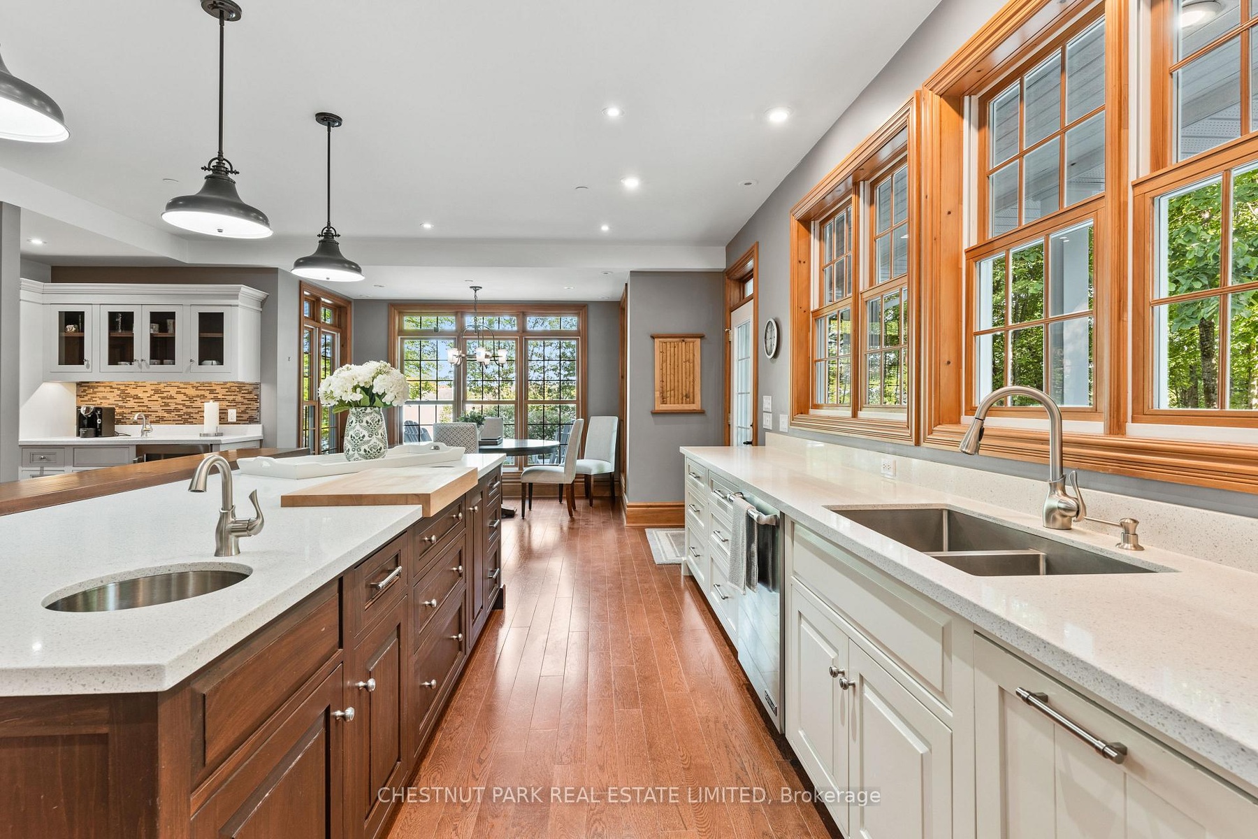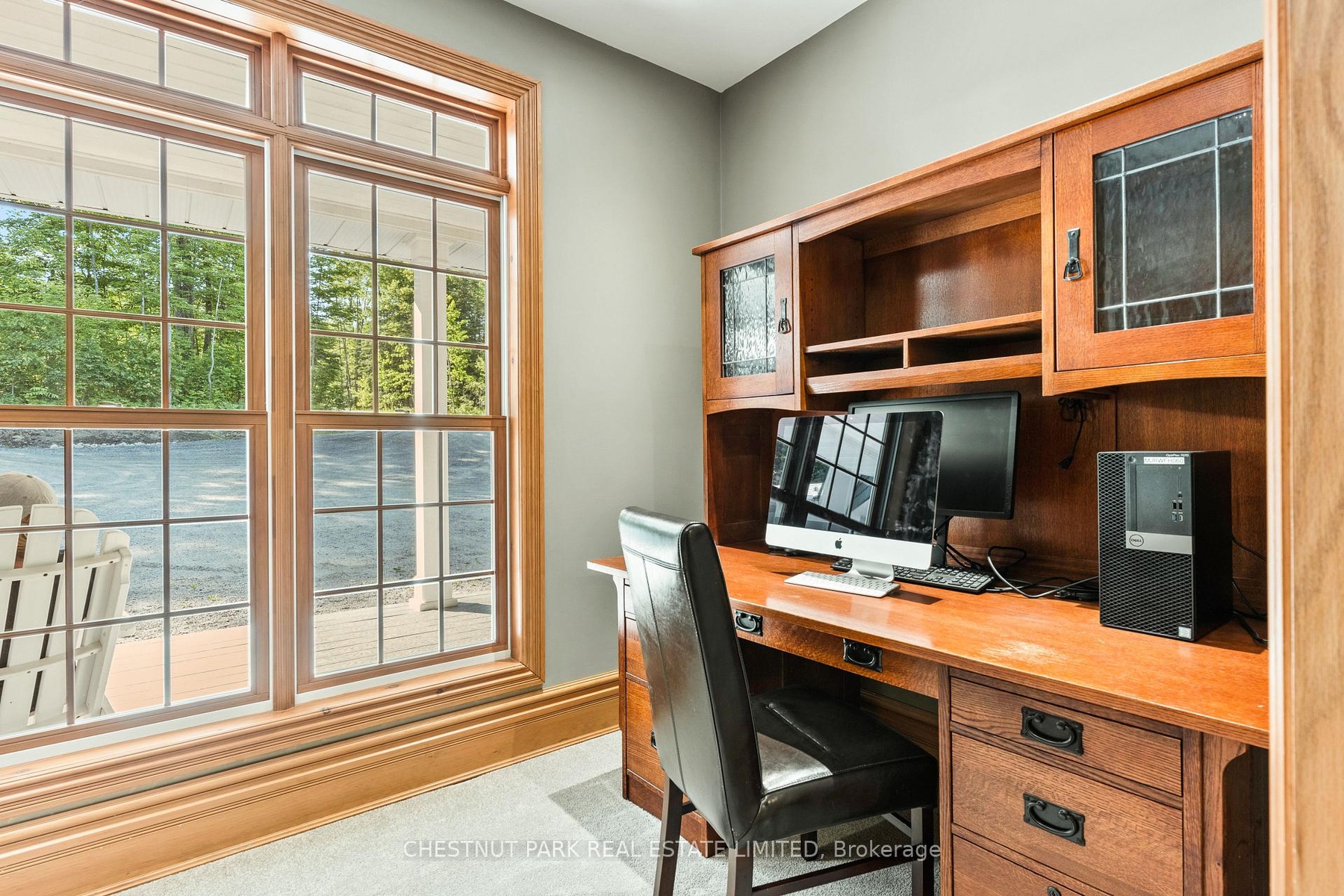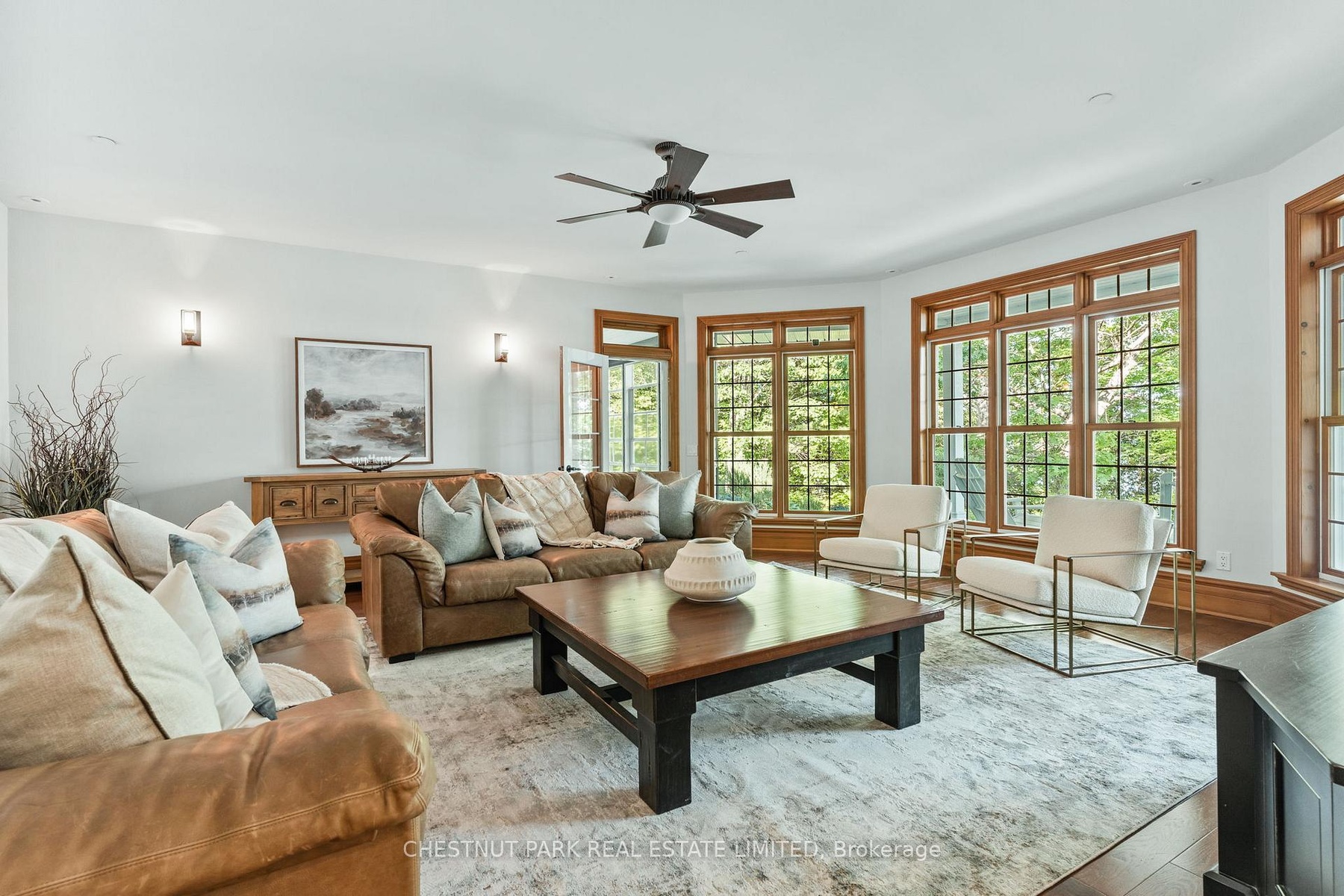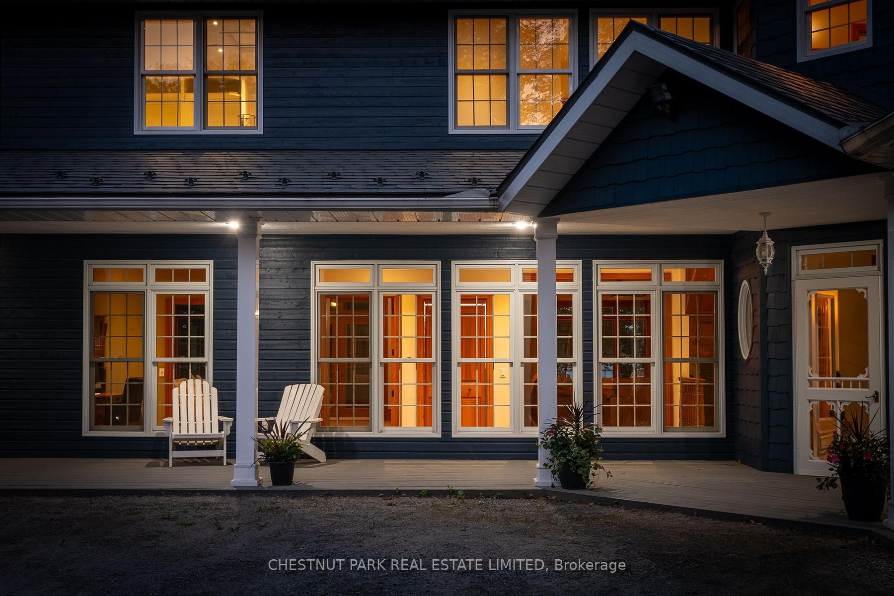 Landmark estate on Boshkung Lake with 440 ft of pristine shoreline and just under five acres of unmatched privacy. Located in the heart of the Haliburton Highlands, this luxury waterfront property offers over 7,000 sq ft of finished living space and an exceptional four-season lifestyle. The custom-built home features 4 bedrooms, including a breathtaking primary suite with fireplace, spa-inspired ensuite with soaker tub overlooking the lake, walk-in closet, and private lakeside deck with panoramic views. The gourmet eat-in kitchen is designed for both everyday living and entertaining, with premium appliances, custom cabinetry, expansive prep space, and a sunlit breakfast area, complemented by a butler's pantry. A grand dining room with fireplace creates a perfect setting for hosting, while multiple living areas capture uninterrupted lake views and provide seamless indoor-outdoor flow. The fully finished walkout lower level offers a home theatre and games area, fitness room, additional flex space, and a spa-like bath for year-round enjoyment. Outdoor living is elevated with maintenance-free Trex decking, hot tub, and professionally landscaped grounds featuring tiered gardens, lakeside pathways, irrigation system, and ambient lighting, creating a private resort-style setting. A secondary driveway, carport, and 4-car insulated garage add convenience and functionality. Two composite docking systems provide excellent access for boating, swimming, and watersports on one of Haliburton's most sought-after lakes. A rare opportunity to own a generational waterfront estate in one of Ontario's premier cottage country destinations.