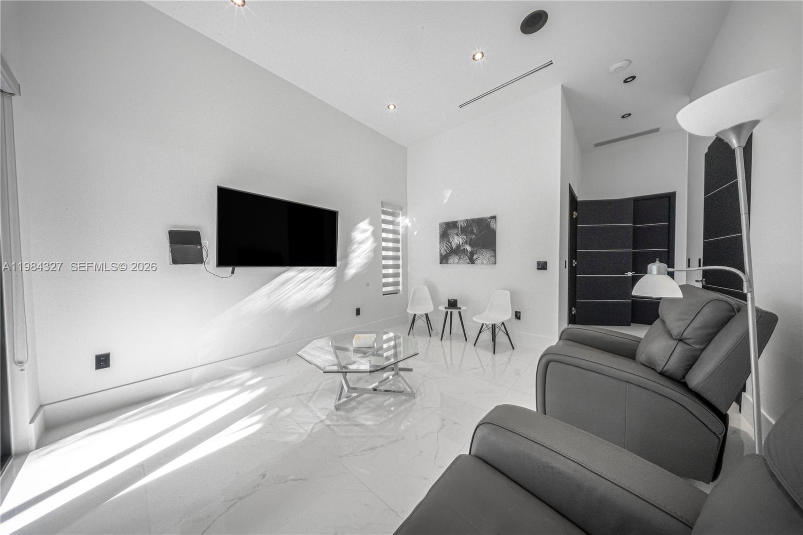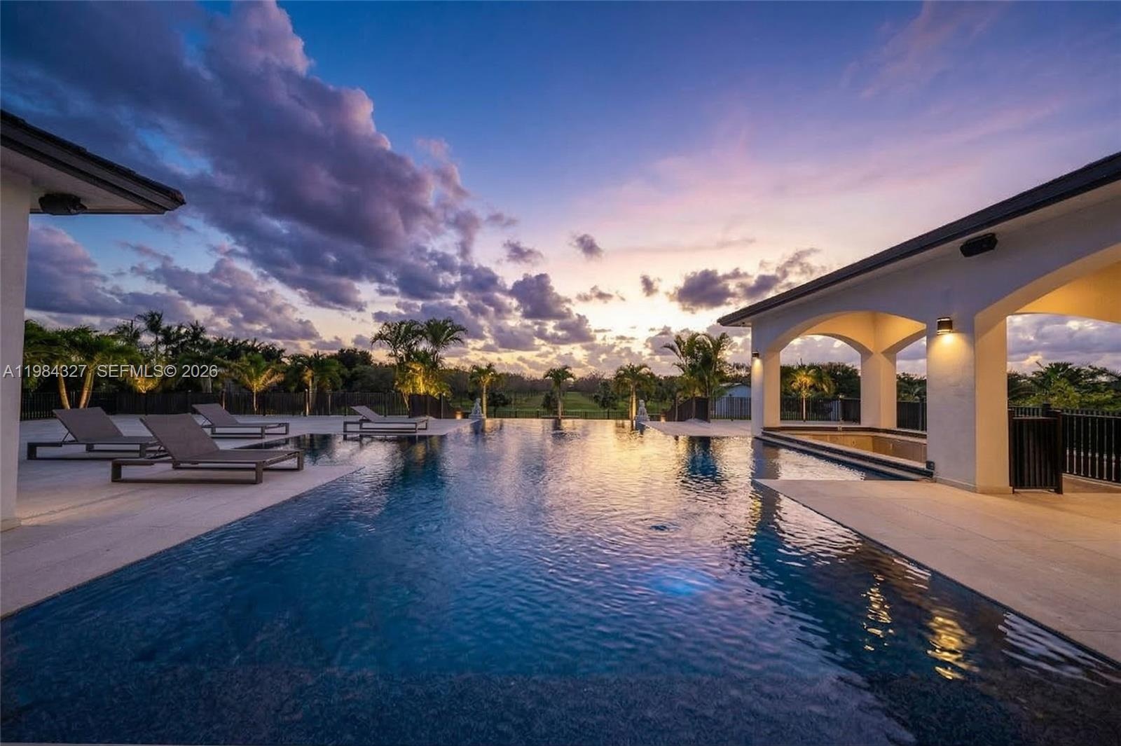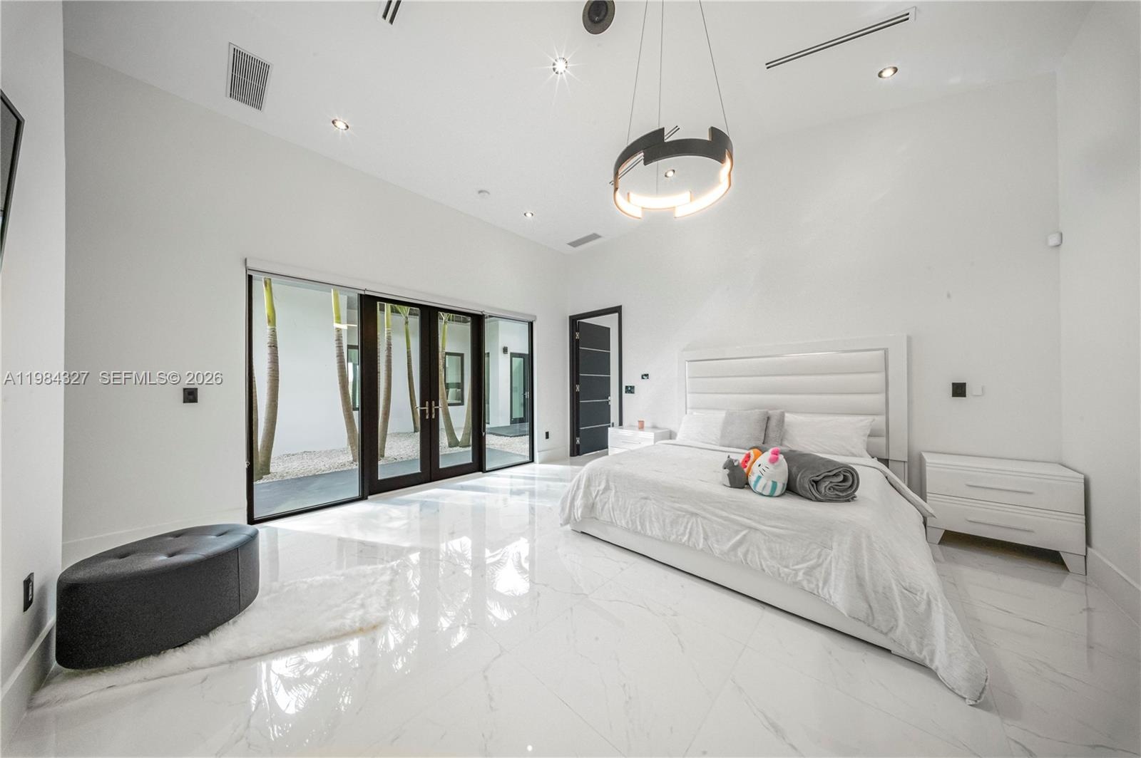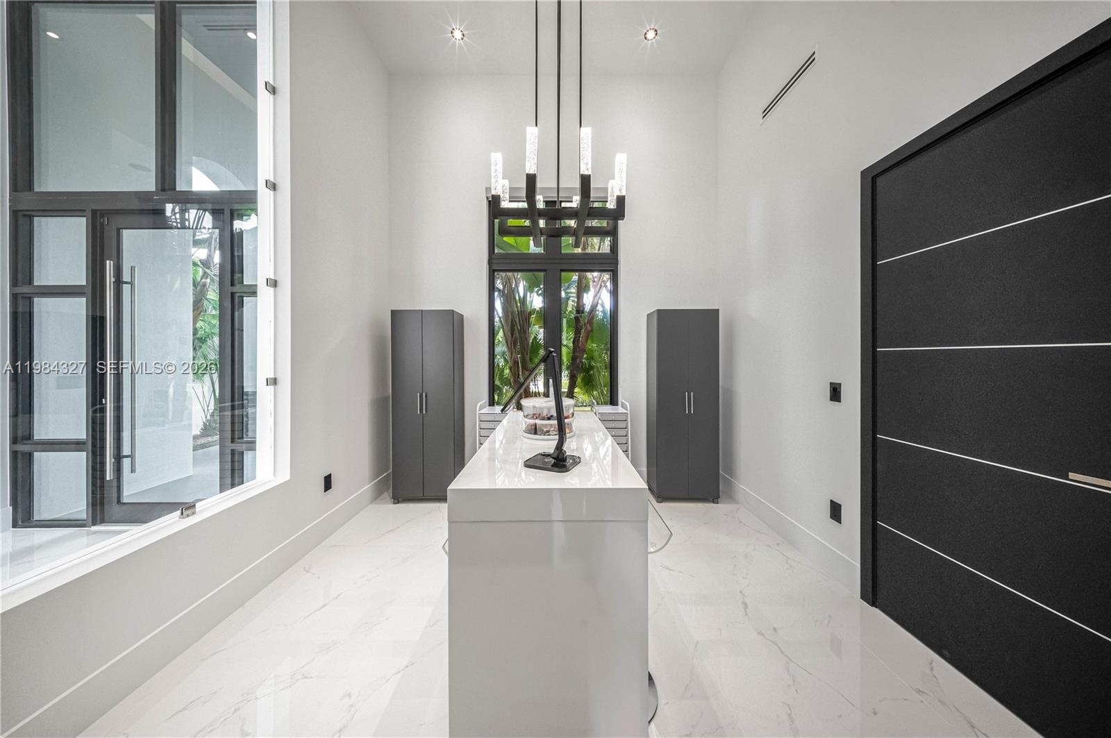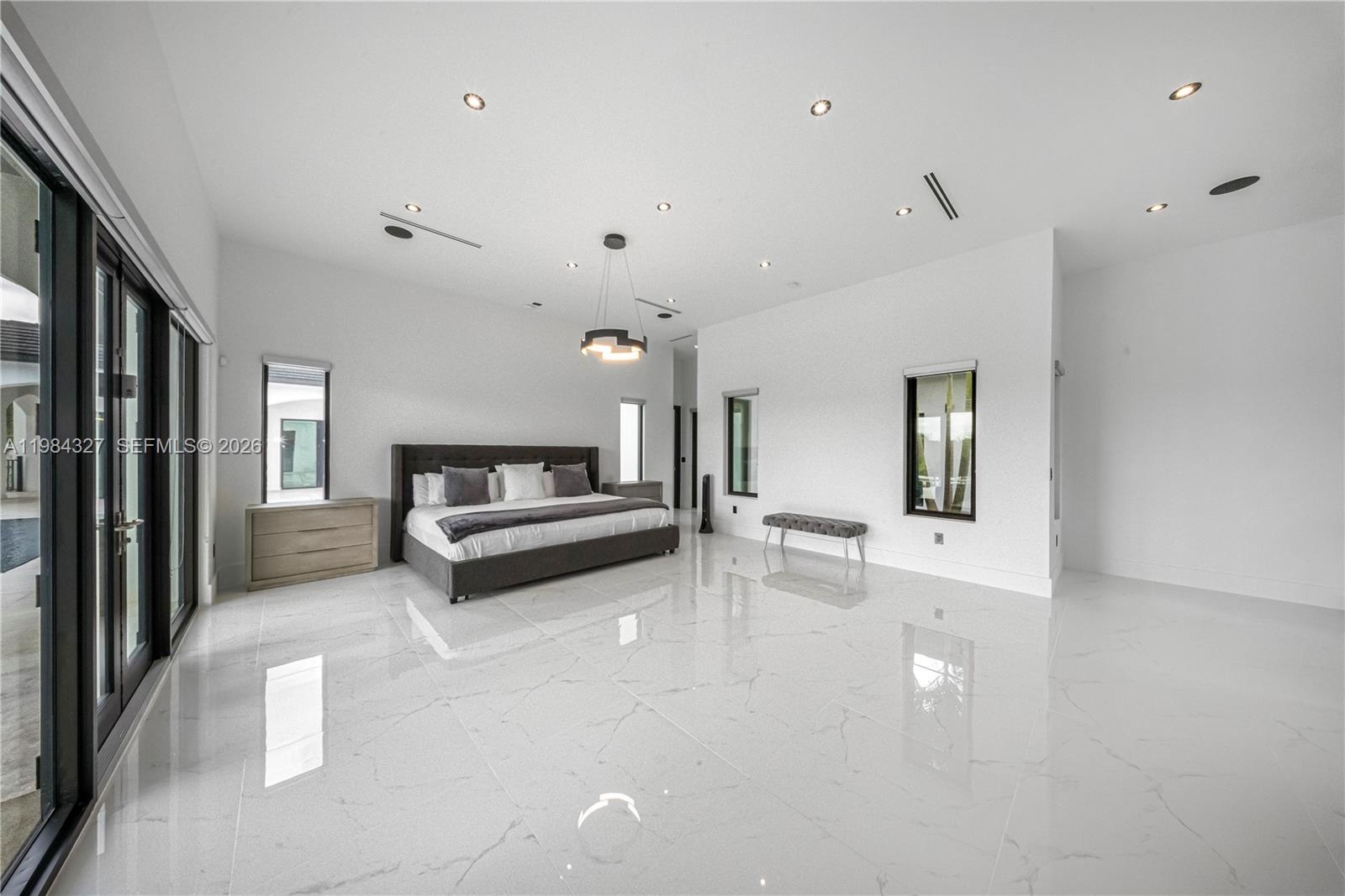 Welcome to Arrow Estate — a modern contemporary masterpiece on over 5 acres in Miami Dade County, near West Kendall and the Redlands. Built in 2023, this architectural gem offers 7 bedrooms, 6 bathrooms, and over 8626 sq ft, 11,835 adjusted sq ft, within 15,391 total sq ft under roof. A grand double-height foyer with 17-ft ceilings, floor-to-ceiling impact glass, and crystal chandeliers opens to expansive living areas and a chef’s kitchen with Liebherr refrigeration, Monogram appliances, induction cooktop, wine cooler, and oversized walk-in pantry. Bathrooms feature Duravit fixtures, smart mirrors, and bidet-equipped floating toilets. Ceramic tile floors run throughout, complemented by custom German doors. Four primary suites include spa-style baths, rainfall showers, soaking tubs, and custom closets; the main suite offers a lounge and pool access. Additional spaces include an office, media room, family room, art studio, and full laundry with LG appliances. Outdoors, enjoy a 20x40 infinity pool, sunken bar, built-in BBQ, and natural stone terraces ideal for entertaining. The property also features a 6-car garage, barn with kitchen and bath, casita, and multiple structures with future guest potential, plus 355 tropical fruit trees producing with AG exemption, a gas-powered generator with a 1,200-gallon tank, and no HOA.