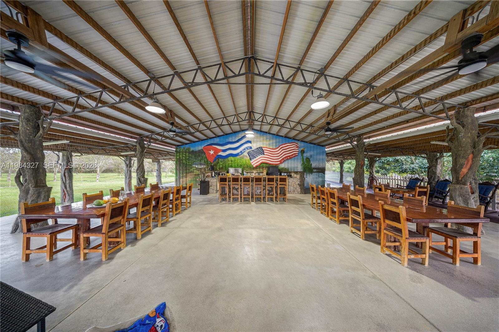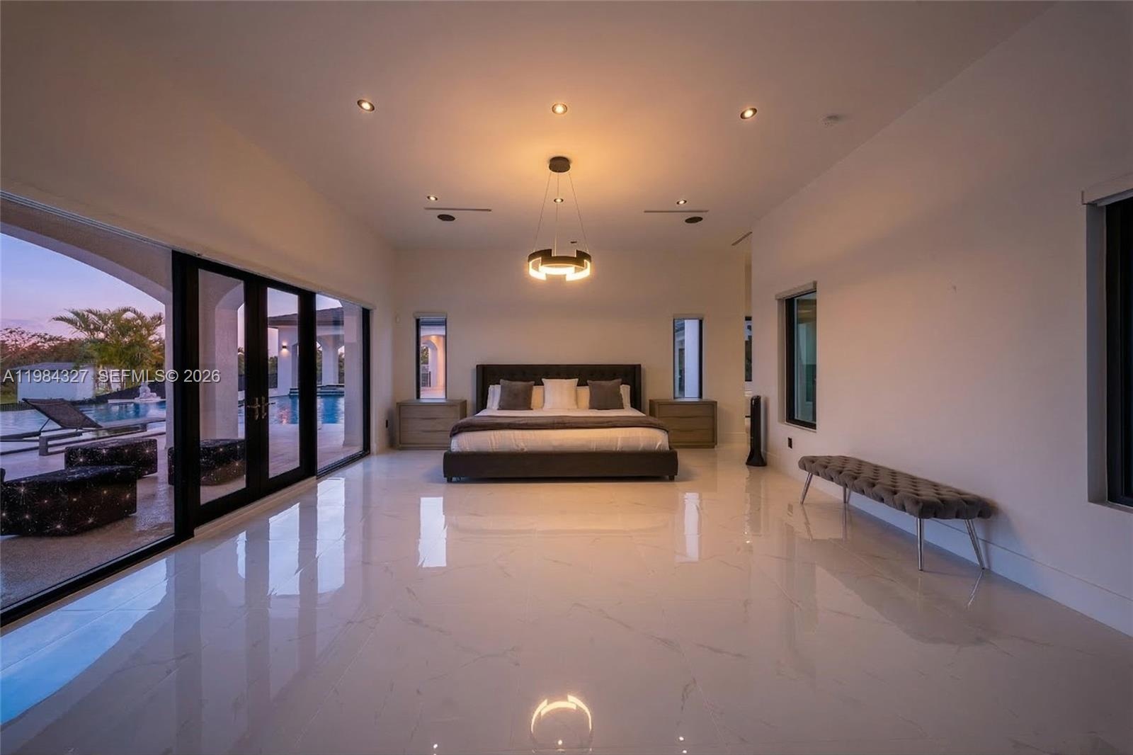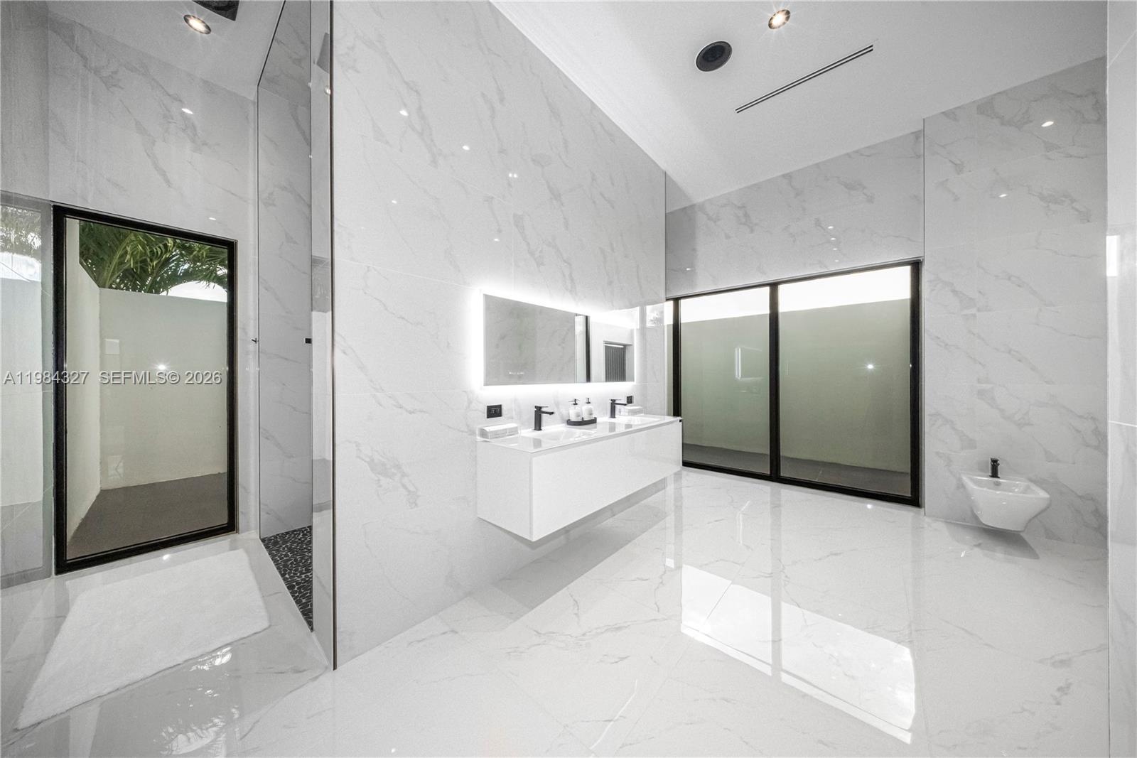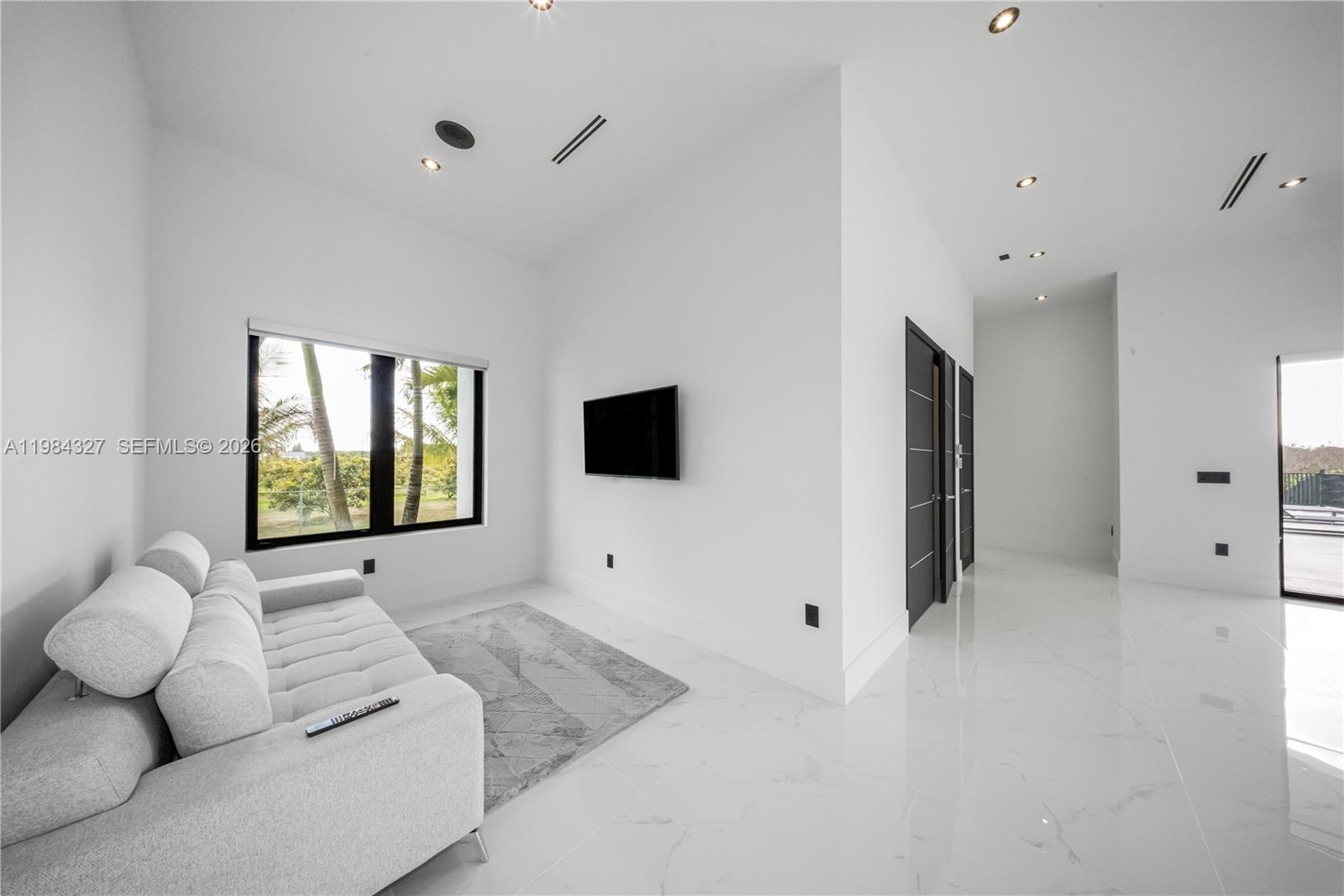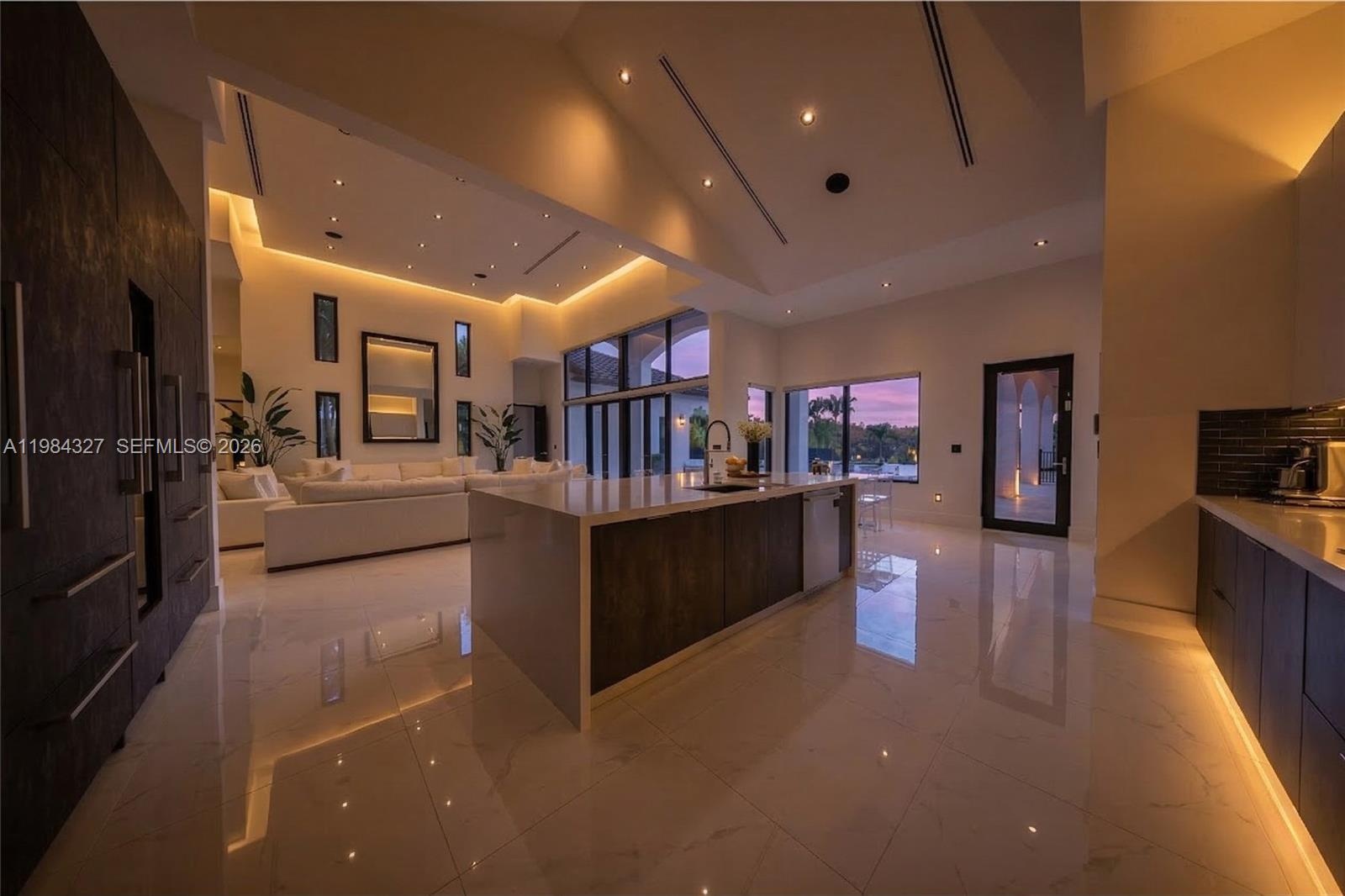 Welcome to Arrow Estate — a modern contemporary masterpiece on over 5 acres in Miami Dade County, near West Kendall and the Redlands. Built in 2023, this architectural gem offers 7 bedrooms, 6 bathrooms, and over 8626 sq ft, 11,835 adjusted sq ft, within 15,391 total sq ft under roof. A grand double-height foyer with 17-ft ceilings, floor-to-ceiling impact glass, and crystal chandeliers opens to expansive living areas and a chef’s kitchen with Liebherr refrigeration, Monogram appliances, induction cooktop, wine cooler, and oversized walk-in pantry. Bathrooms feature Duravit fixtures, smart mirrors, and bidet-equipped floating toilets. Ceramic tile floors run throughout, complemented by custom German doors. Four primary suites include spa-style baths, rainfall showers, soaking tubs, and custom closets; the main suite offers a lounge and pool access. Additional spaces include an office, media room, family room, art studio, and full laundry with LG appliances. Outdoors, enjoy a 20x40 infinity pool, sunken bar, built-in BBQ, and natural stone terraces ideal for entertaining. The property also features a 6-car garage, barn with kitchen and bath, casita, and multiple structures with future guest potential, plus 355 tropical fruit trees producing with AG exemption, a gas-powered generator with a 1,200-gallon tank, and no HOA.