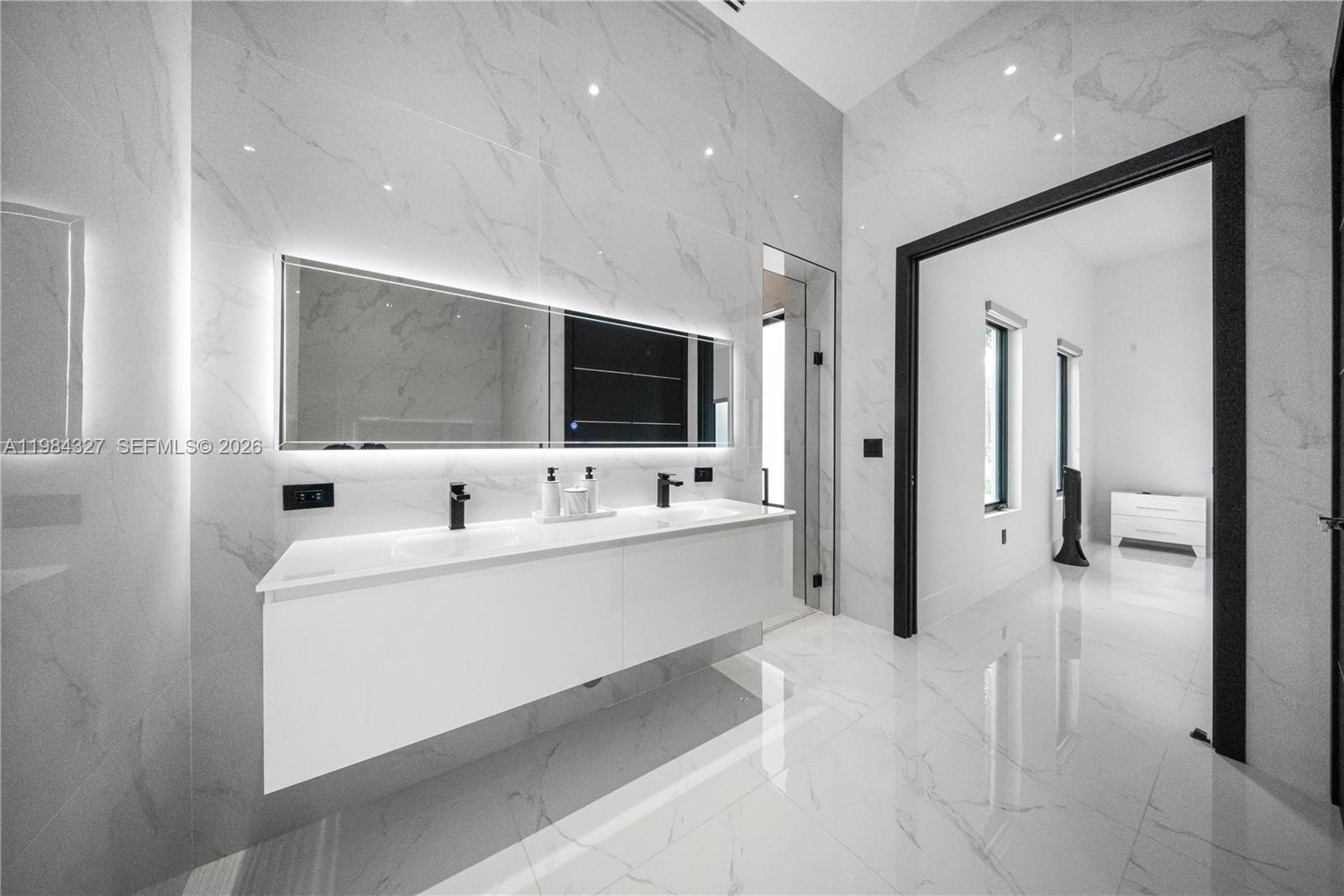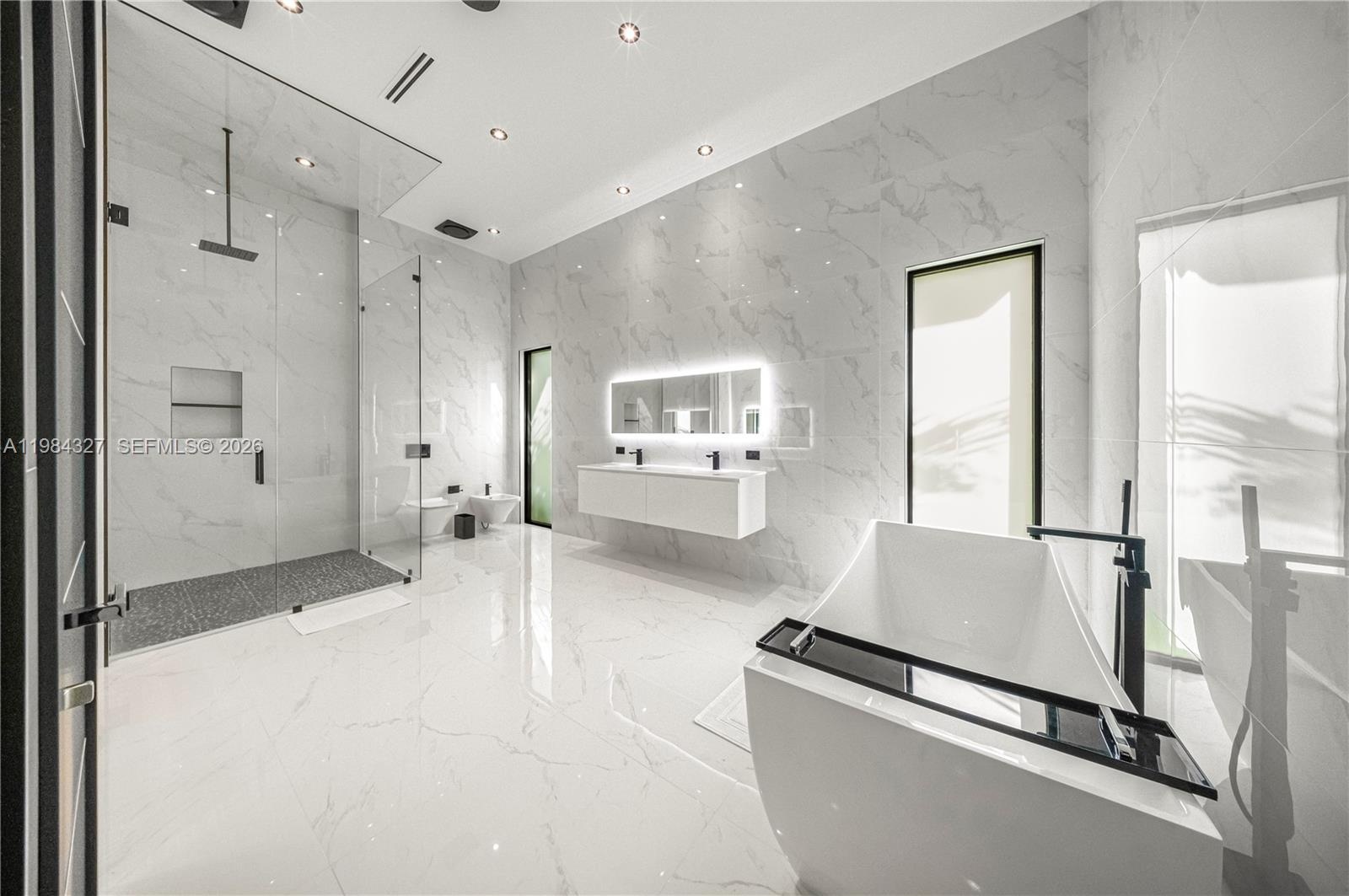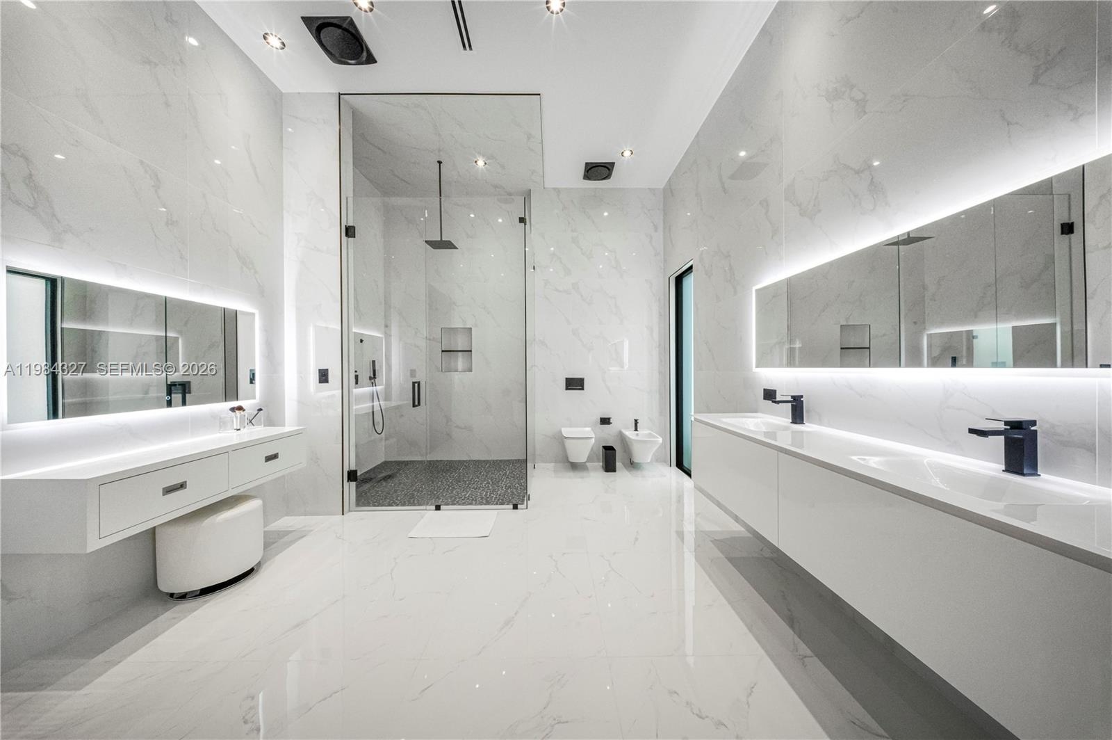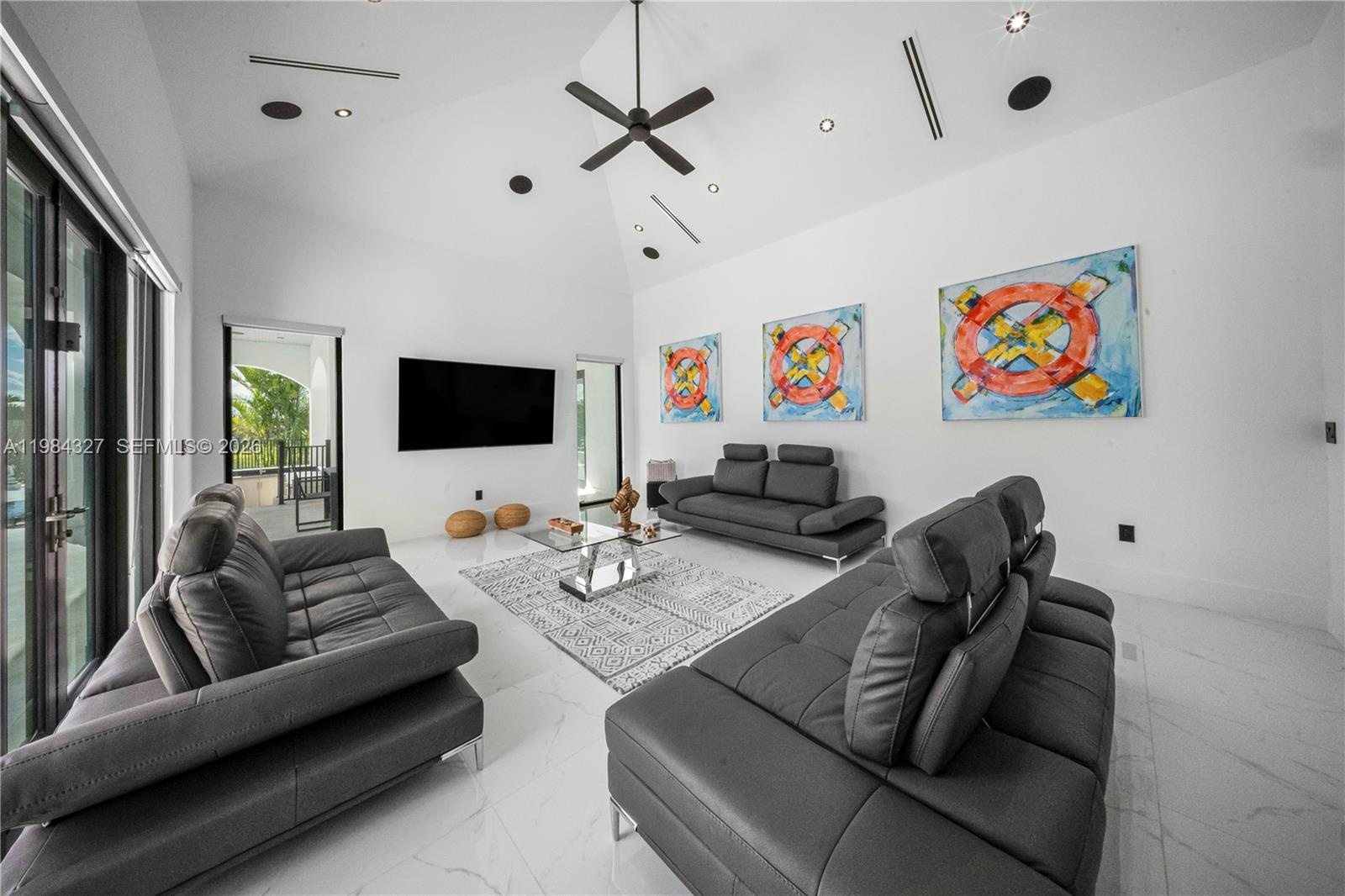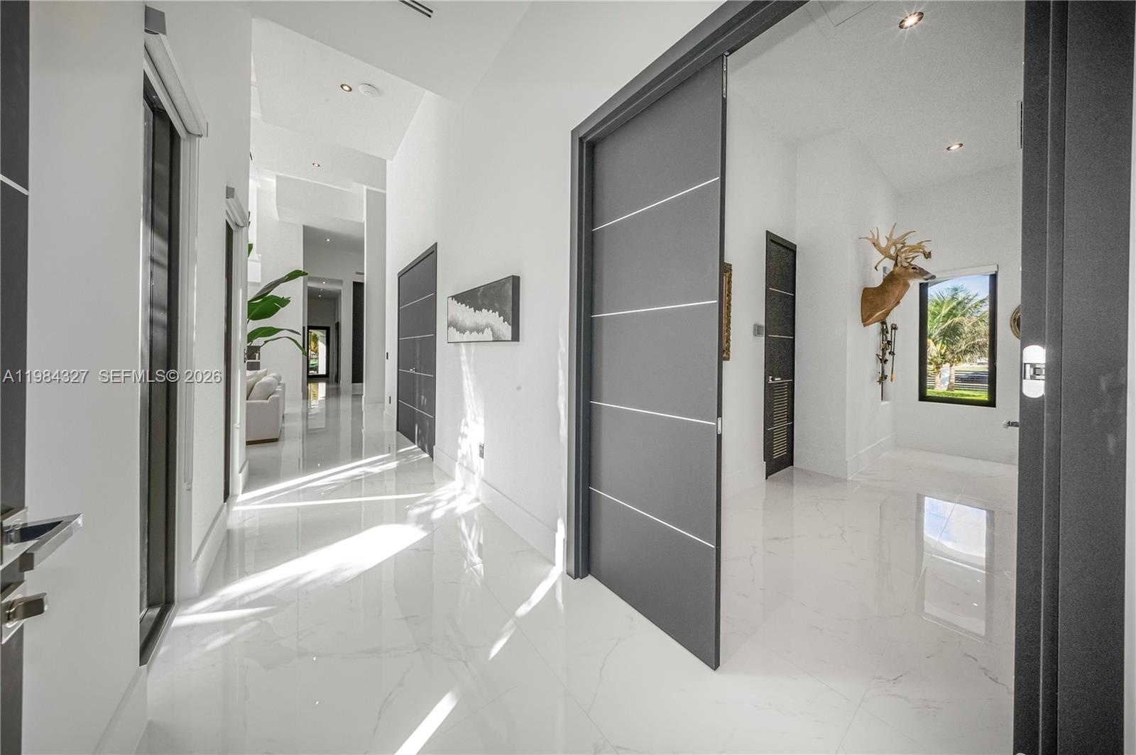 Welcome to Arrow Estate — a modern contemporary masterpiece on over 5 acres in Miami Dade County, near West Kendall and the Redlands. Built in 2023, this architectural gem offers 7 bedrooms, 6 bathrooms, and over 8626 sq ft, 11,835 adjusted sq ft, within 15,391 total sq ft under roof. A grand double-height foyer with 17-ft ceilings, floor-to-ceiling impact glass, and crystal chandeliers opens to expansive living areas and a chef’s kitchen with Liebherr refrigeration, Monogram appliances, induction cooktop, wine cooler, and oversized walk-in pantry. Bathrooms feature Duravit fixtures, smart mirrors, and bidet-equipped floating toilets. Ceramic tile floors run throughout, complemented by custom German doors. Four primary suites include spa-style baths, rainfall showers, soaking tubs, and custom closets; the main suite offers a lounge and pool access. Additional spaces include an office, media room, family room, art studio, and full laundry with LG appliances. Outdoors, enjoy a 20x40 infinity pool, sunken bar, built-in BBQ, and natural stone terraces ideal for entertaining. The property also features a 6-car garage, barn with kitchen and bath, casita, and multiple structures with future guest potential, plus 355 tropical fruit trees producing with AG exemption, a gas-powered generator with a 1,200-gallon tank, and no HOA.