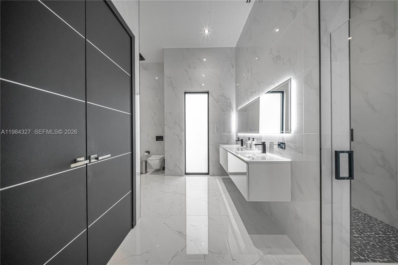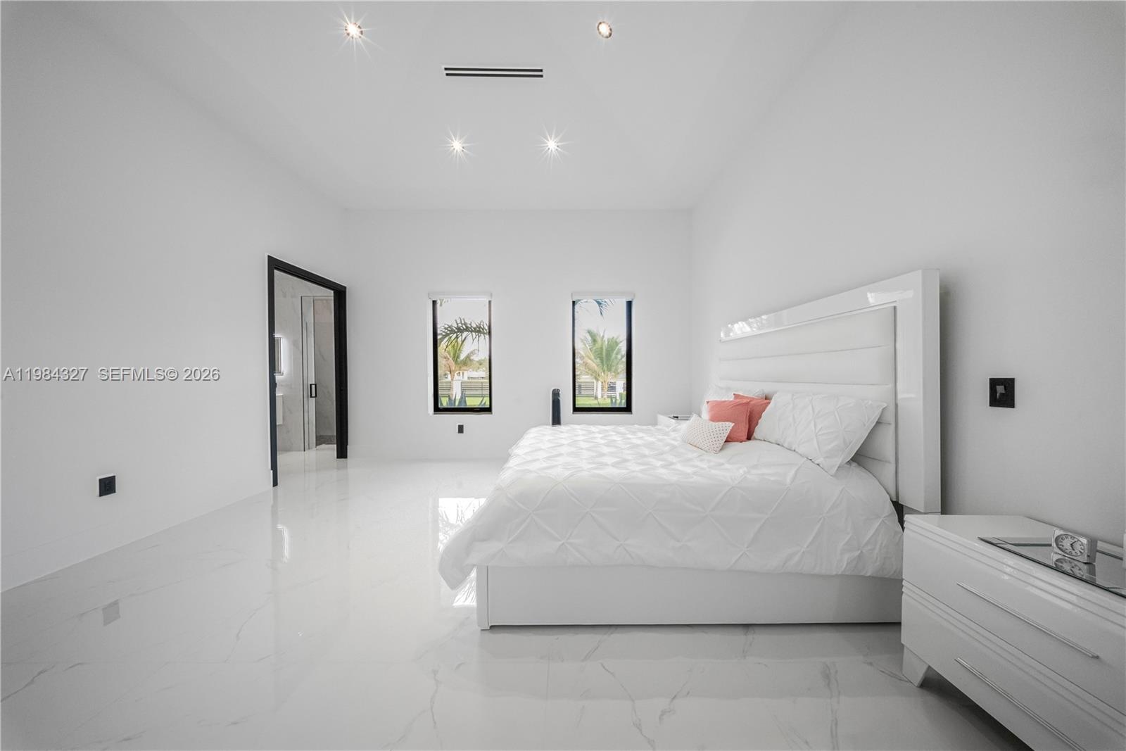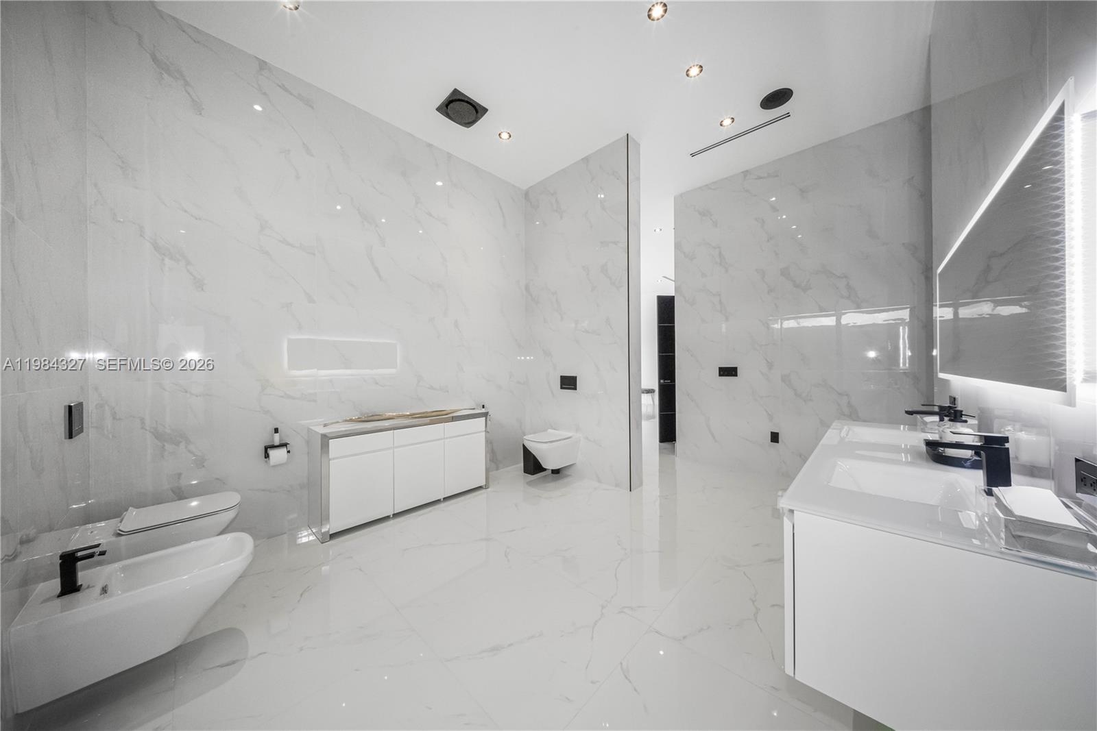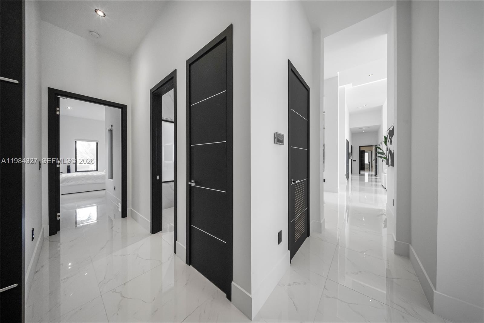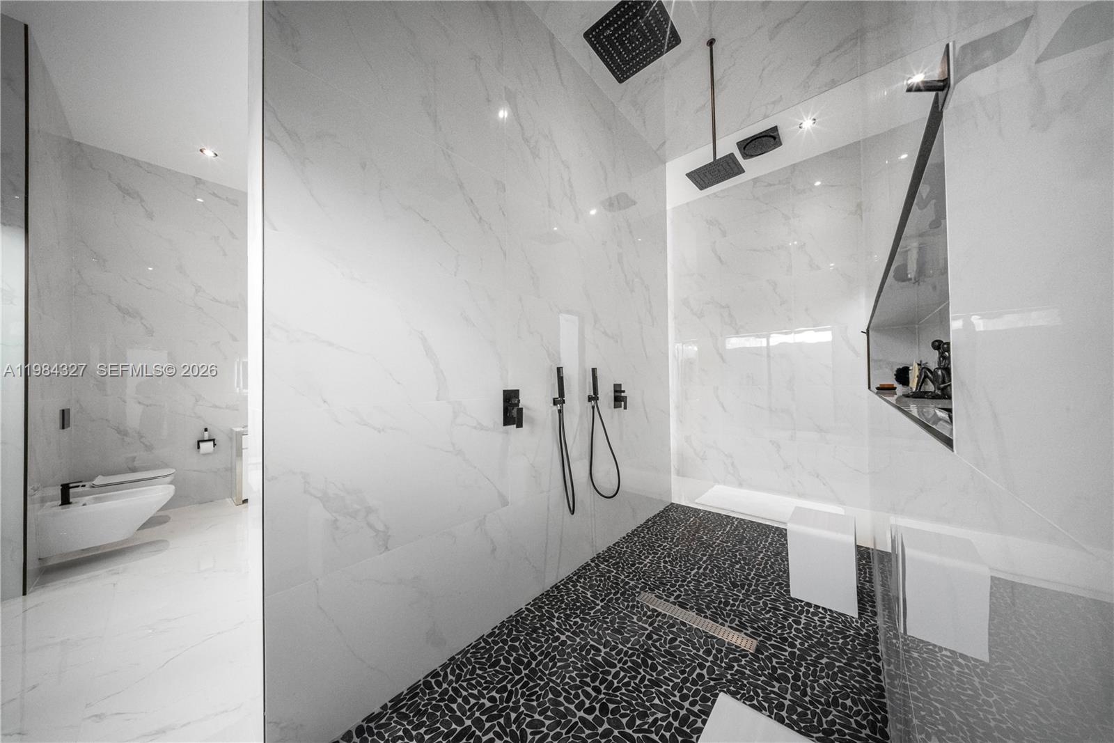 Welcome to Arrow Estate — a modern contemporary masterpiece on over 5 acres in Miami Dade County, near West Kendall and the Redlands. Built in 2023, this architectural gem offers 7 bedrooms, 6 bathrooms, and over 8626 sq ft, 11,835 adjusted sq ft, within 15,391 total sq ft under roof. A grand double-height foyer with 17-ft ceilings, floor-to-ceiling impact glass, and crystal chandeliers opens to expansive living areas and a chef’s kitchen with Liebherr refrigeration, Monogram appliances, induction cooktop, wine cooler, and oversized walk-in pantry. Bathrooms feature Duravit fixtures, smart mirrors, and bidet-equipped floating toilets. Ceramic tile floors run throughout, complemented by custom German doors. Four primary suites include spa-style baths, rainfall showers, soaking tubs, and custom closets; the main suite offers a lounge and pool access. Additional spaces include an office, media room, family room, art studio, and full laundry with LG appliances. Outdoors, enjoy a 20x40 infinity pool, sunken bar, built-in BBQ, and natural stone terraces ideal for entertaining. The property also features a 6-car garage, barn with kitchen and bath, casita, and multiple structures with future guest potential, plus 355 tropical fruit trees producing with AG exemption, a gas-powered generator with a 1,200-gallon tank, and no HOA.