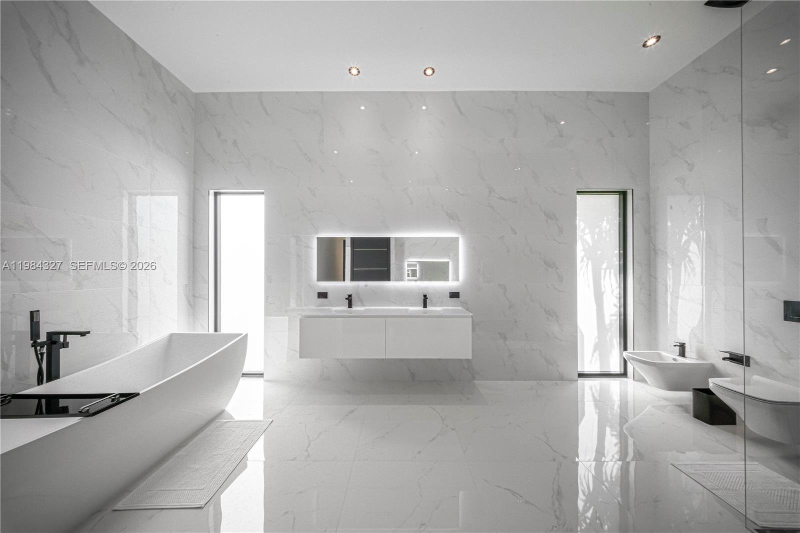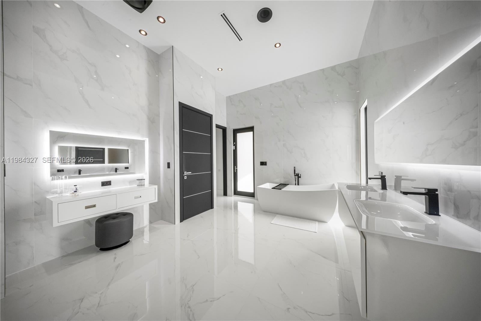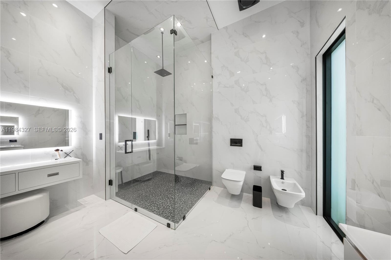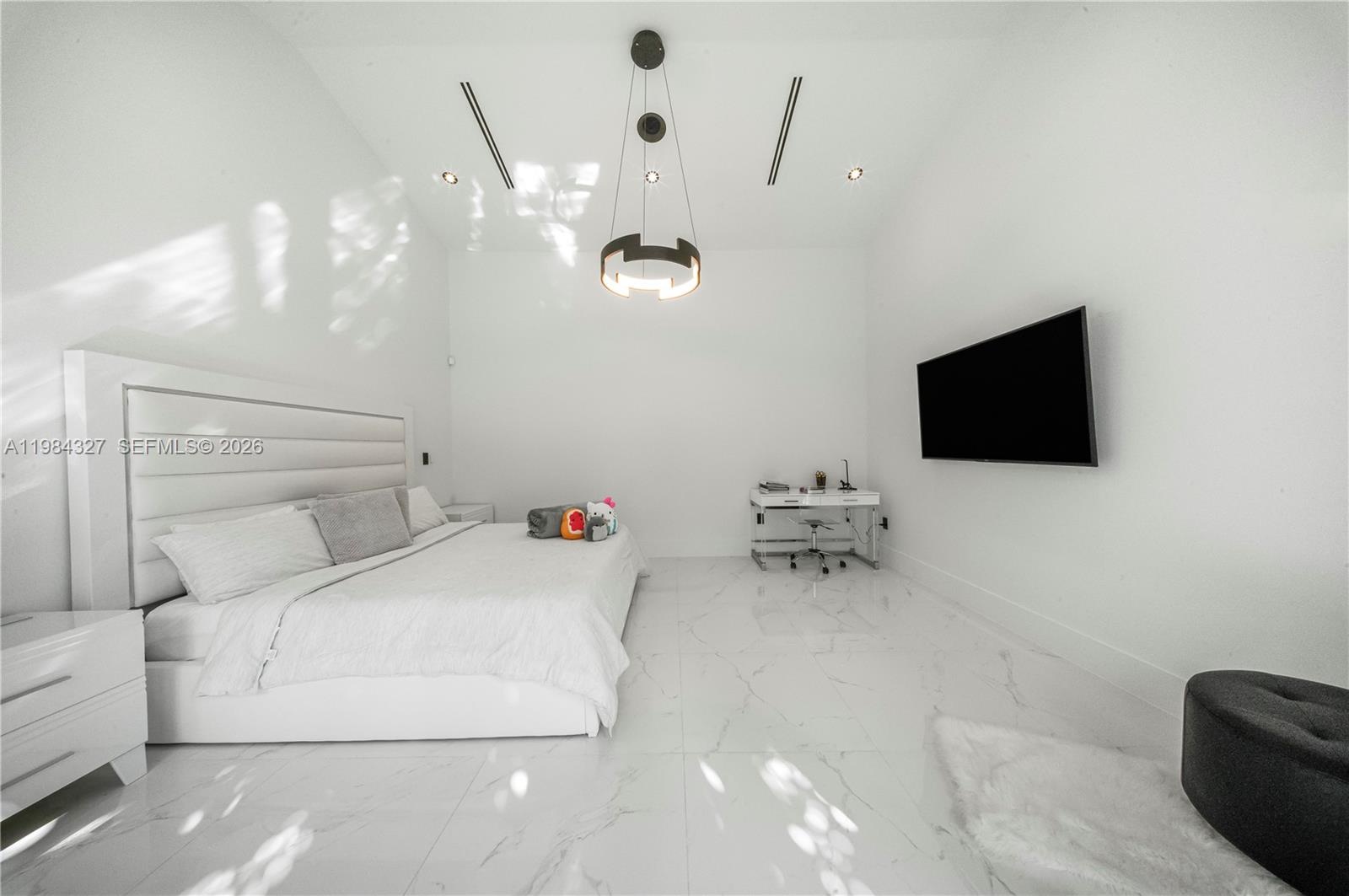 Welcome to Arrow Estate — a modern contemporary masterpiece on over 5 acres in Miami Dade County, near West Kendall and the Redlands. Built in 2023, this architectural gem offers 7 bedrooms, 6 bathrooms, and over 8626 sq ft, 11,835 adjusted sq ft, within 15,391 total sq ft under roof. A grand double-height foyer with 17-ft ceilings, floor-to-ceiling impact glass, and crystal chandeliers opens to expansive living areas and a chef’s kitchen with Liebherr refrigeration, Monogram appliances, induction cooktop, wine cooler, and oversized walk-in pantry. Bathrooms feature Duravit fixtures, smart mirrors, and bidet-equipped floating toilets. Ceramic tile floors run throughout, complemented by custom German doors. Four primary suites include spa-style baths, rainfall showers, soaking tubs, and custom closets; the main suite offers a lounge and pool access. Additional spaces include an office, media room, family room, art studio, and full laundry with LG appliances. Outdoors, enjoy a 20x40 infinity pool, sunken bar, built-in BBQ, and natural stone terraces ideal for entertaining. The property also features a 6-car garage, barn with kitchen and bath, casita, and multiple structures with future guest potential, plus 355 tropical fruit trees producing with AG exemption, a gas-powered generator with a 1,200-gallon tank, and no HOA.