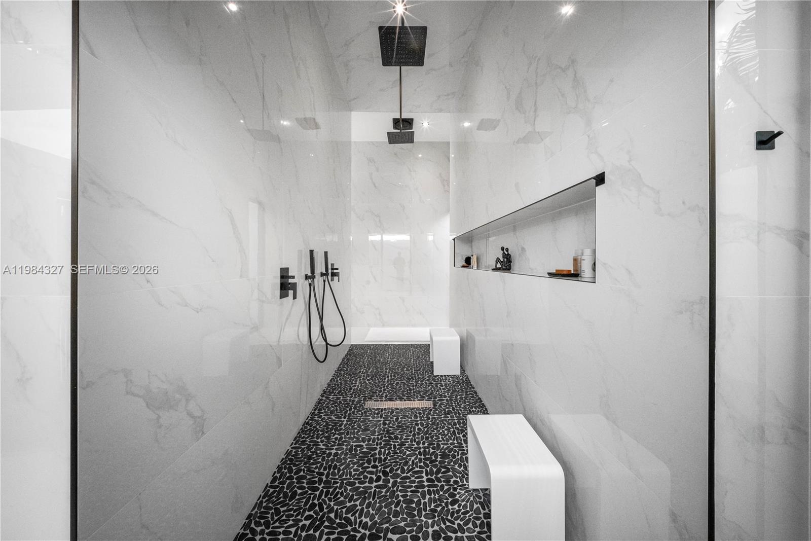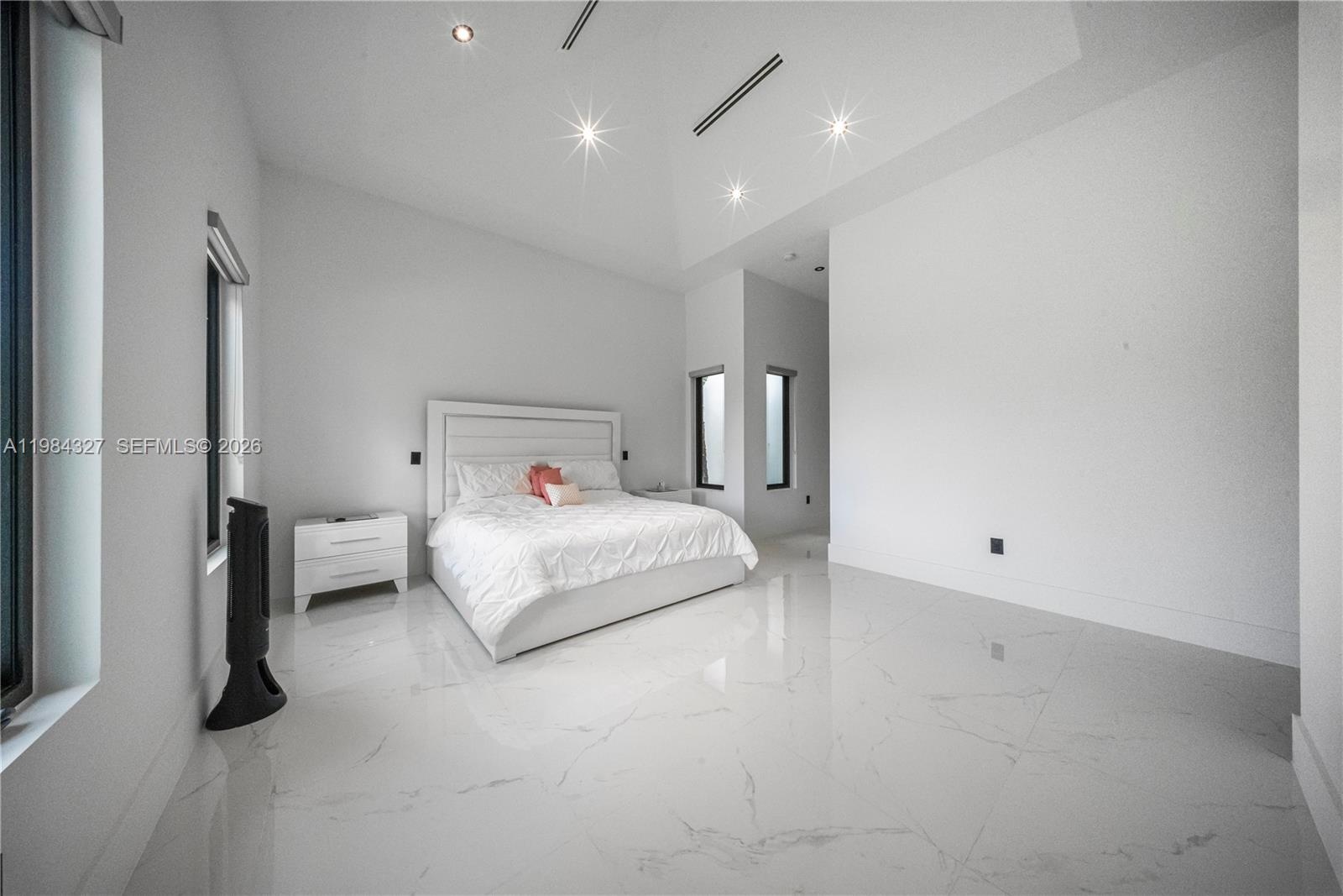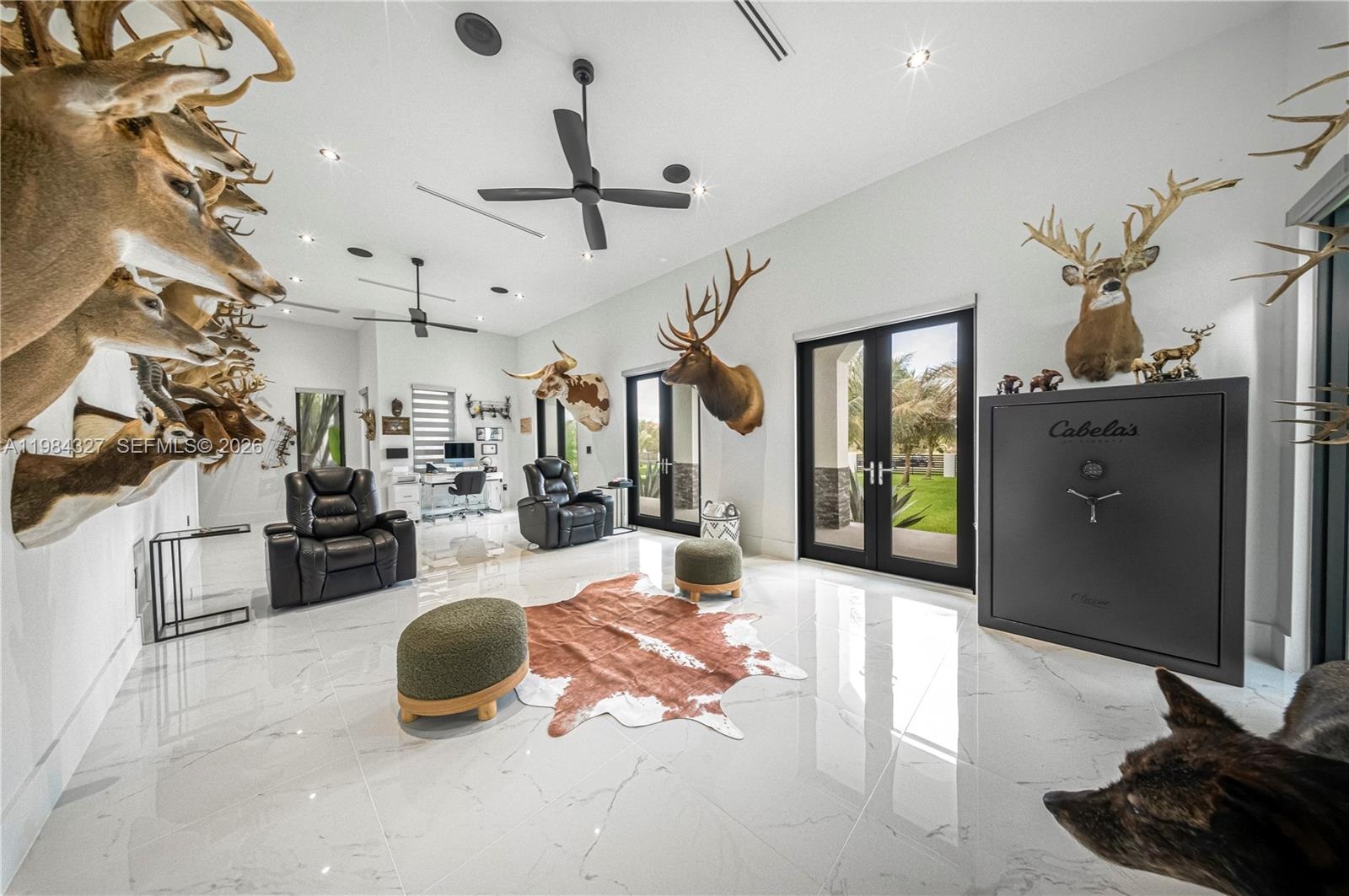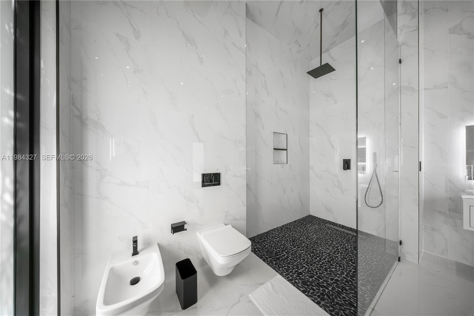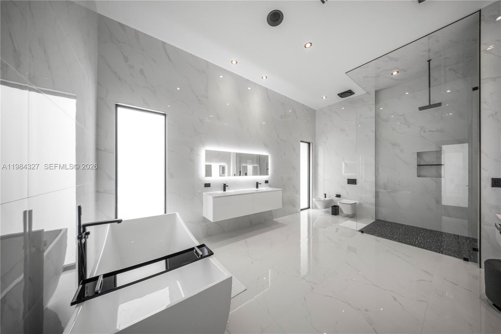 Welcome to Arrow Estate — a modern contemporary masterpiece on over 5 acres in Miami Dade County, near West Kendall and the Redlands. Built in 2023, this architectural gem offers 7 bedrooms, 6 bathrooms, and over 8626 sq ft, 11,835 adjusted sq ft, within 15,391 total sq ft under roof. A grand double-height foyer with 17-ft ceilings, floor-to-ceiling impact glass, and crystal chandeliers opens to expansive living areas and a chef’s kitchen with Liebherr refrigeration, Monogram appliances, induction cooktop, wine cooler, and oversized walk-in pantry. Bathrooms feature Duravit fixtures, smart mirrors, and bidet-equipped floating toilets. Ceramic tile floors run throughout, complemented by custom German doors. Four primary suites include spa-style baths, rainfall showers, soaking tubs, and custom closets; the main suite offers a lounge and pool access. Additional spaces include an office, media room, family room, art studio, and full laundry with LG appliances. Outdoors, enjoy a 20x40 infinity pool, sunken bar, built-in BBQ, and natural stone terraces ideal for entertaining. The property also features a 6-car garage, barn with kitchen and bath, casita, and multiple structures with future guest potential, plus 355 tropical fruit trees producing with AG exemption, a gas-powered generator with a 1,200-gallon tank, and no HOA.