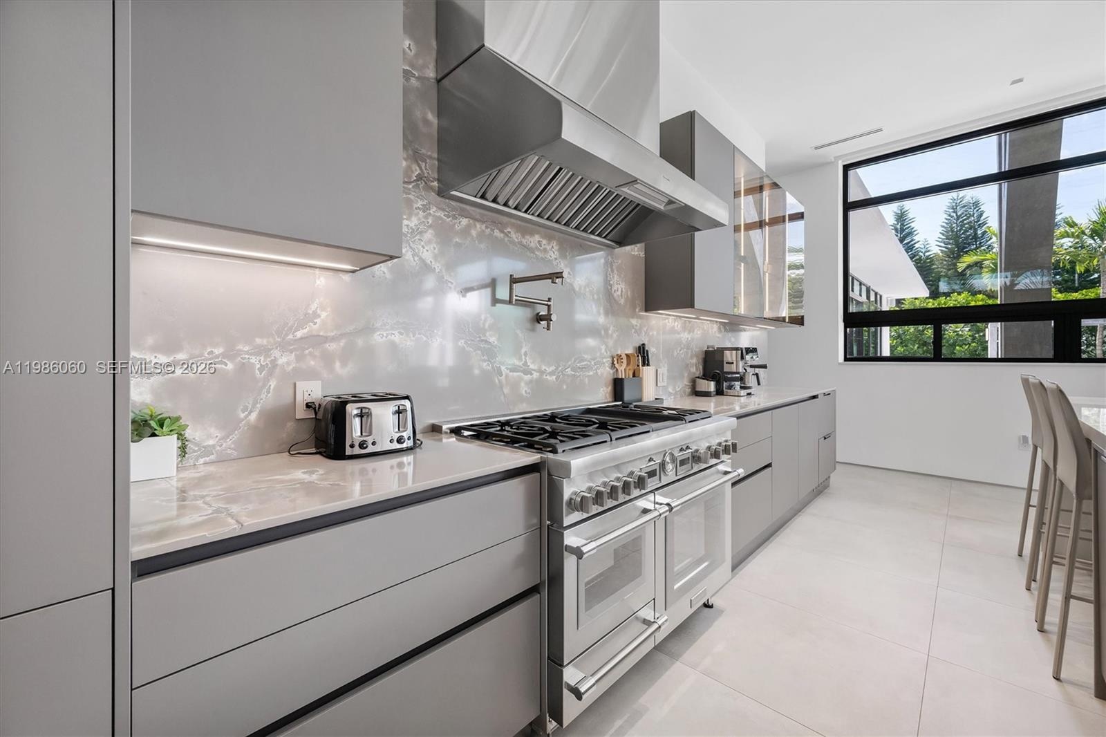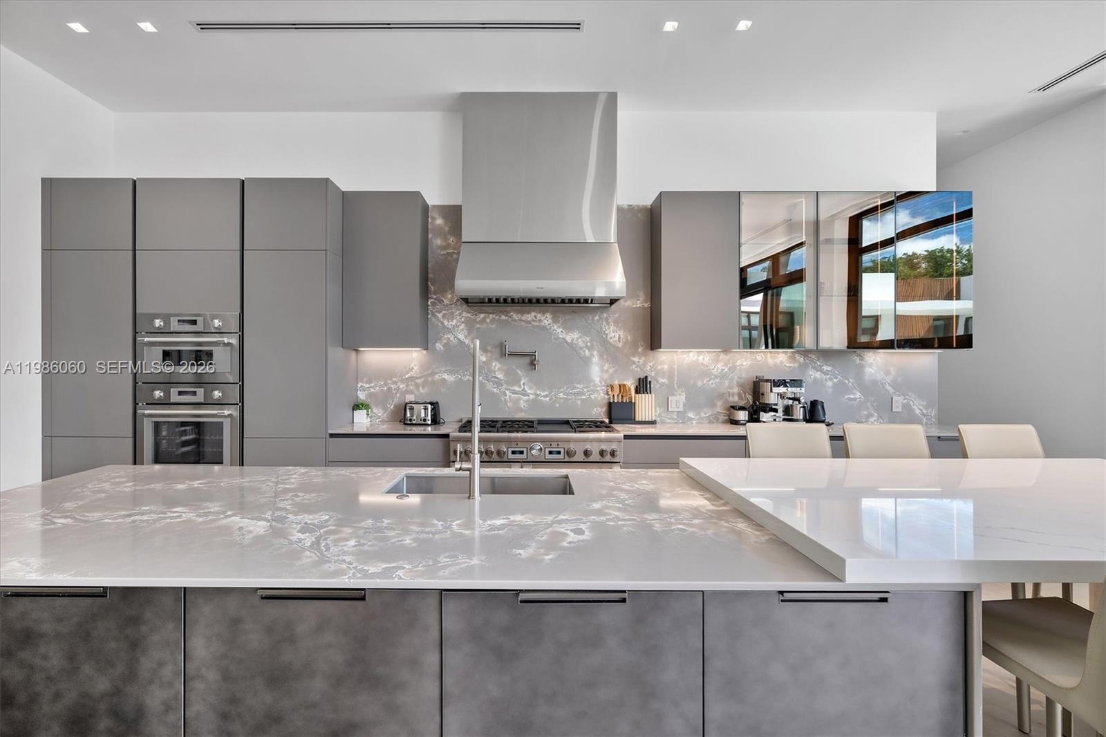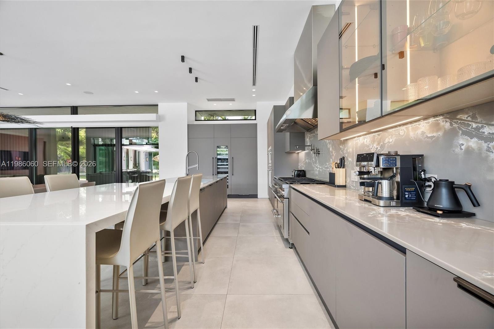 Villa Serene is a show-stopping corner lot estate where modern luxury meets coastal elegance, just steps from Biscayne Bay. Set on a 17,880 sq ft corner lot, this residence offers over 5,100 sq ft of refined living space with soaring 12-ft ceilings and imported Italian wood floors throughout. Designed for seamless indoor-outdoor living, every room opens to a resort-style saltwater pool, creating a private oasis ideal for both relaxation and entertaining. The chef’s kitchen features top-of-the-line Thermador appliances, a built-in hibachi grill, wine bar, and a pass-through to the outdoor kitchen. All bedrooms are en-suite, offering comfort and privacy. Smart home upgrades include Lutron lighting, whole-home water filtration, EV chargers, a 33kW generator, and advanced security. Additional highlights include double washers and dryers and expansive entertaining areas. Located in one of Miami Shores’ most desirable neighborhoods, Villa Serene is a rare turnkey opportunity and one of the area’s finest homes.