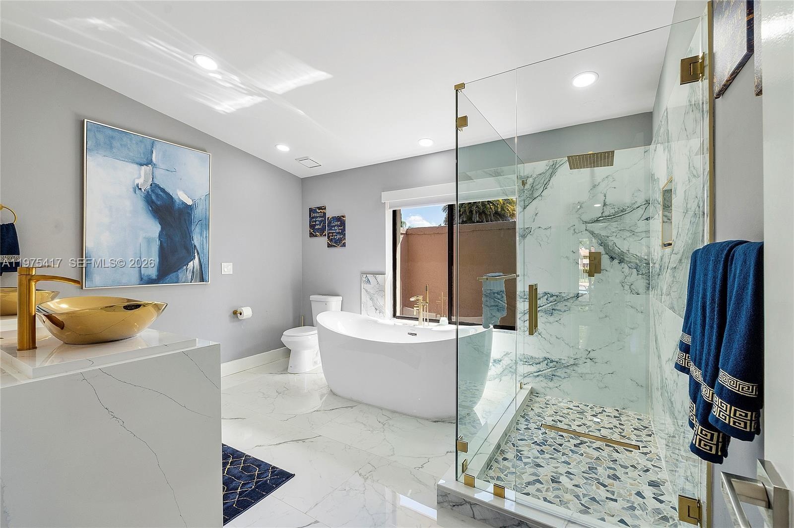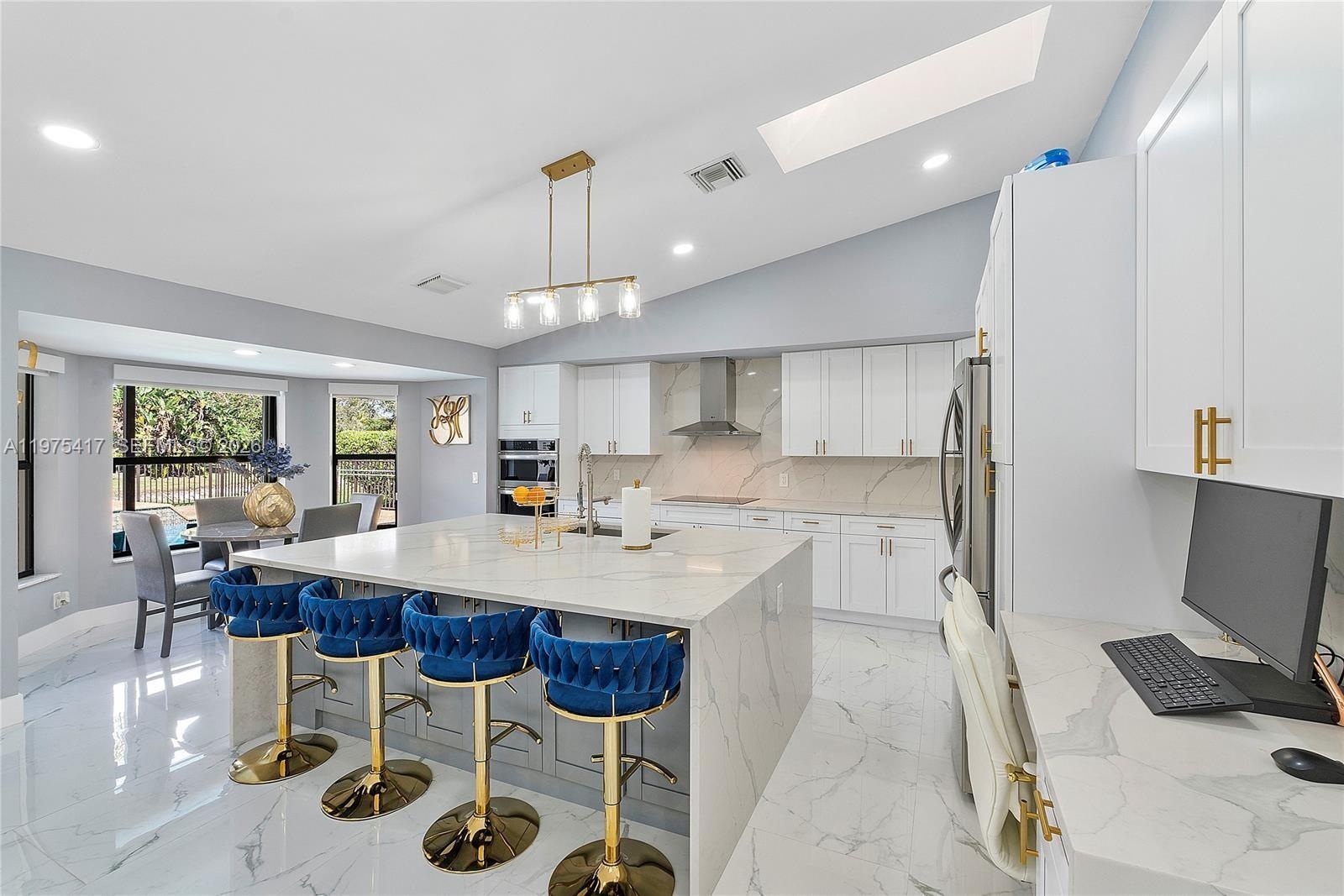 The impressive eat in kitchen is a true showpiece, featuring an oversized island with storage, abundant cabinetry, and top tier appliances, all overlooking the dining, living, and family areas perfect for entertaining and everyday living. The expansive primary suite offers a custom walk in closet and a spa style bath complete with an oversized shower and separate soaking tub. A private guest suite can easily serve as a second primary, featuring its own walk in closet and full bath.