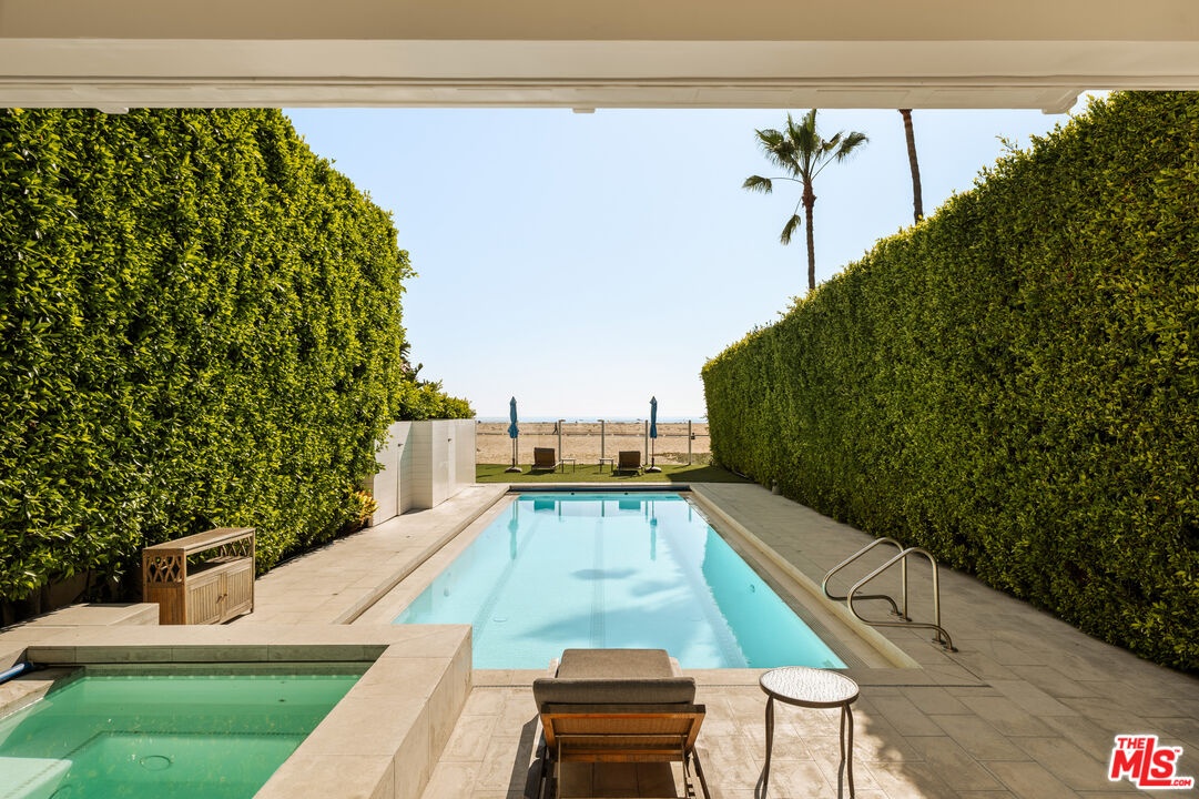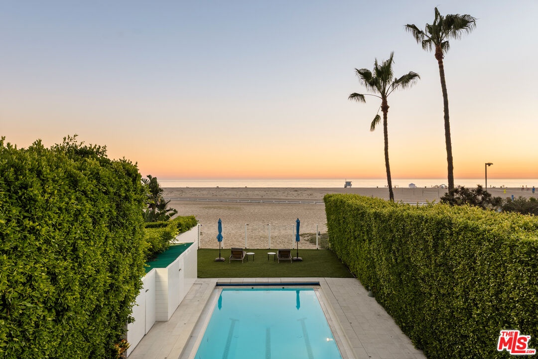 Set along one of the most coveted stretches of the California coastline, "La Petite Maison" at 501 Palisades Beach Road is a rare expression of refined coastal living in Santa Monica. Privately hedged and masterfully designed, this five-bedroom, four-bathroom residence blends timeless charm with elevated modern comfort. A long, sun-drenched approach reveals an exquisite outdoor setting anchored by a resort-style swimming pool and spa, evoking the serenity of a secluded retreat just moments from the ocean.Inside, the home unfolds with effortless elegance. A gourmet kitchen appointed with high-end finishes flows seamlessly into a charming breakfast nook, while a bar area sets the tone for sophisticated entertaining. Expansive living spaces are bathed in natural light, opening gracefully to the outdoor terraces and lush surroundings. Upstairs, tranquil bedroom suites offer a private sanctuary, with select rooms enjoying treetop and coastal ambiance. The detached guest house provides an ideal extension for visitors with its own kitchen enhancing both versatility and exclusivity. Manicured landscaping, towering greenery, and complete privacy frame the property, while four dedicated parking spaces ensure convenience in this premier beachfront location. "La Petite Maison" is a rare offering where understated luxury meets the effortless rhythm of seaside living, just steps from the sand yet worlds away from the ordinary.