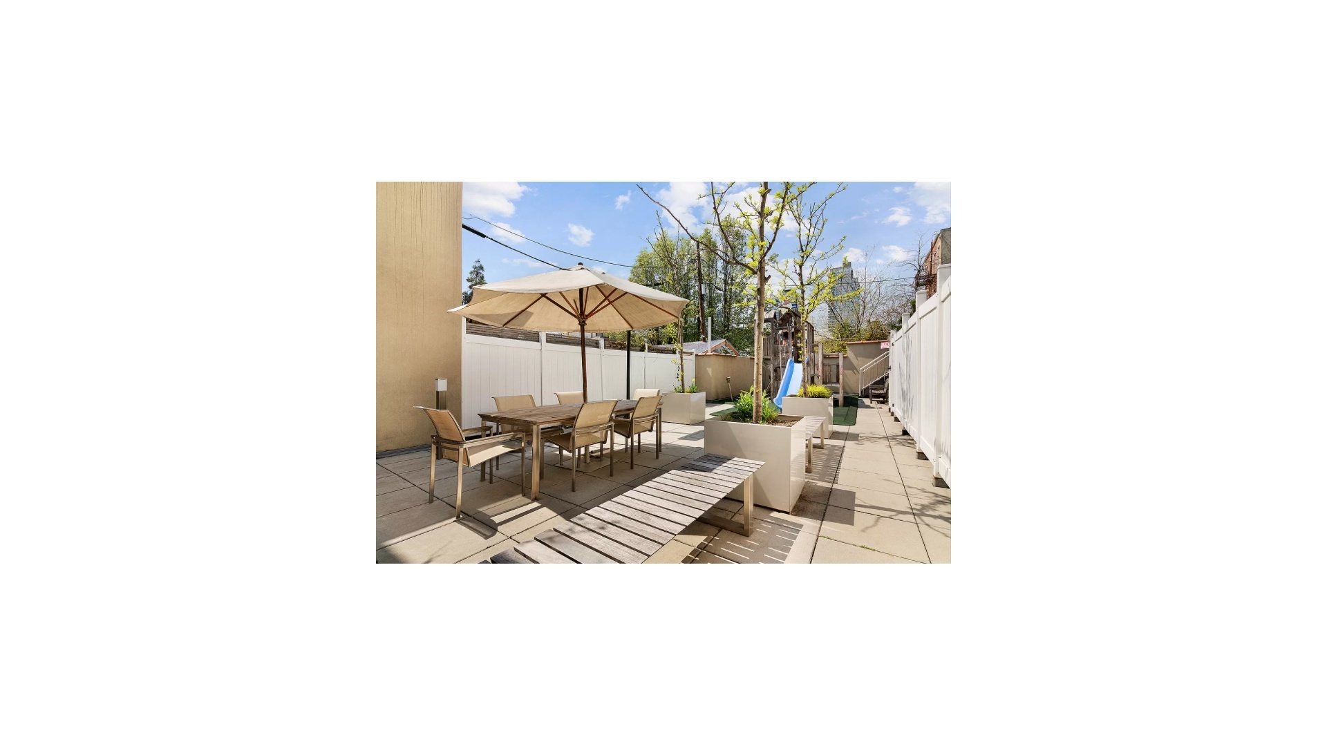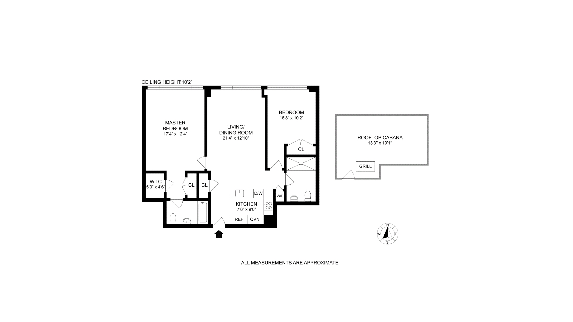 The standout feature is the private, living room sized roof cabana offering incredible views of the Manhattan skyline. It is your own oasis above the city.