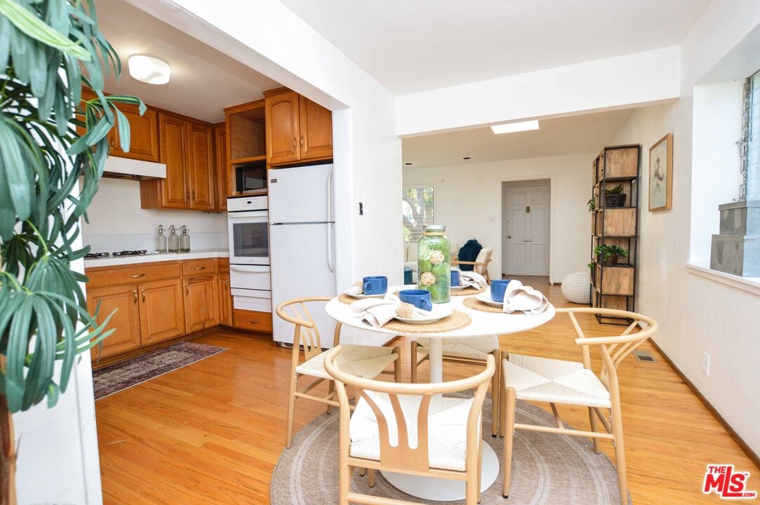 Excellent Westdale Village location on a quiet tree lined street. Beautiful 3 bedroom 2 bath, 1249 sf, home with hardwood floors and open floor plan with skylights. Bright and inviting great room, dining area open to kitchen overlooking the spacious elevated porch and the lush, 6100+ SF, backyard with mature trees. Outdoor stone grill, cute little shed/storage/ Hobbit house covered with Ivy! Move-in as is, or expand and build your dream home on the huge 6100+ flat lot. Excellent Westside location near Clover elementary and other great schools, Trader Joe's, with minutes to 405 and 10 freeways.