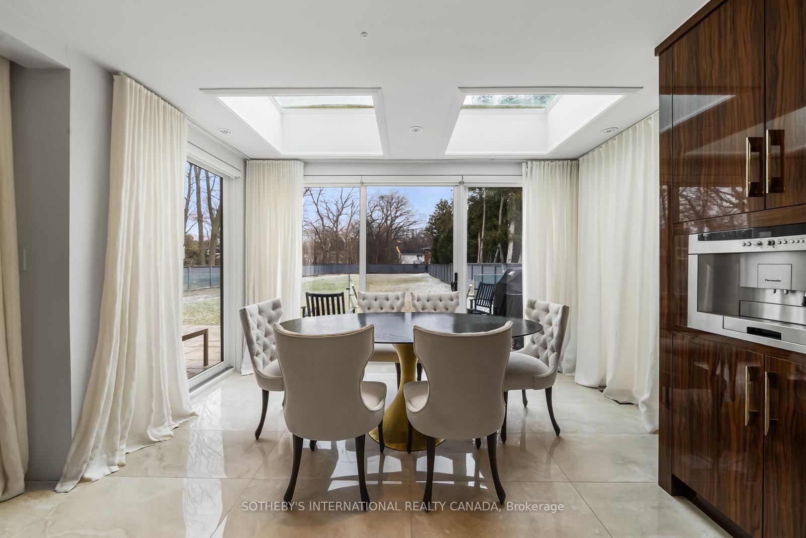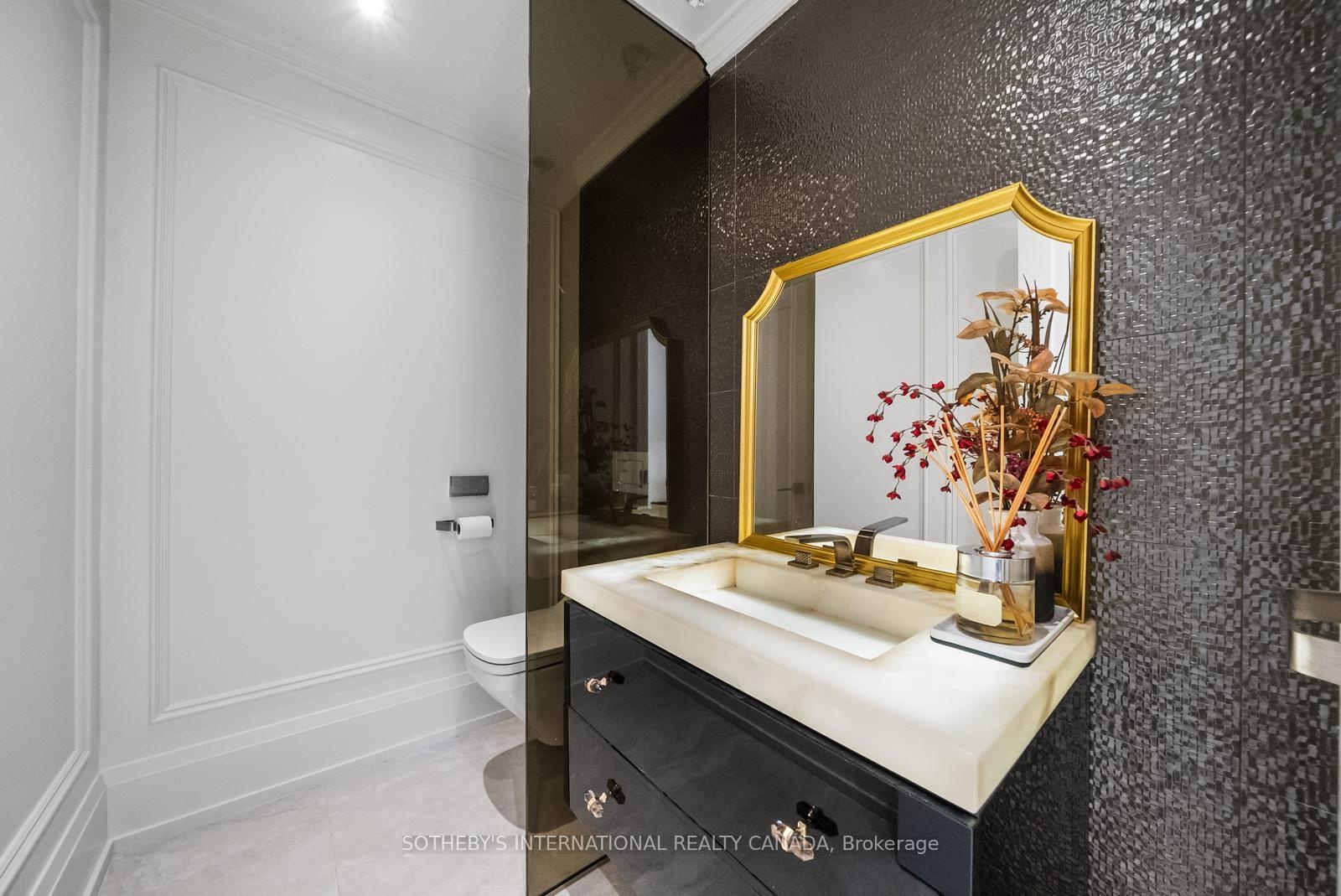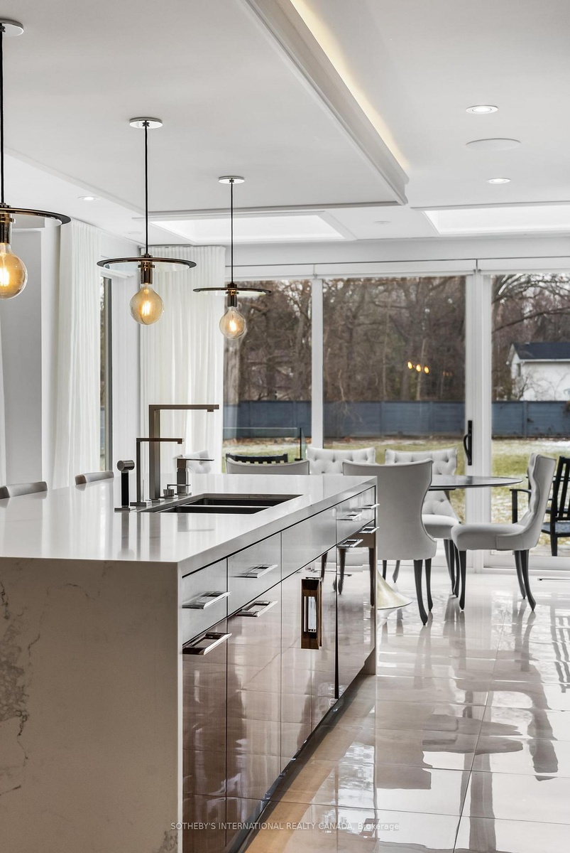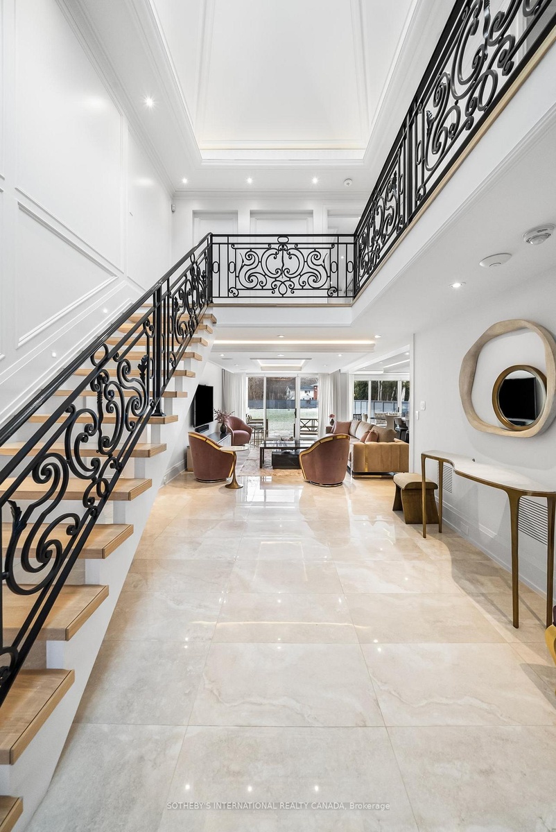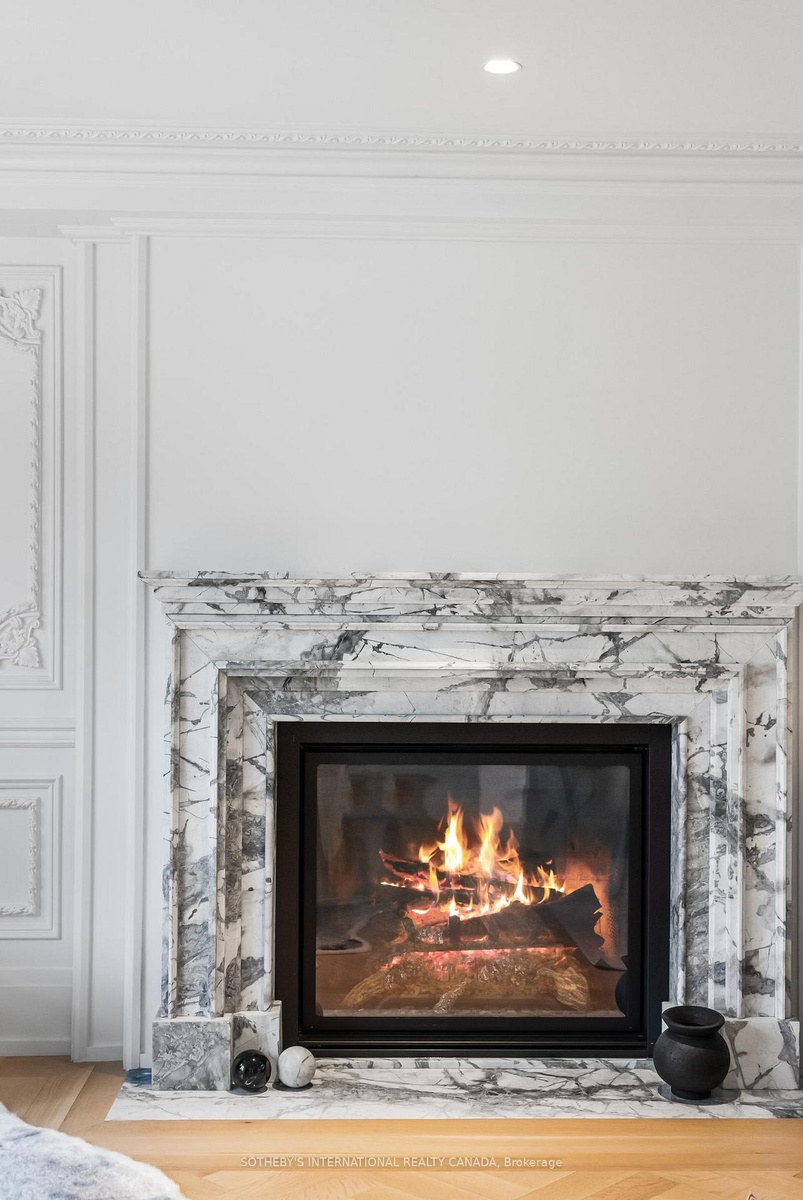 Welcome to this 'exceptional' home. A one-of-a-kind custom-build of the highest standard. The interior rooms are large, bright and spacious with the most 'exquisite' finishes throughout. Every detail to every aspect of every room has been meticulously designed creating an atmosphere of shear luxury and elegance. The large windows, skylights, open-concept, creative lighting and Smart Home System sets an atmosphere of living an upscale lifestyle. The stunning home sits on an expansive lot with a double garage, security gates, circular driveway and fountain as you enter the front yard on a heated stone entry. The private back yard has a heated stone patio and outdoor fireplace and is big enough to accommodate both a swimming pool and tennis court -a rare find! This beautiful home features 3-indoor and 2-outdoor gas fireplaces, gorgeous white oak flooring in the main rooms with heated porcelain floors on all 3 floors, hand-crafted, intricately designed molding are on ceilings and walls throughout; 2 skylights adorn the breakfast room as well as in the tower ceiling in the impressive center foyer. The gourmet kitchen is top of the line with built-in top-of-the line appliances. The primary bedroom hosts an anti-room that can be used as an office or private sitting room, gas fireplace, his-her walk-in closets, exquisite 5-piece ensuite and a walk-out to a private terrace with a fireplace and hot tub overlooking the backyard. There is a 2nd floor office/bedroom and 2 more bedrooms with ensuites. The lower level has a 5th bedroom with ensuite bath, a recreation and games room, fireplace, walk-in, temperature controlled wine closet with built-in cabinetry, a glassed-in exercise room big enough to hold a lot of work out equipment, heated porcelain flooring. There are 2 laundry rooms - one on the 2nd floor and one on the lower level. This home is for a buyer who appreciate exquisite design and looking for a luxurious and comfortable lifestyle. Don't miss it it's the best!