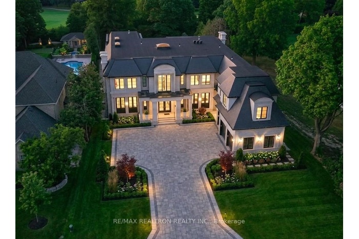 A triumph of architectural brilliance. Designed by award-winning designer Raphael Gomes, 41 Thornbank Rd. is an architectural gem on one of Thornhill's most coveted streets in Vaughan's most exclusive enclave. Surrounded by grand estates and mature trees, this brand new custom home sits on a spectacular 100 x 302 ft lot backing onto the best part of The Thornhill Club Golf Course, offering serene views and total privacy. Spanning about 16,200 sq.ft with 10,771 sq.ft above grade, including a partially finished 5,400+ sq.ft lower level, this state-of-the-art smart home is equipped with 400-amp service and Control4 automation. Features 5+2 bedrooms, 11 bathrooms (3 roughed-in L/L, 1 cabana), heated floors, and an elevator. The exterior pairs limestone with Belden Winter Mist brick for a timeless aesthetic. Inside, a 28-ft cathedral foyer introduces a grand main floor with 12-ft ceilings and 10-ft solid-core doors. The show-stopping family room boasts a 2-storey glass wall and 28-ft ceiling, flooding the space with natural light. Lutron automated blinds ensure effortless light and privacy control. The gourmet Miele kitchen with Dacor prep kitchen features an oversized island, wine fridges, and built-ins. The main floor includes 2 powder rooms and a grand office with separate entrances.The upper level offers 10-ft ceilings and 5 luxury bedrooms with ensuites and walk-ins. The primary suite features a 400 sq.ft 7-pc spa ensuite, 500 sq.ft custom closet with dual islands, and a private terrace. The lower level is roughed-in for 2 bedrooms, 3 bathrooms, theatre, spa, gym, rec room, and laundry. Landscaping, driveway, and permit-ready pool await your customization. An exceptional offering priced far below replacement value, presenting a rare chance to secure a signature estate at a level impossible to replicate today. Quotes from contractors available to supply front and rear landscaping upgrade with a pool and to complete the basement for in or around $1M.