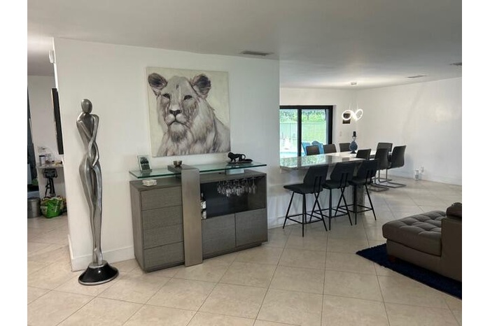 Come see this stunning, updated 4-bedroom, 3-bathroom corner-lot home in the heart of Davie. Designed with an open and inviting layout, this home seamlessly flows into a gorgeous patio and sparkling saltwater pool—perfect for relaxing or entertaining. Enjoy peaceful golf course views right from your backyard, creating a serene setting to unwind day or night. Whether you're hosting guests or enjoying a quiet evening, this home offers the ideal backdrop. Additional highlights include: Impact windows and doors for added safety and efficiency, spacious layout, private in-law suite with its own entrance and kitchenette—ideal for guests or extended family. This home truly feels like a vacation every day. Some furniture is negotiable. Available for move-in May 1st. Range/oven will be replaced prior to renting.