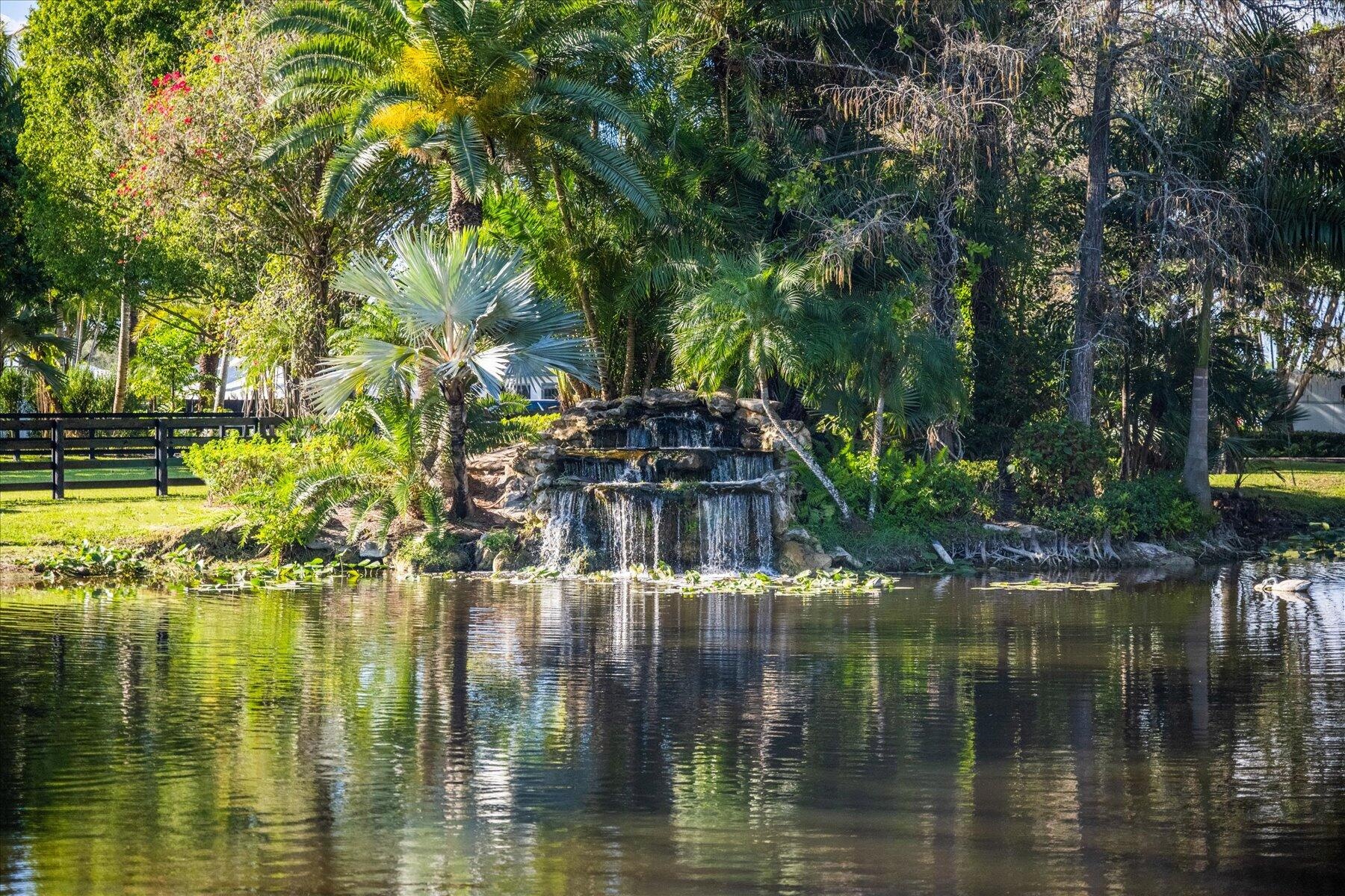 Stunning 21 acre Equestrian Compound located in the heart of Wellington close to all world class horse show and polo venues. Not to be rivaled this estate offers a 14 stall center aisle barn, large tack room, commercial laundry room, luxurious owners quarters with exceptional detail, a tennis pavilion, 6 acre irrigated Bermuda grass jump field and a new 180' X 300' riding arena adjacent to the jump field. There are guest and meeting cottages that open to a grand patio with pergolas over looking the private pond and waterfall. Truly a ''Must See'' property for the serious equestrian.