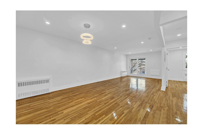 Don't miss this beautifully gut-renovated, extremely spacious, 3-bedroom, 1.5 bath apartment in Canarsie! Enjoy gleaming refinished hardwood floors that flow throughout the entire apartment. There are large windows in every room that let in an abundance of natural sunlight. The expansive living room is anchored by recessed lighting, a stunning double-ring crystal chandelier, and sliding glass doors that open directly onto your private balcony.