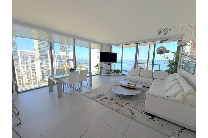 FURNISHED CORNER UNIT AVAILABLE NOW. FLOWTHROUGH APT HAS 3 BEDROOMS, 2 BATHROOMS, TWO BOLCONNIES. PRIVATE ELEVATOR AND PRIVATE FOYER. THIS UNIT HAS 1 PARKING SPACE. THE 3rd BEDROOM IS OFFICE. CORNER UNIT HAS BEAUTIFUL BISCAYNE BAY VIEWS AND GORGEOUS CITY & SUNSET VIEWS AS WELL. ICON BAY IS SITUATED IN THE CENTER OF MIAMI, MINUTES AWAY FROM DOWNTOWN WHICH IS CULTURE, ART AND ENTERTAINMENT CENTER, DESIGN DISTRICT, MIDTOWN, WYNWOOD. BUILDING HAS STATE OF THE ART FITNESS CENTER, SPA, CLUB ROOM, THEATRE ROOM, PARTY ROOM, PROJECTION ROOM, HEAATED POOL, BAYFRONT PARK WITH LUSH LANDSCAPE. UNIT IS FURNITURED WITH ALL GLASS DOORS, AVAILABLE FOR SHORT TERM 6 MONTHS.