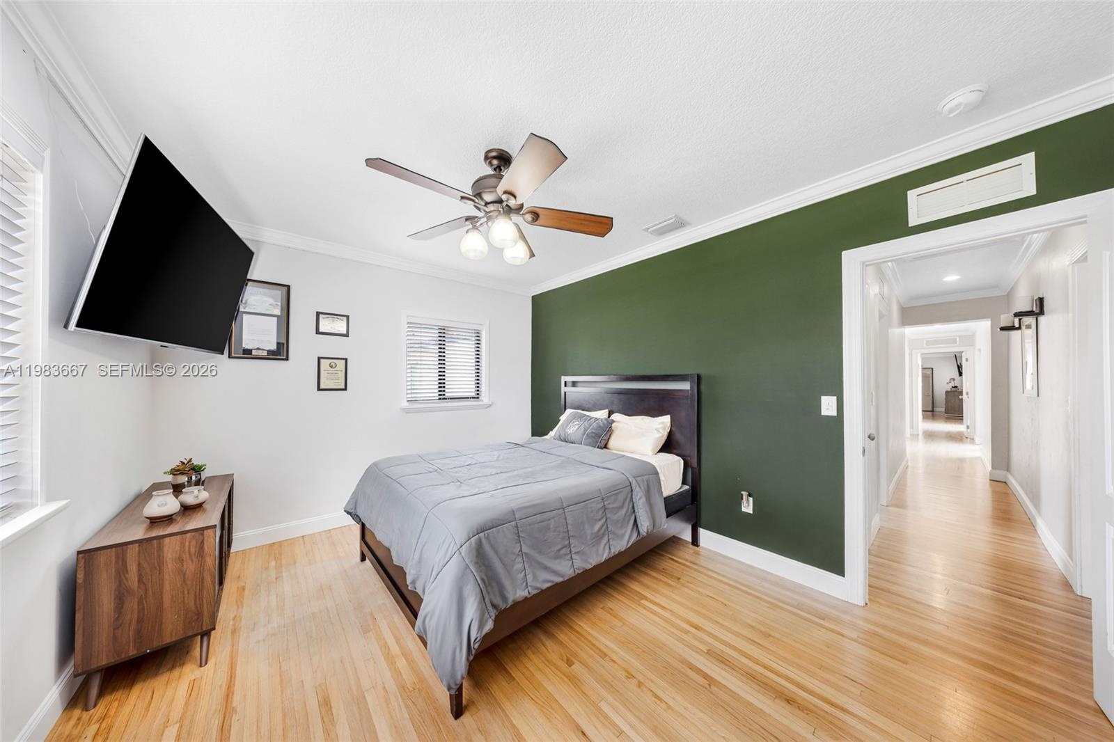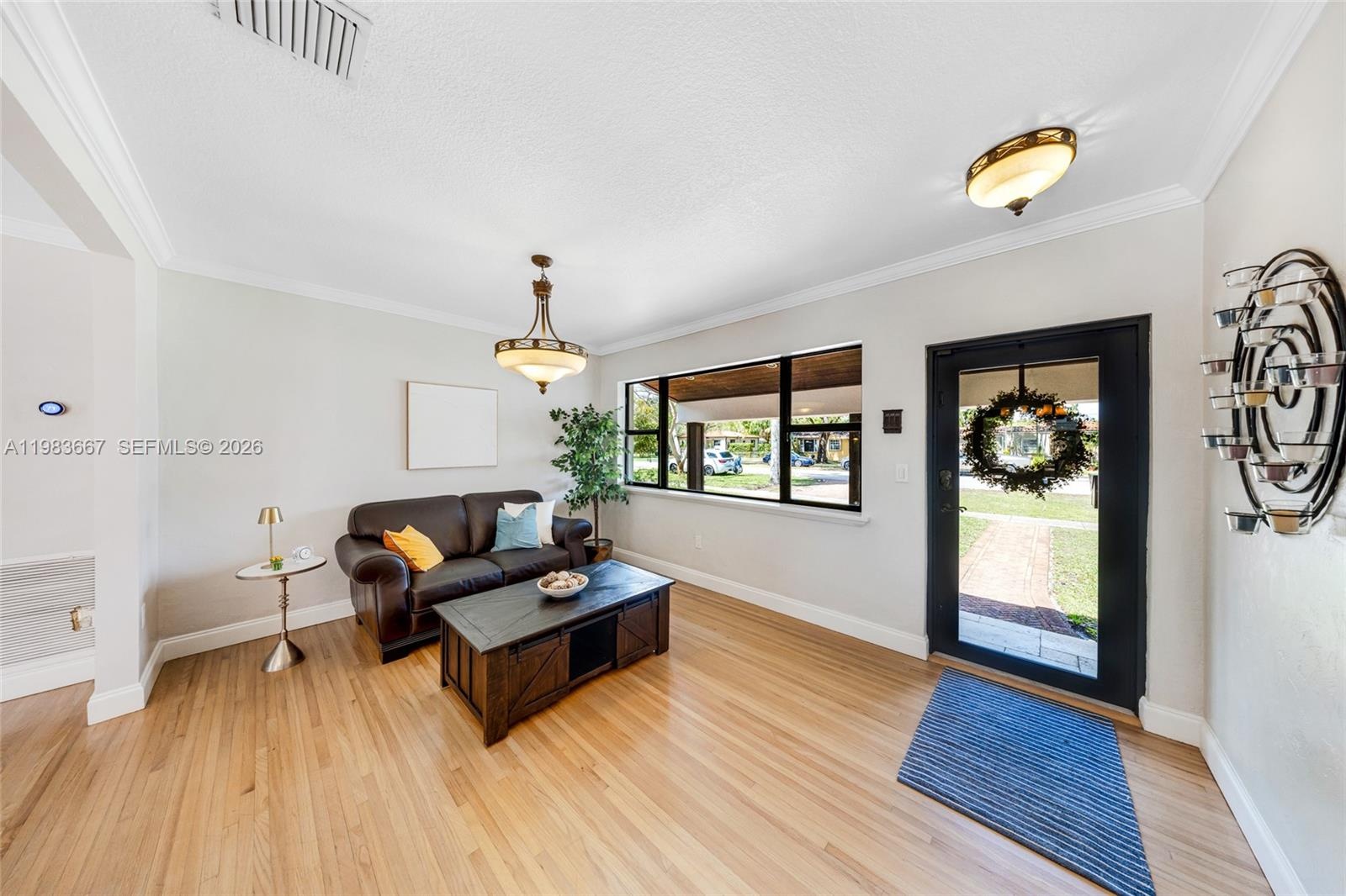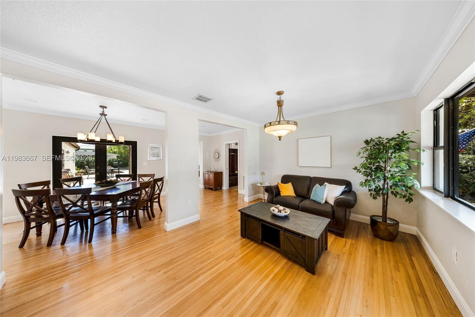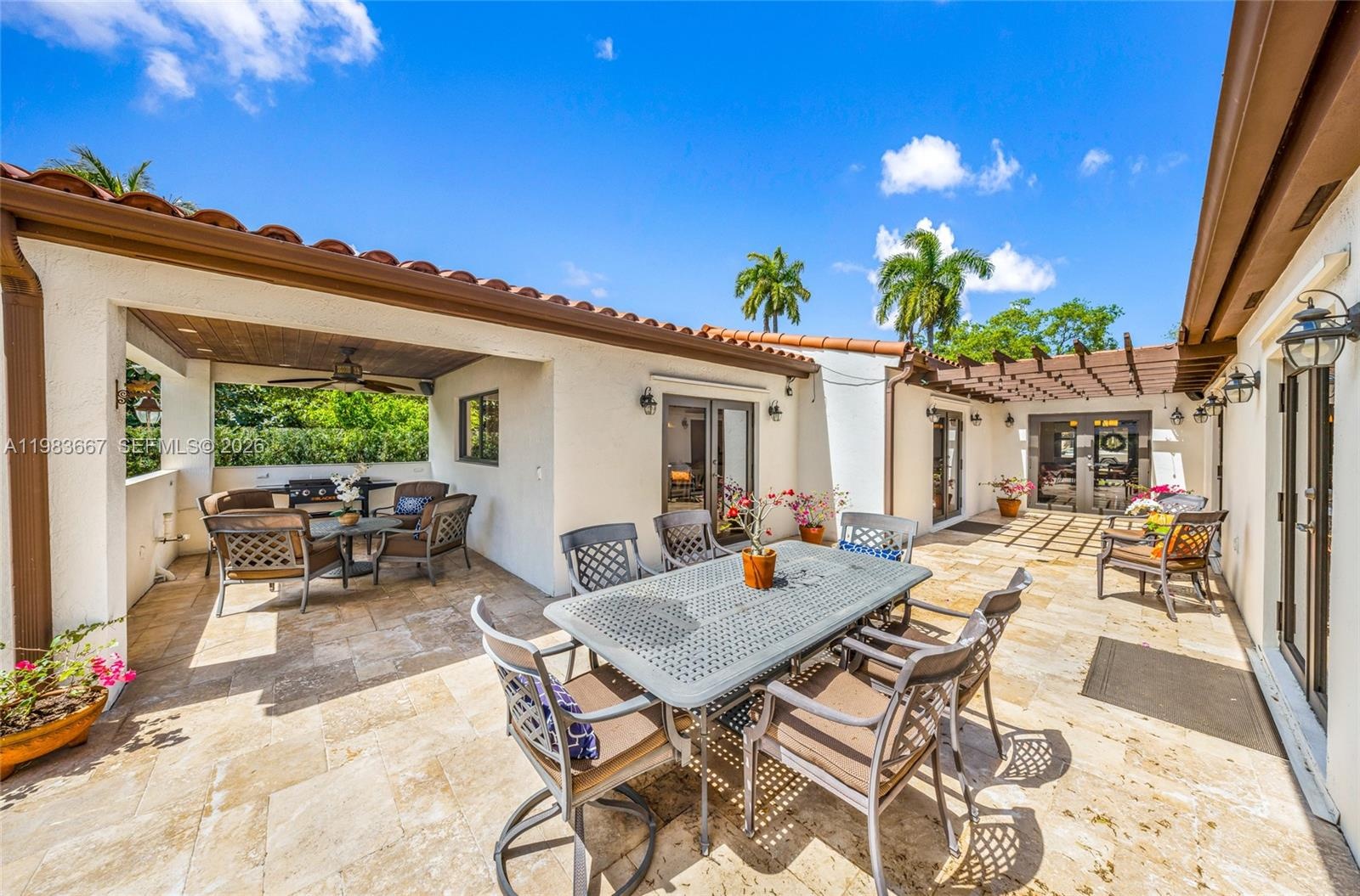 Step into this stunning Mediterranean home in the heart of Miami Springs! Boasting 4 bedrooms plus an office and 3 bathrooms across 2,832 sq. ft., this residence features original hardwood floors, a custom kitchen with walk-in pantry and wine cooler, and impact windows throughout. Enjoy the elegance of a courtyard, outdoor kitchen hookup, irrigation system, and ample garage storage. Modern comforts include 2 HVAC units, updated electrical and plumbing, and a durable tile roof. Ideally located within walking distance to parks and close to top schools—this home blends luxury, functionality, and family-friendly convenience.
