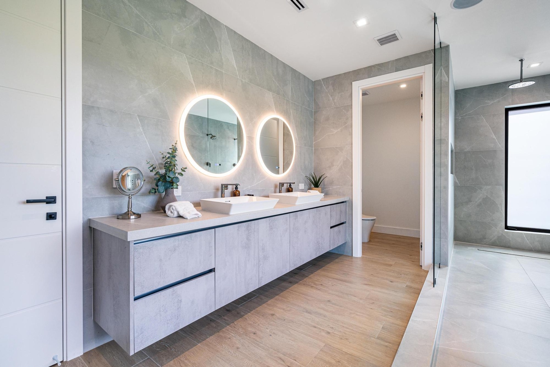 Victoria Park stunner on one of the neighborhood's most coveted streets. This privately gated, custom-built 4BD/4.5BA residence offers 3,700+ sq ft under air and is truly turnkey. Inside: JennAir kitchen, butler's pantry, impact windows, and automatic shades, plus a spa-style primary suite with soaking tub and oversized shower. Outside: lush, tropical landscaping frames an infinity-edge saltwater pool and heated spa with waterfall, outdoor kitchen, and multiple spaces to dine and lounge. A rare, fully gated home with front yard under a mature tree canopy creates a shaded, tranquil retreat with exceptional privacy. Smart home with control of lighting, security, and A/C, plus cameras. Highest flood elevation in area. Showings by appointment only.