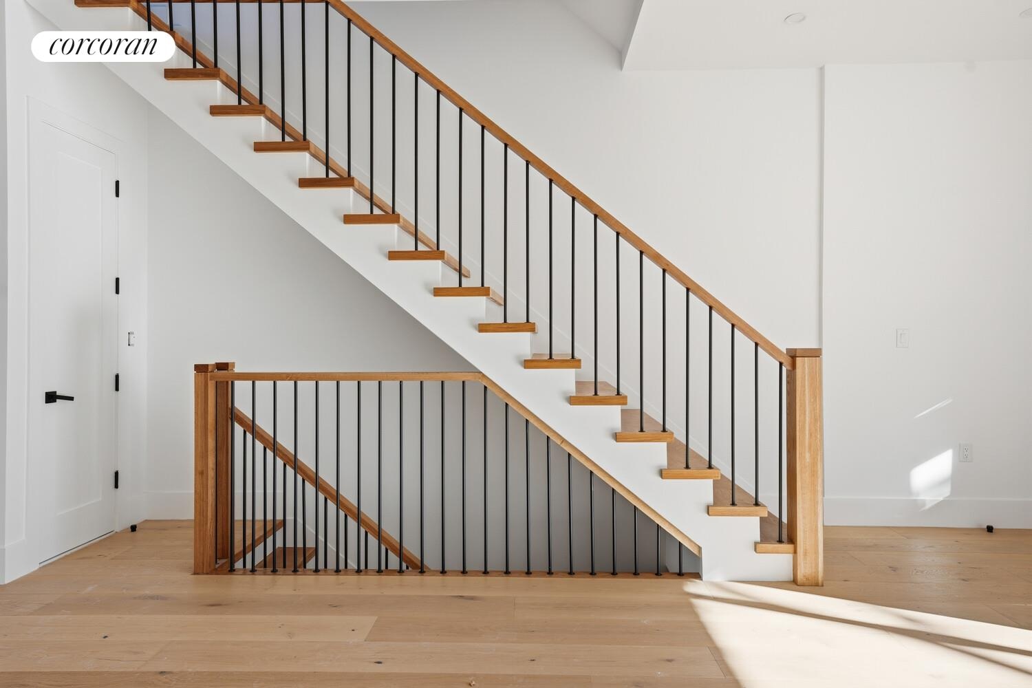 The primary residence offers large living , dining and entertain areas, high ceilings and four generously sized bedrooms, each with its own en-suite bath-ideal for privacy, comfort, and everyday ease. The primary suite is a true sanctuary with a walk-in closet, a spa-level two-person shower, floating soaking tub, double vanity, and a state-of-the-art smart toilet. Throughout the home, wide 9.5-inch hardwood floors, a striking new white oak staircase with black metal spindles, oversized windows, and a new skylight create an airy, light-filled experience. All bathrooms are finished with elegant floor-to-ceiling tile and feature three tubs and Delta showers throughout.