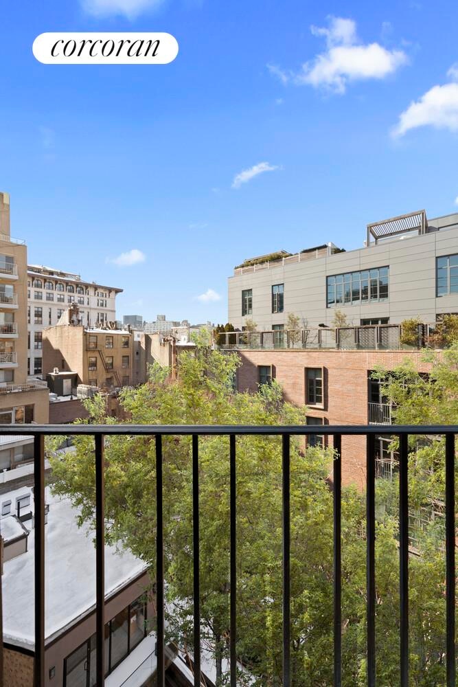 The moment you enter, the sunken living room draws you in - a thoughtful architectural detail that creates distinct zones without walls, giving this home an unexpectedly spacious feel. Rich hardwood floors flow throughout, while high ceilings amplify the airiness. The living room is your retreat - perfect for unwinding or simply enjoying the natural light that pours through the windows. Open the door to your private balcony and take in the amazing open views - a coveted outdoor escape in the heart of the Village. Whether it's your morning ritual or evening wind-down spot, this perch is yours to enjoy.