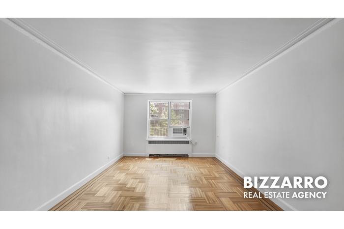 This charming unit with its giant bedroom also has a large foyer, a sun-drenched living room, a formal dining room, and lovely vintage detailing throughout. Located near Fort Tryon Park, the landmark building offers lots of amenities and a wonderful location close to the Hudson River, shops and restaurants.
