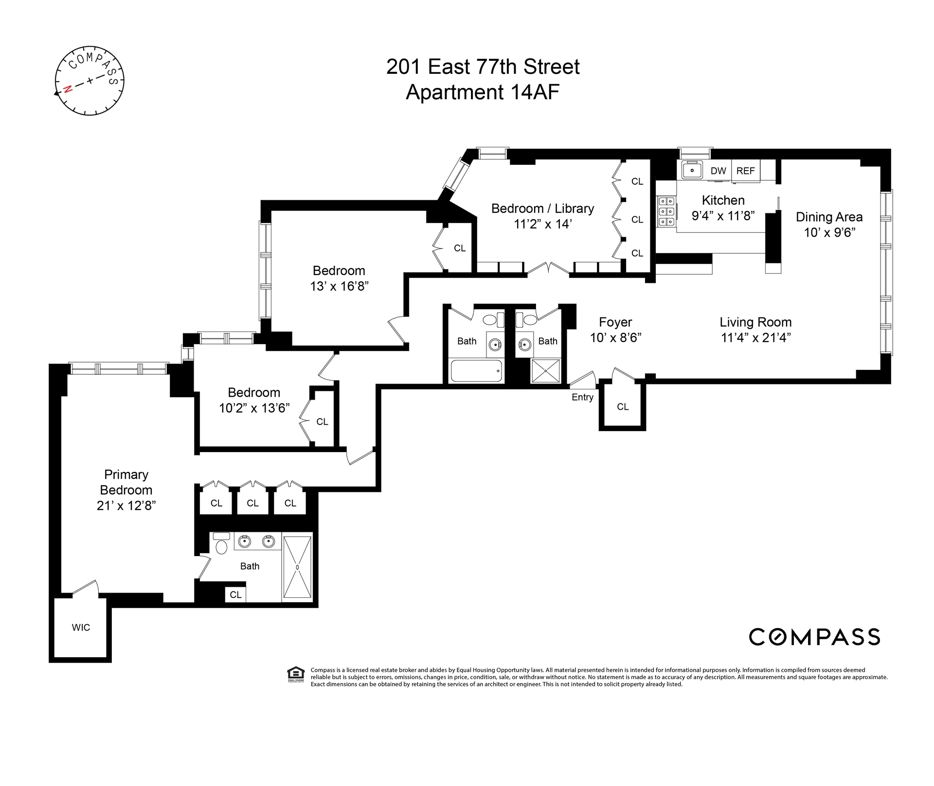 The south-facing living room and dining room are full of light and feature oak wood floors, elegant built-ins and an open flow perfect for entertaining. The windowed kitchen includes top of the line appliances, marble countertops, and a breakfast bar. The generously scaled primary bedroom offers four closets including one walk-in and a luxurious marble ensuite bathroom. The additional three bedrooms all have ample closet space and one, which currently serves as a library, features built-in book shelves and cabinets ideal for working from home.