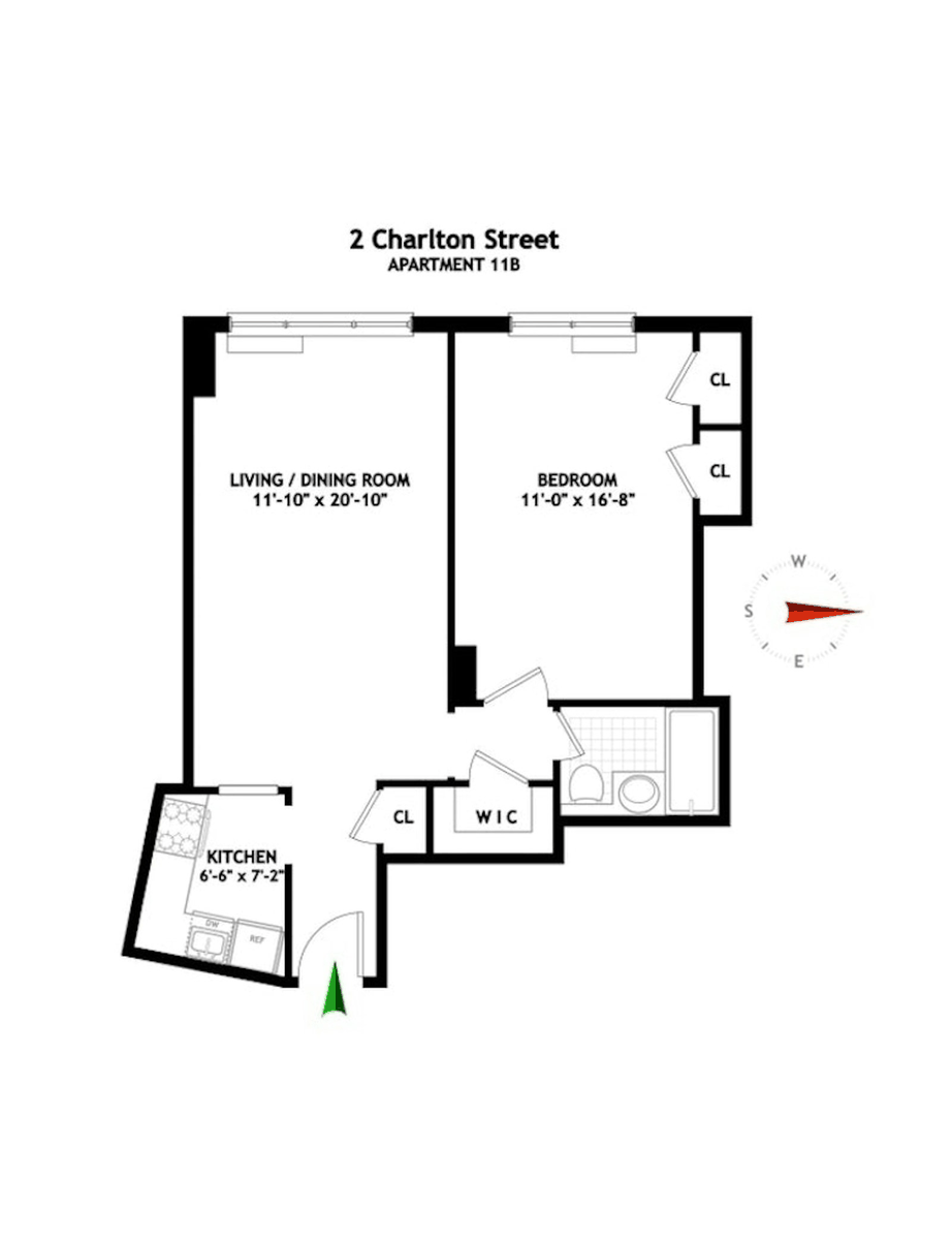This is the best deal currently on in the building. 11B benefits from being on a high, quiet floor with open sky views west and also a peek at townhouse gardens below. It's an unusually flexible unit, where the possibilities can go as far as your imagination! While in need of some TLC (note staged photos) the canvas is primed and waiting. 11B has many closets, hardwood floors in good shape, large windows, a real entrance foyer (with a LARGE closet) The apartment overlooks historic townhouse gardens on both Charlton and Van Dam and the continually evolving tech corridor on Varick Street is a second away - not to mention the Holland Tunnel and 2 subway lines (the 1 and the C/E) within two blocks of the building in different directions. The open corner kitchen allows for you to talk to guests while you're preparing a meal; washer/dryers are permitted with board approval of installation plans.