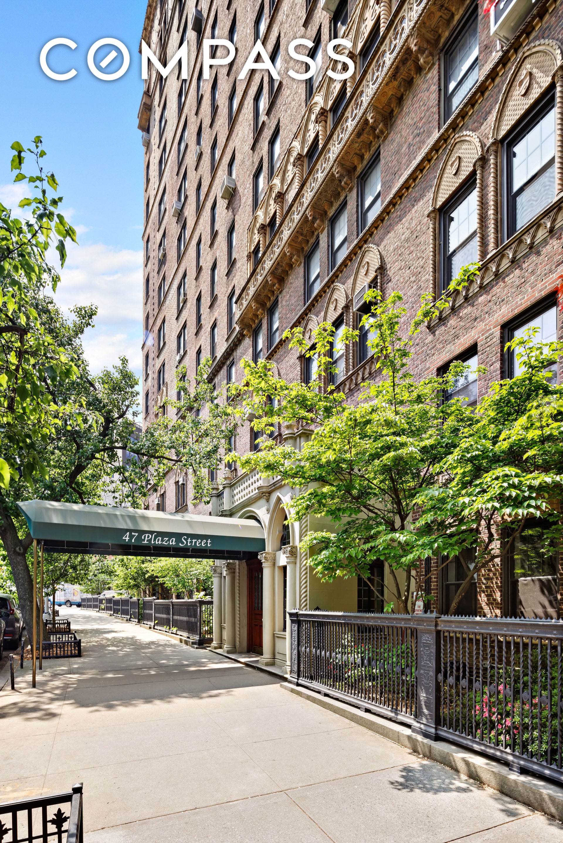 Designed by Rosario Candela in 1927, 47 Plaza Street West is a landmarked Medieval Revival cooperative with 24-hour doorman and elevator service, resident manager, stained-glass lobby, bike room, and doorstep mail & newspaper delivery. Perfectly positioned at the entrance to Prospect Park and Grand Army Plaza, with the Brooklyn Museum, Library, Botanic Garden, year-round greenmarket, and top dining all nearby. Easy access to 2/3, B, and Q trains, bus service, and CitiBike.