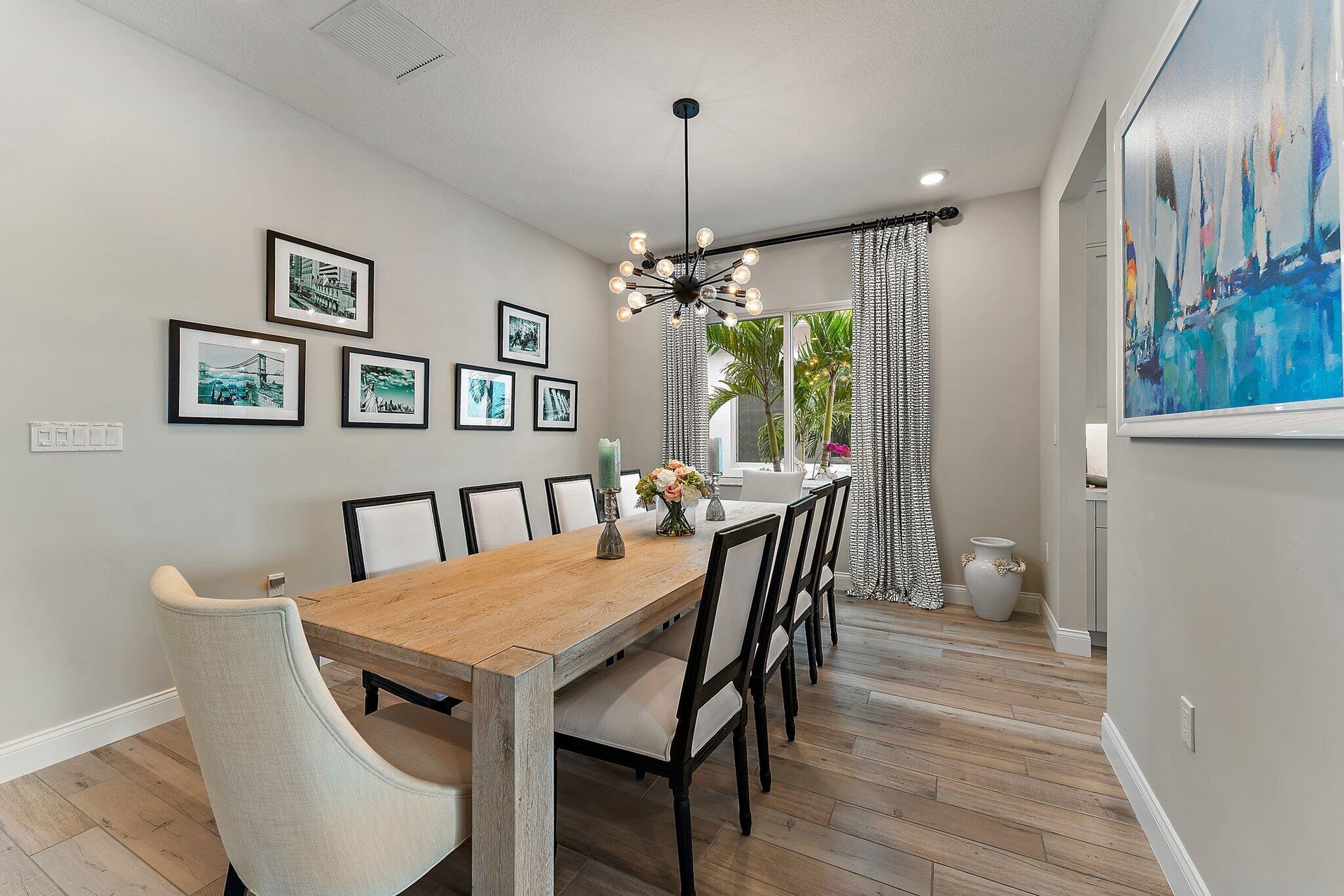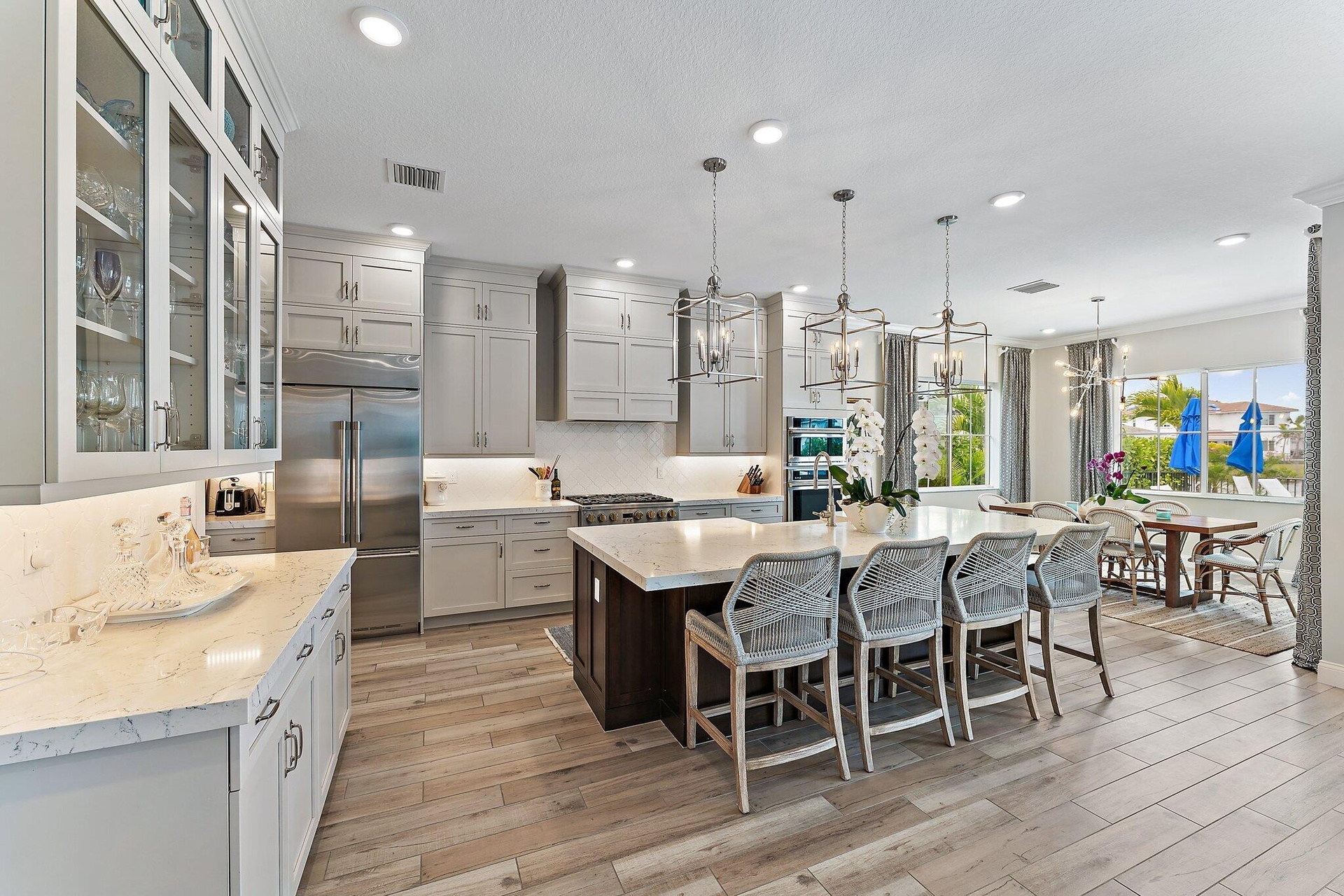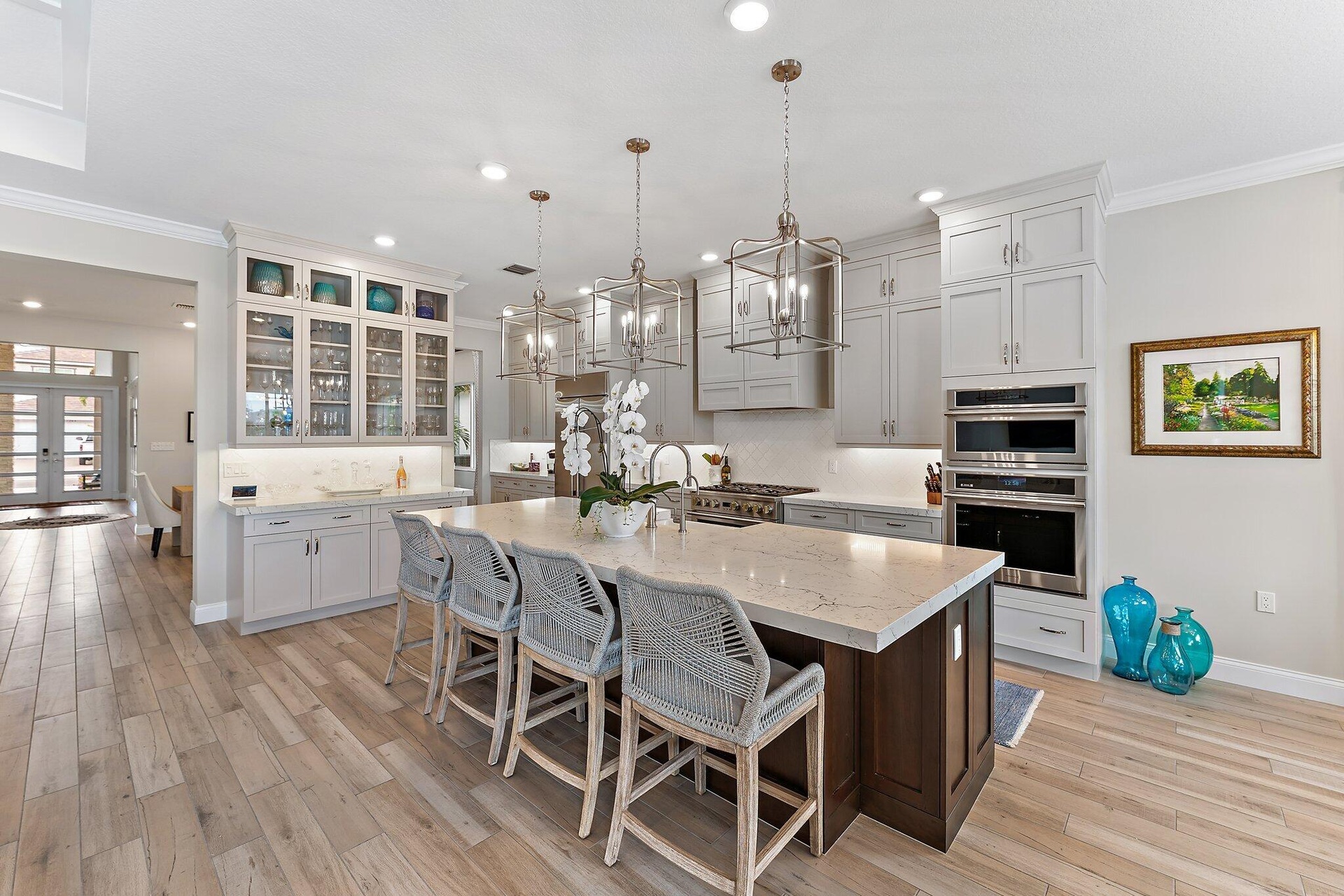 Enjoy stunning wide lake views from the back yard of this professionally decorated home built by K. Hovnanian Homes in 2023. Avenir is conveniently located near Sand Hill Crane Golf Club, an 18-hole championship course, PBIA, shopping and fine dining. Community amenities include resort-style pools, spa, pickleball, tennis, two fitness rooms, indoor/outdoor lounge, outdoor game area, playground, community club house, and much more.