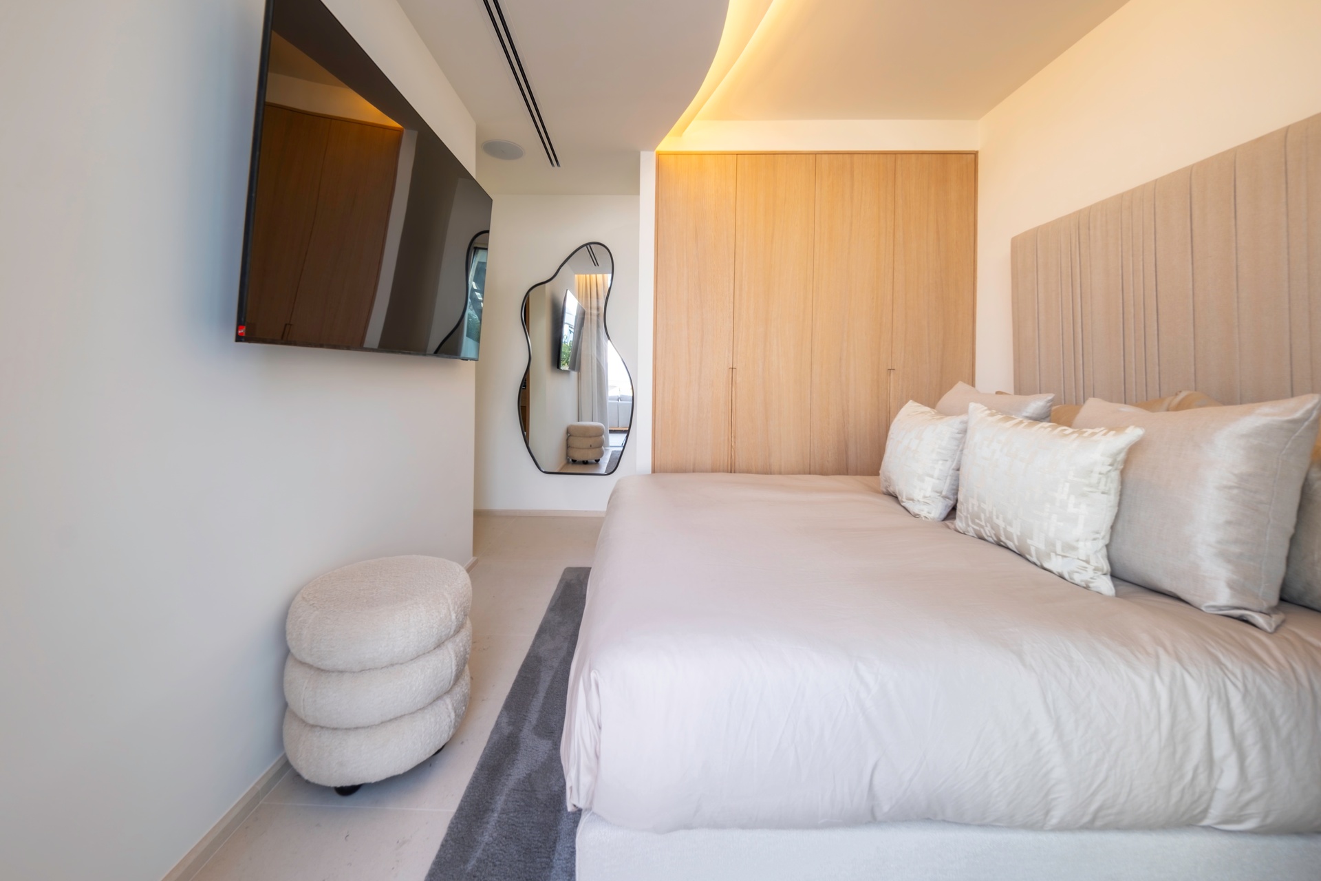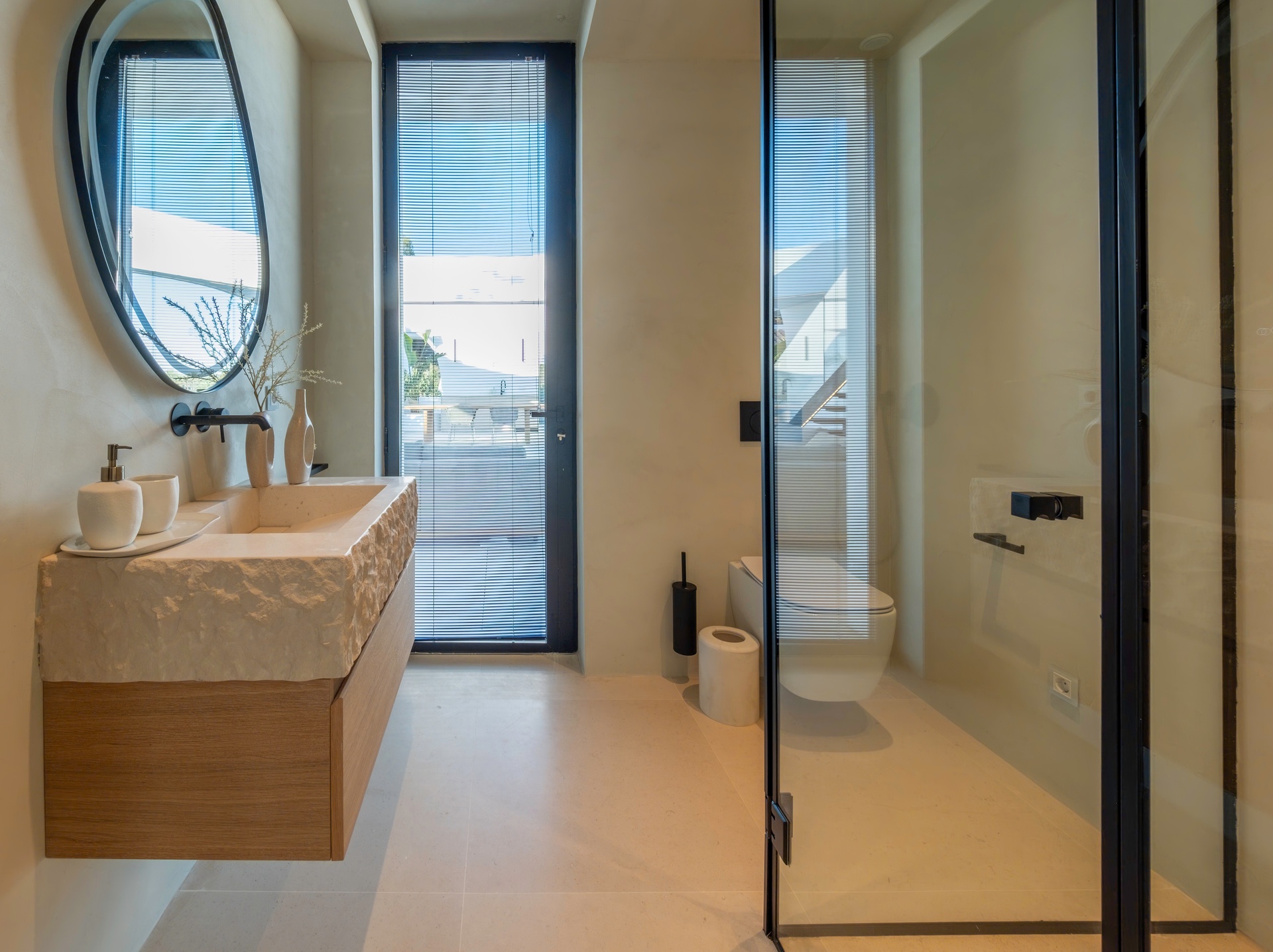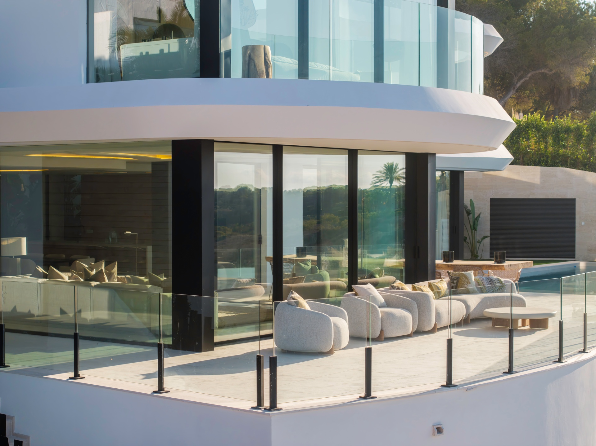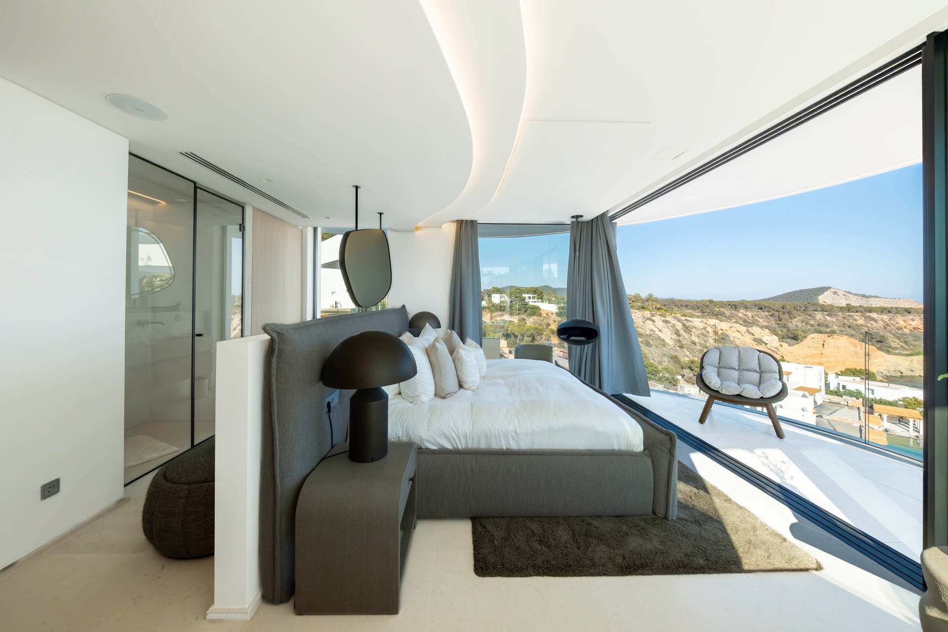 Expansive terraces, multiple chill-out areas, and a private pool create an ideal setting for enjoying Ibiza’s lifestyle. A rooftop terrace with jacuzzi provides a spectacular space for sunset views and social gatherings.