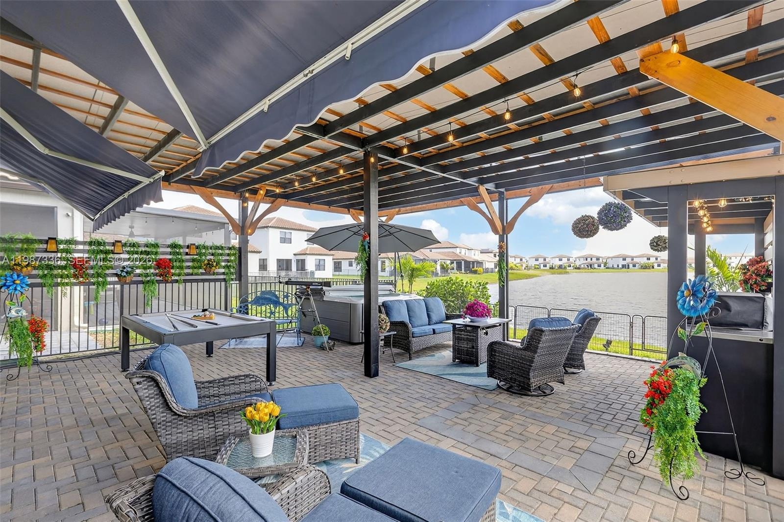 Step outside to a charming, fully screened patio where you can unwind in your private 6-seat spa, complete with 40 powerful massage jets overlooking the water—your own personal retreat.