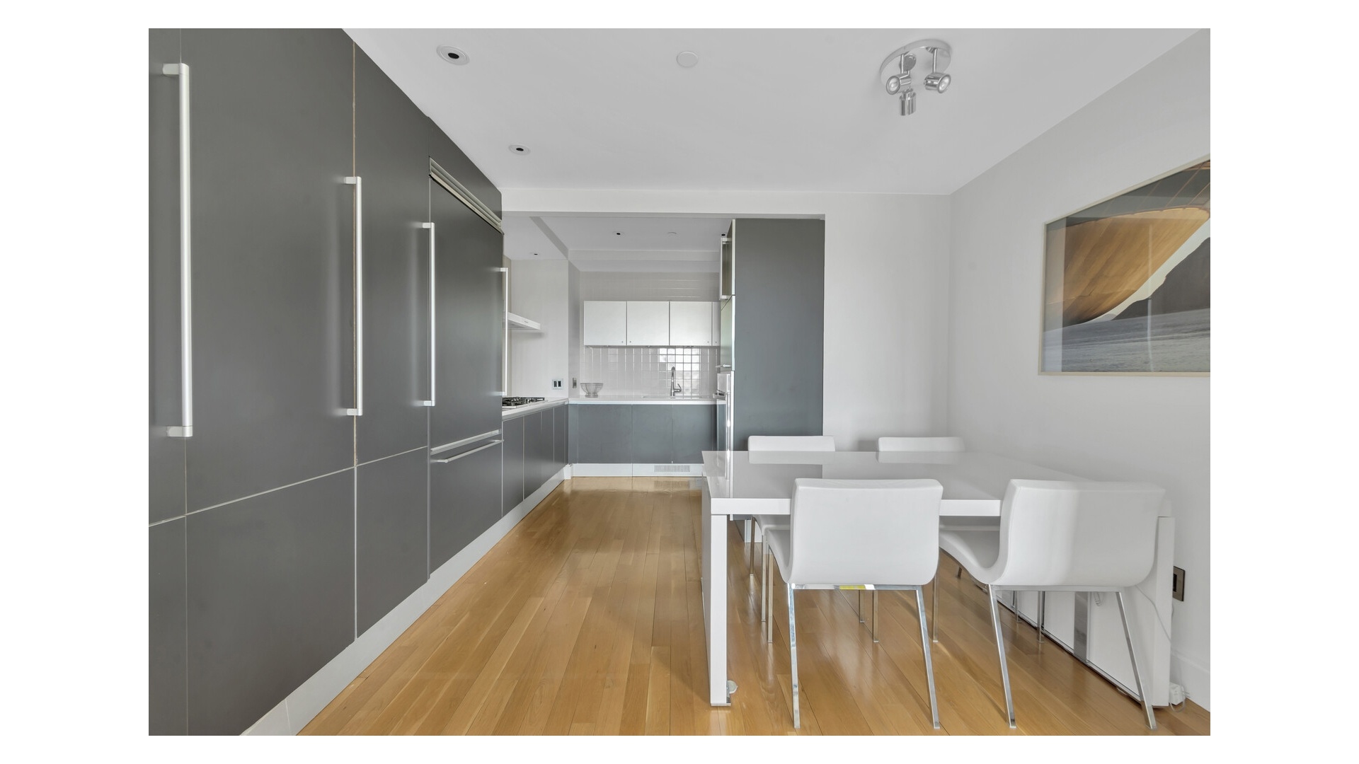The Poggenpohl chef's kitchen is equipped with top-of-the-line Miele appliances, Sub-Zero refrigeration, a breakfast area, pantry, and refined custom cabinetry. Wide-plank oak floors, bespoke lighting, and hand-crafted built-ins elevate both comfort and sophistication.