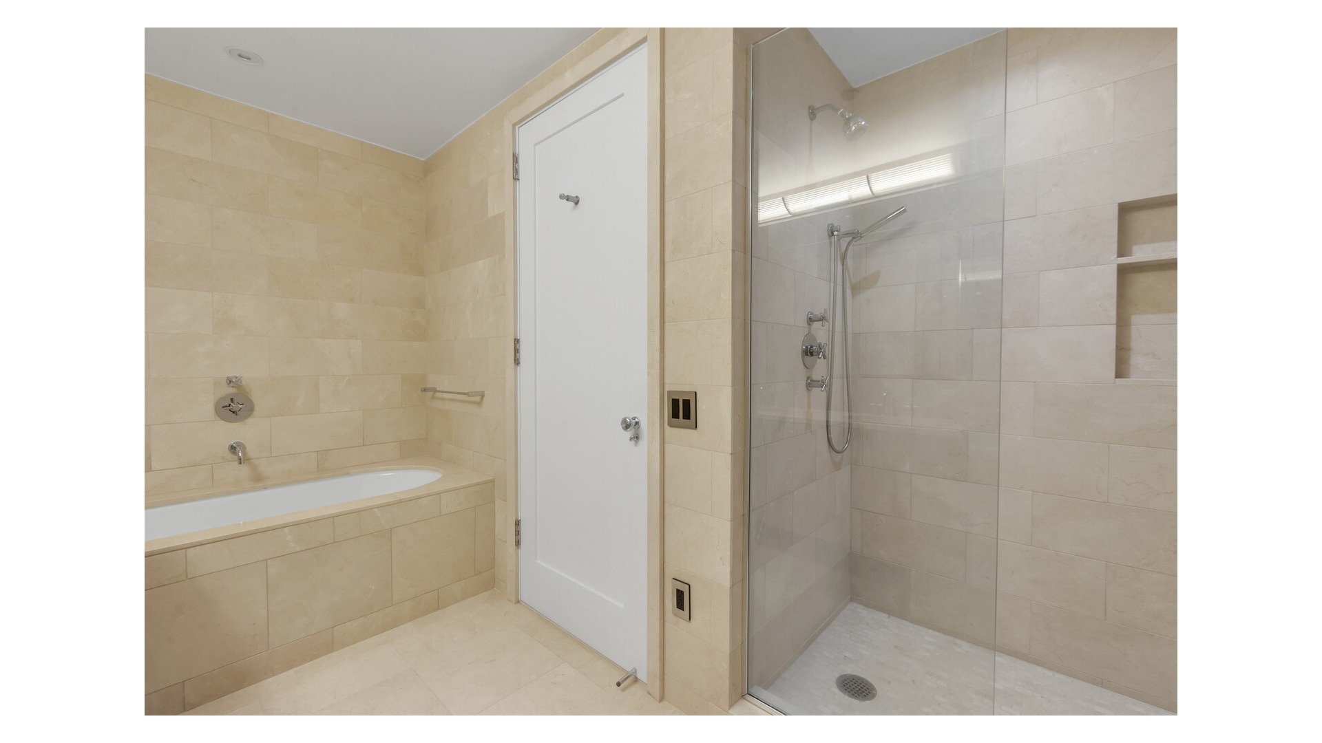The primary suite is a serene retreat with oversized windows, a custom walk-in closet, and a spa-inspired marble bath featuring a five-fixture layout, soaking tub, and glass-enclosed shower.