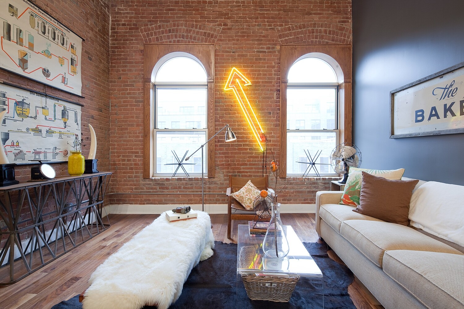 This authentic Factory Loft Conversion features 17 foot soaring ceiling height, a full wall of exposed brick and so much more.