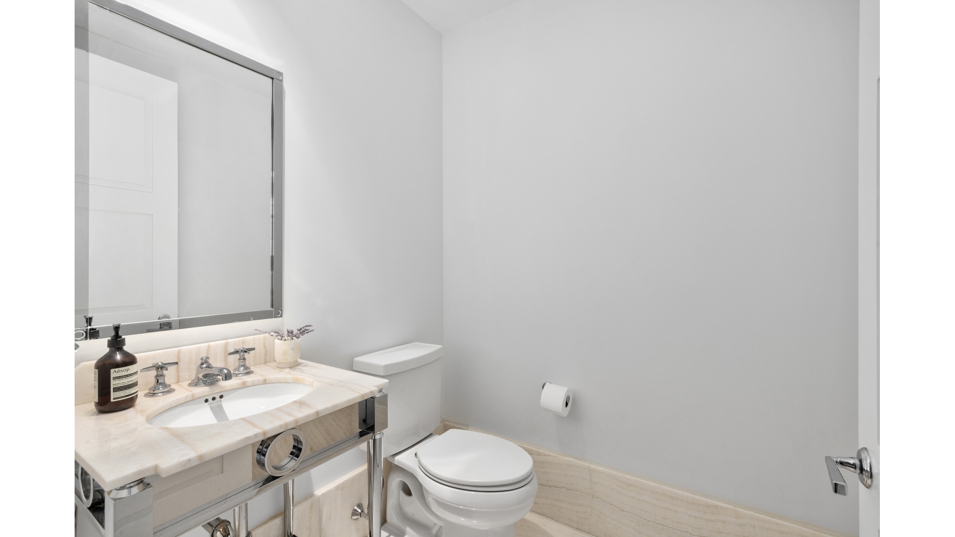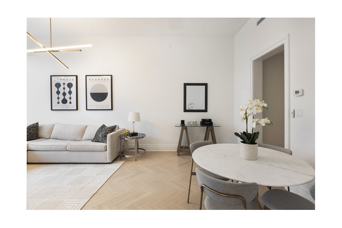 Complete with a powder room for guests and a laundry closet, this is the perfect pied-a-terre or primary residence that indulges with the best amenities and services anywhere. Custom interiors by Robert A.M. Stern, including: white oak Bilotta custom-designed kitchen cabinetry featuring Gaggenau appliances throughout and polished marble counter tops; five-fixture primary bathrooms with marble slab floors and countertops, Kallista fittings & accessories and radiant heat flooring; ceiling hung four-pipe fan coil heating and A/C system with dedicated zones; pre-wiring for home technology; and solid white oak floors in natural matte finish with herringbone pattern in select formal rooms.