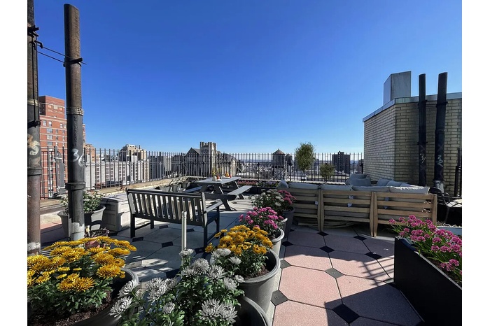 This corner one-bedroom apartment sits at the top of a classic, full service Upper West Side prewar coop building and offers open north and east views along with a rare 410-square-foot private rooftop terrace, located just one flight above the apartment. The outdoor space feels like a natural extension of the home-ideal for dining, relaxing, or creating a personal outdoor retreat above the city.