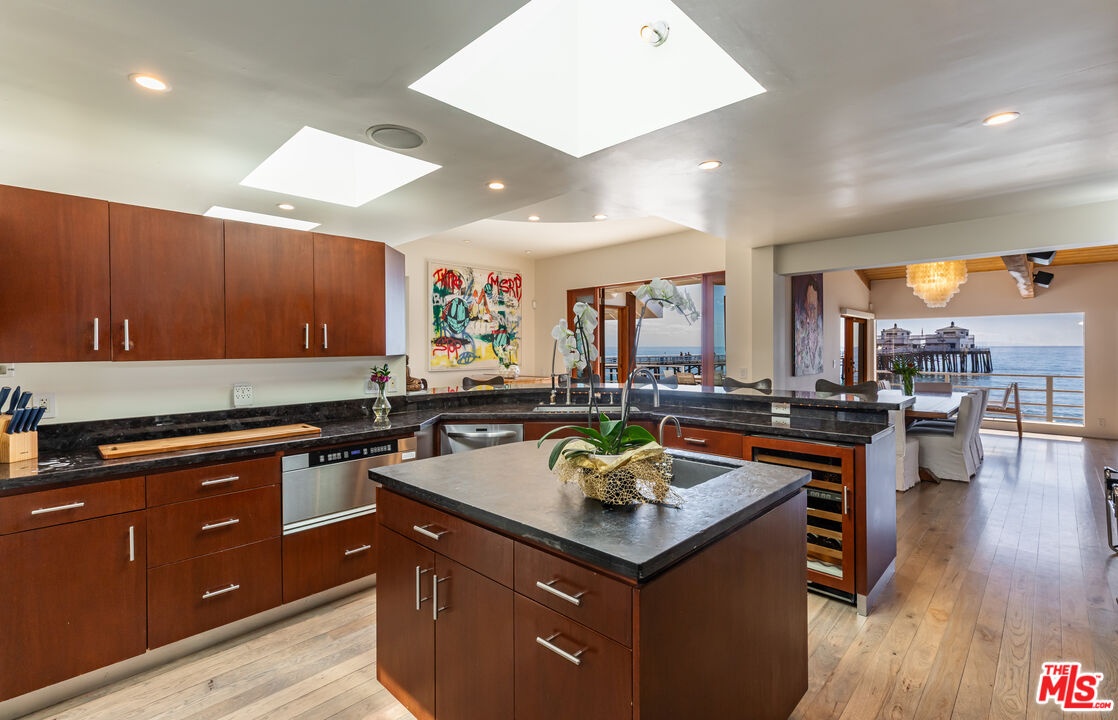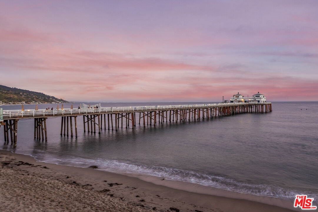 Introducing a rare double-lot beachfront sanctuary with 74 ft of ocean frontage on Malibu's coveted Surfrider Beach. The owner is offering the adjacent 40-foot oceanfront parcel for sale separately, creating a rare trophy oceanfront compound with approximately 114 feet of direct frontage on the legendary Surfrider Beach overlooking the iconic Malibu Pier. Pricing for the parcel available upon request. This single-story coastal retreat blends sweeping panoramic ocean views with architectural elegance. A gated arrival opens to a motor court with ample parking and a private garage. The expansive living/dining pavilion features vaulted ceilings, hardwood floors, a fireplace, and three oversized ocean-facing windows framing the Malibu Pier vistas. Glass doors lead to a wraparound porcelain-tiled oceanfront deck perched above the sand, creating a seamless indoor - outdoor setting ideal for entertaining against the backdrop of Surfrider beach. The gourmet kitchen includes a granite island, skylights, Sub-Zero and Thermador appliances, plus captivating ocean views. The luxurious primary suite offers exceptional privacy with a marble gas fireplace, sliding doors that open to the deck, showcasing the Pier panorama, an oversized walk-in custom closet, and spa-like bath featuring steam shower, soaking tub, and heated floors. Three additional bedrooms (two ensuite) provide stylish accommodations with sunset deck access. Modern upgrades include a whole-house generator, EV charger, Sonos system, and porcelain flooring in the primary suite and deck. With a proven rental history, partial seawall protection, and a prime location in the heart of Malibu near Nobu, Soho House, Malibu Farm and the Malibu Country Mart, this refined oceanfront estate delivers rare scale, prestige, and unforgettable views of the Pier, Catalina and the Queens necklace.