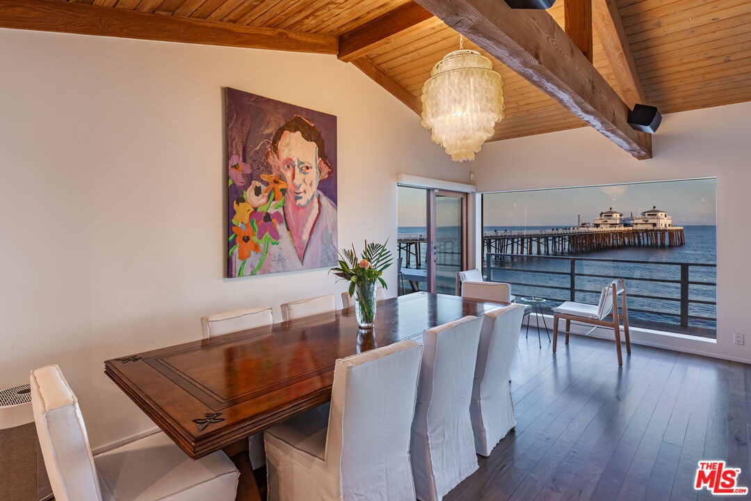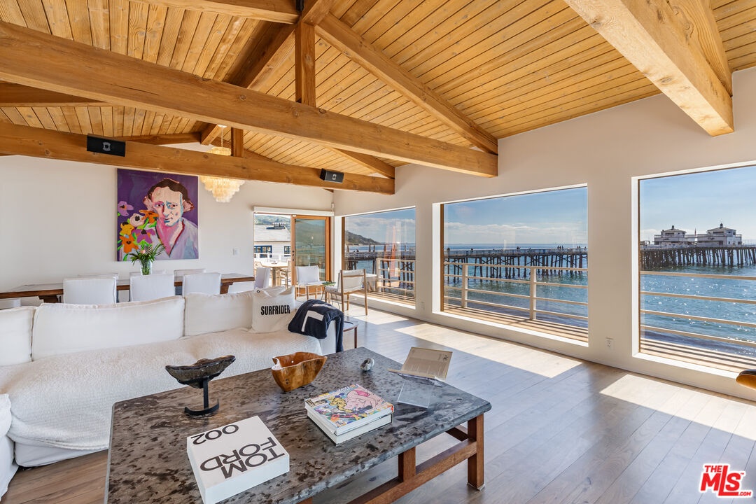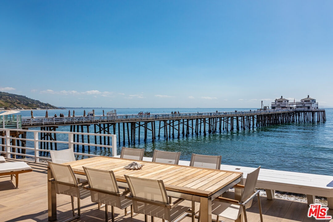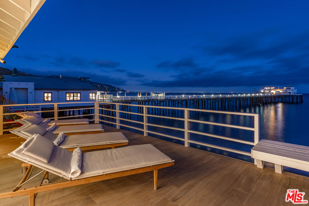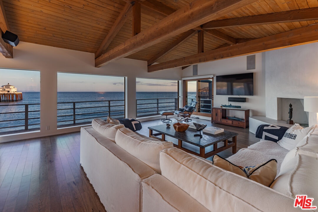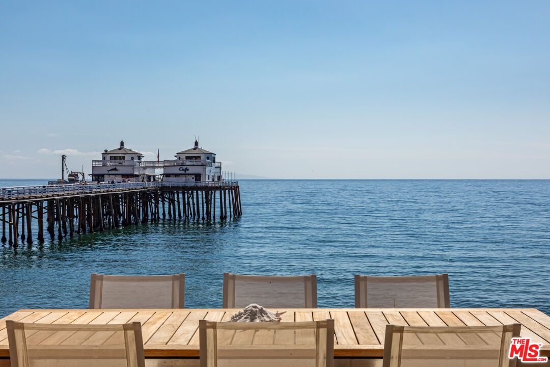 Introducing a rare double-lot beachfront sanctuary with 74 ft of ocean frontage on Malibu's coveted Surfrider Beach. This single-story coastal retreat blends sweeping panoramic ocean views with architectural elegance. A gated arrival opens to a motor court with ample parking and a private garage. The expansive living/dining pavilion features vaulted ceilings, hardwood floors, a fireplace, and three oversized ocean-facing windows framing the Malibu Pier vistas. Glass doors lead to a wraparound porcelain-tiled oceanfront deck perched above the sand, creating a seamless indoor - outdoor setting ideal for entertaining against the backdrop of Surfrider beach. The gourmet kitchen includes a granite island, skylights, Sub-Zero and Thermador appliances, plus captivating ocean views. The luxurious primary suite offers exceptional privacy with a marble gas fireplace, sliding doors that open to the deck, showcasing the Pier panorama, an oversized walk-in custom closet, and spa-like bath featuring steam shower, soaking tub, and heated floors. Three additional bedrooms (two ensuite) provide stylish accommodations with sunset deck access. Modern upgrades include a whole-house generator, EV charger, Sonos system, and porcelain flooring in the primary suite and deck. With a proven rental history, partial seawall protection, and a prime location in the heart of Malibu near Nobu, Soho House, Malibu Farm and the Malibu Country Mart, this refined oceanfront estate delivers rare scale, prestige, and unforgettable views of the Pier, Catalina and the Queens necklace. Available now through end of Summer 2026.