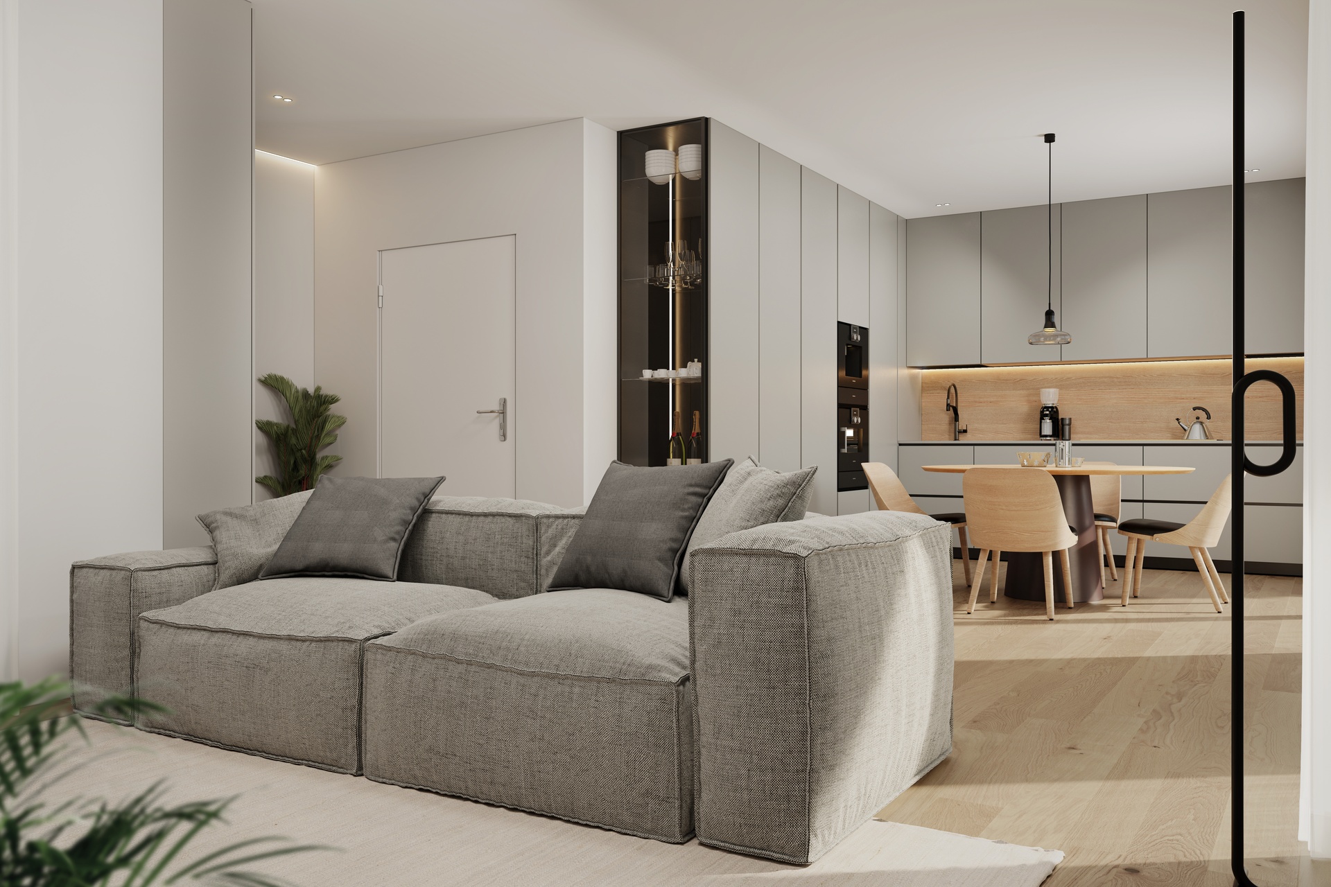 Doors, finishes and detailing are selected to create a coherent, elegant and timeless interior language.