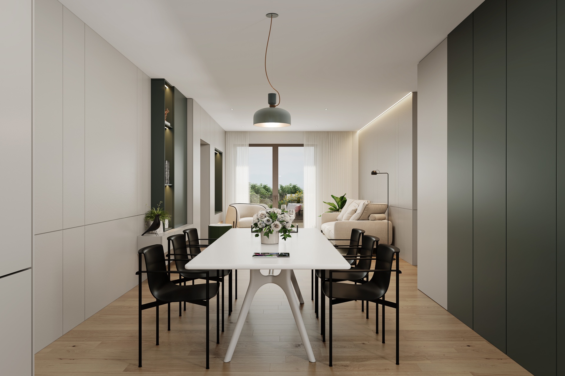 Doors, finishes and detailing are selected to create a coherent, elegant and timeless interior language.