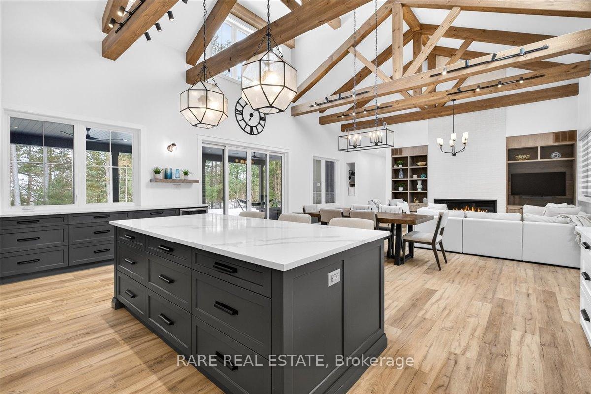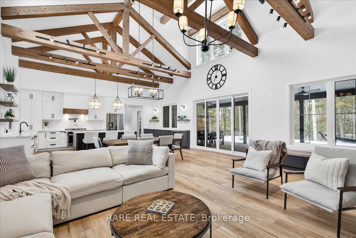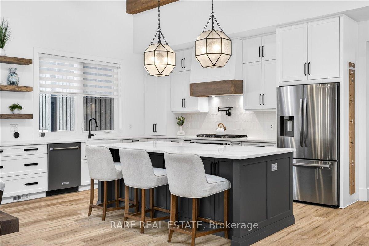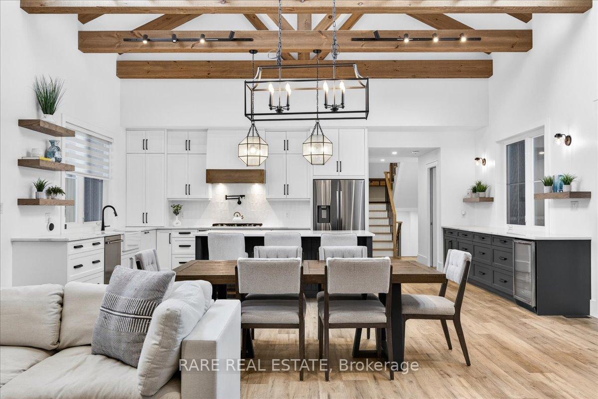 Exceptional custom-built bungalow offering over 6,000sq. ft., complete with a triple car garage and an inground saltwater pool, located in the highly sought-after community of Anten Mills. Featuring 7 bedrooms and 5 bathrooms, this home is ideally suited for large or multi-generational families seeking space, privacy, and convenience just minutes from Barrie and its full range of amenities.Designed with a bright, open-concept layout, the home showcases quality craftsmanship and refined finishes throughout. The spacious primary suite offers a walkout to the backyard and a spa-inspired ensuite featuring a soaker tub and a dual walk-in glass shower with separate his-and-hers controls, delivering both luxury and functionality with a true spa-like feel. Additional bedrooms are generously sized and thoughtfully designed.The upper loft provides excellent versatility, featuring a second kitchen, living area, additional bedrooms, and a full bathroom-ideal for extended family, in-law potential, or a private home office.The fully finished basement adds approximately 2,000 sq. ft. of finished functional living space, including two bedrooms with large windows, a semi ensuite bathroom, a professional-grade gym, and a spacious recreation area with a wet bar.Outdoor living is elevated with a private backyard retreat featuring an inground pool, cabana, and a covered porch (approx. 500 sq. ft.), ideal for entertaining. The triple car garage offers ample parking, EV charging and storage.Located in a quiet, family-friendly area known for its strong community feel, with close proximity to parks, schools, and local events. Enjoy convenient access to outdoor recreation, including Snow Valley Ski Resort and Horseshoe Resort, as well as golf courses, trails, and commuter routes.